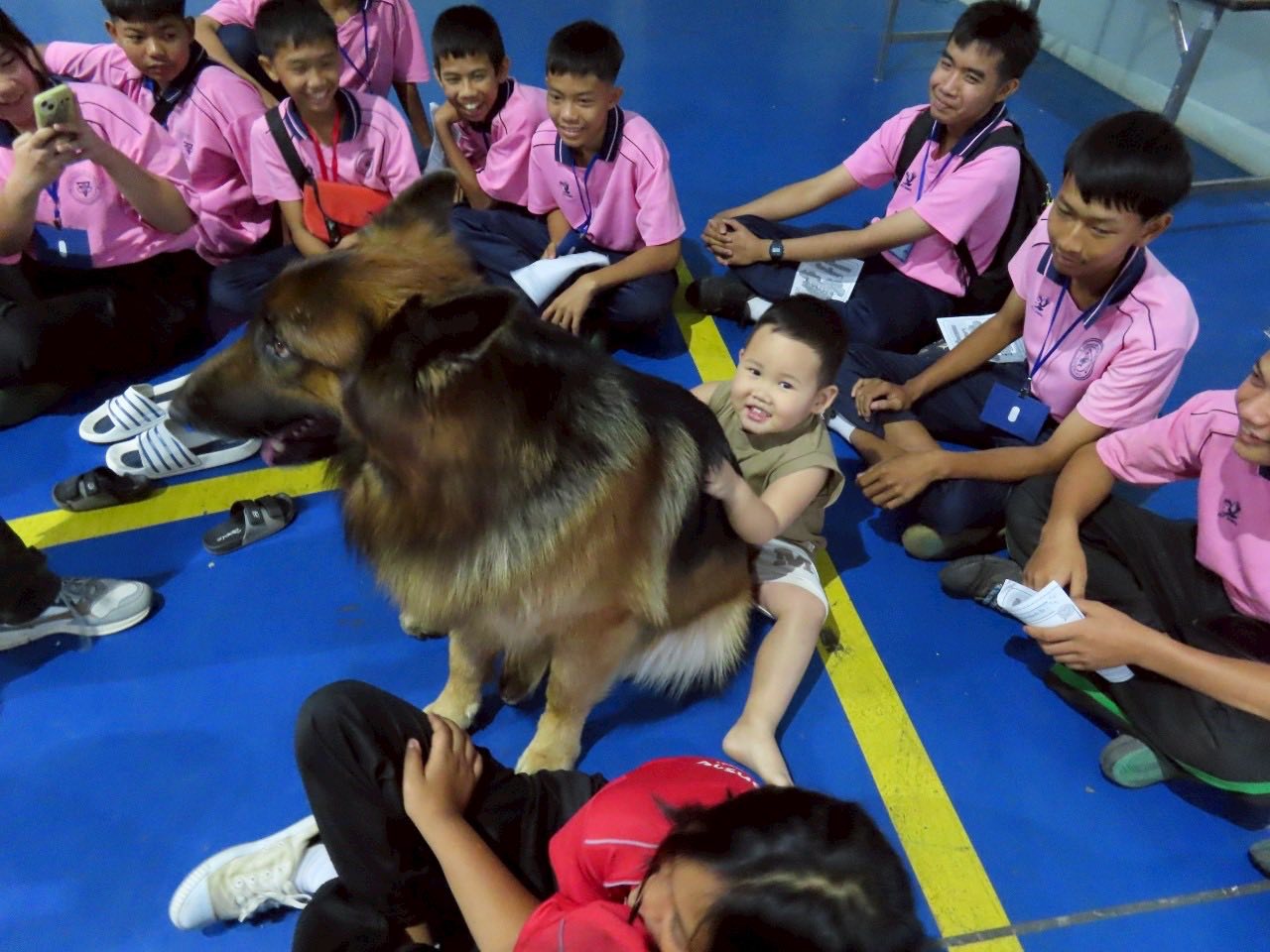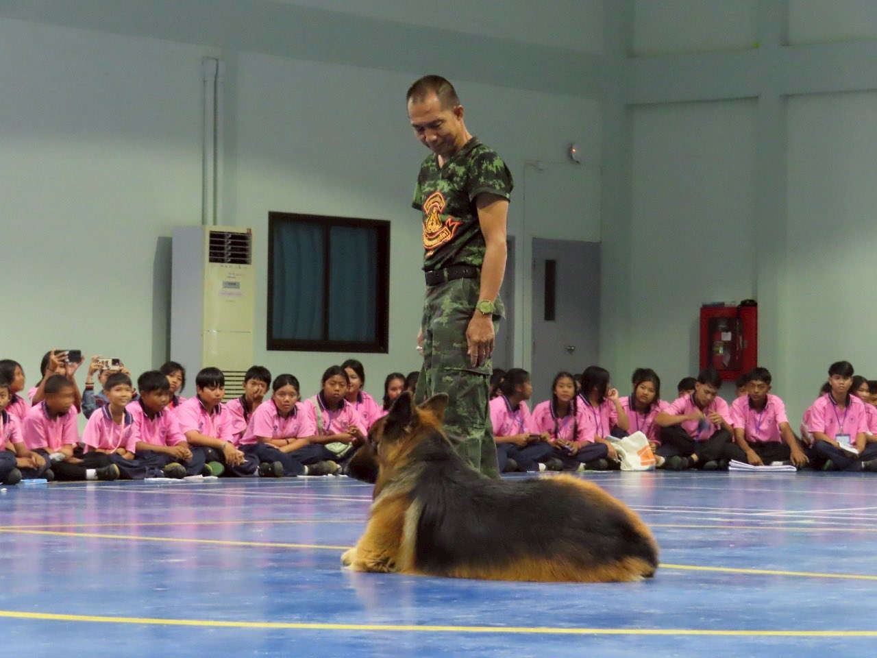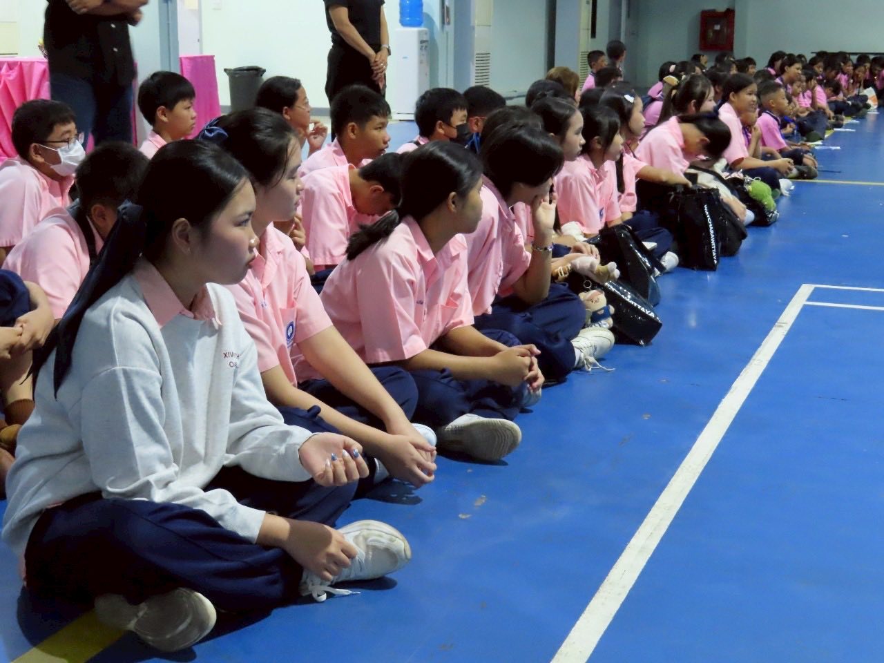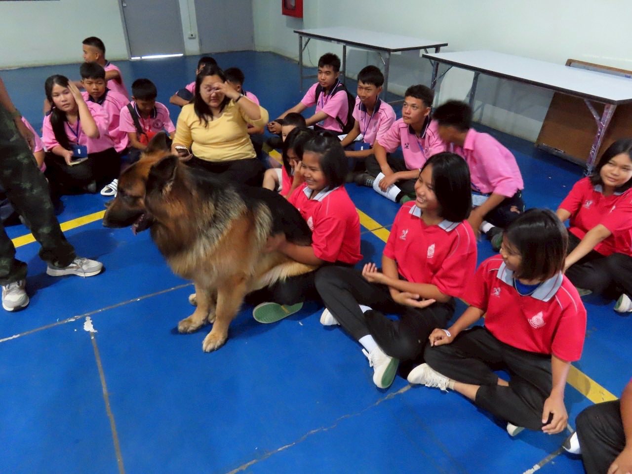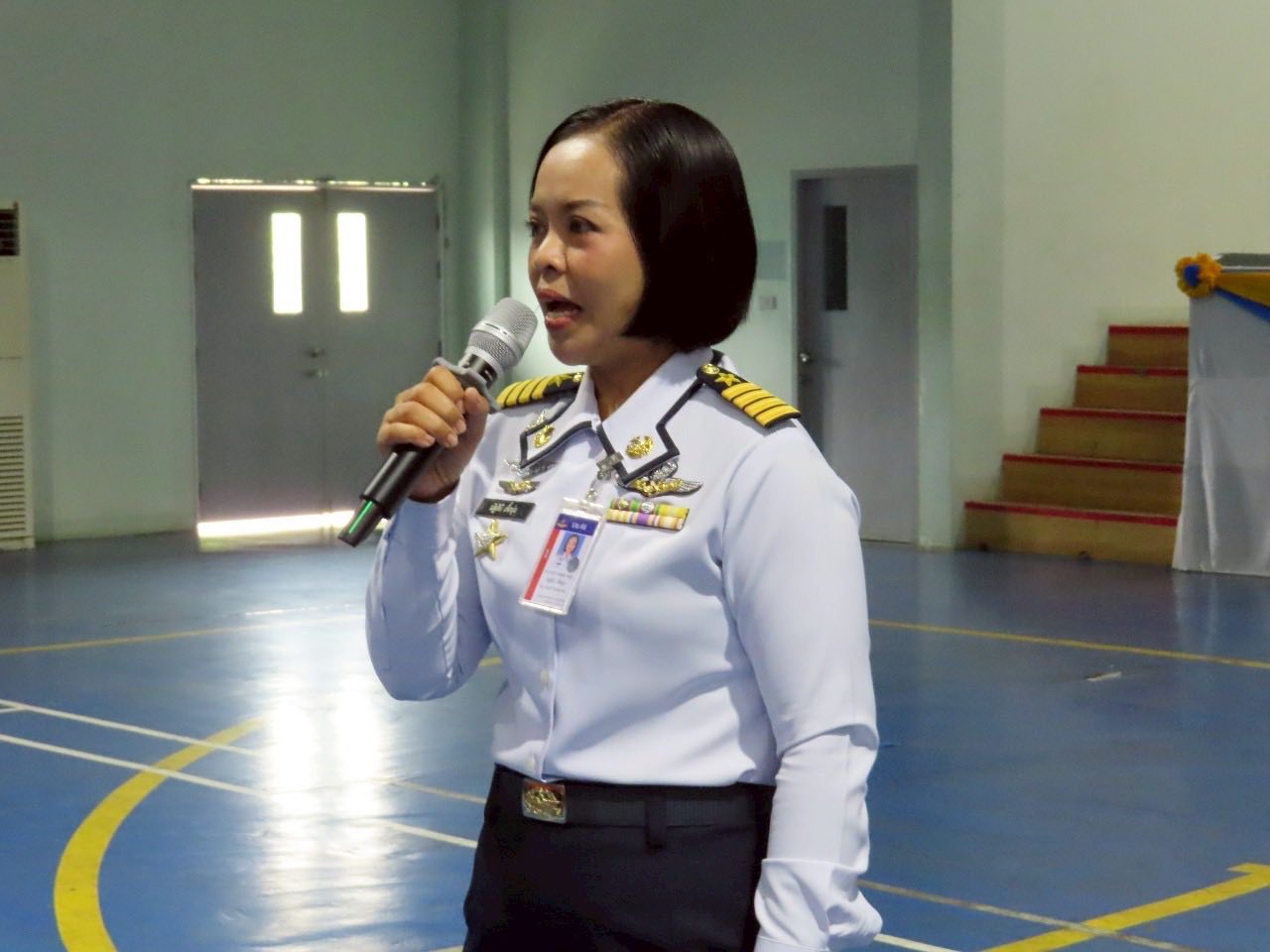 นาวาอากาศเอก พนม ดอนตุ้มไพร ผู้บังคับการกองบิน 46 มอบหมายให้ นาวาอากาศเอกหญิง ณัฐสินี เชื้อนุ่น หัวหน้าแผนกกิจการพลเรือน กองบังคับการ กองบิน 46 ต้อนรับคณะครู และนักเรียน