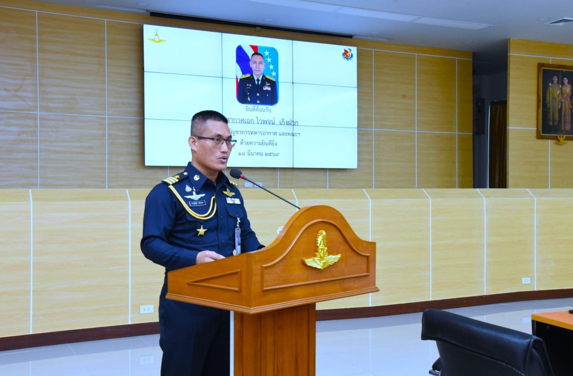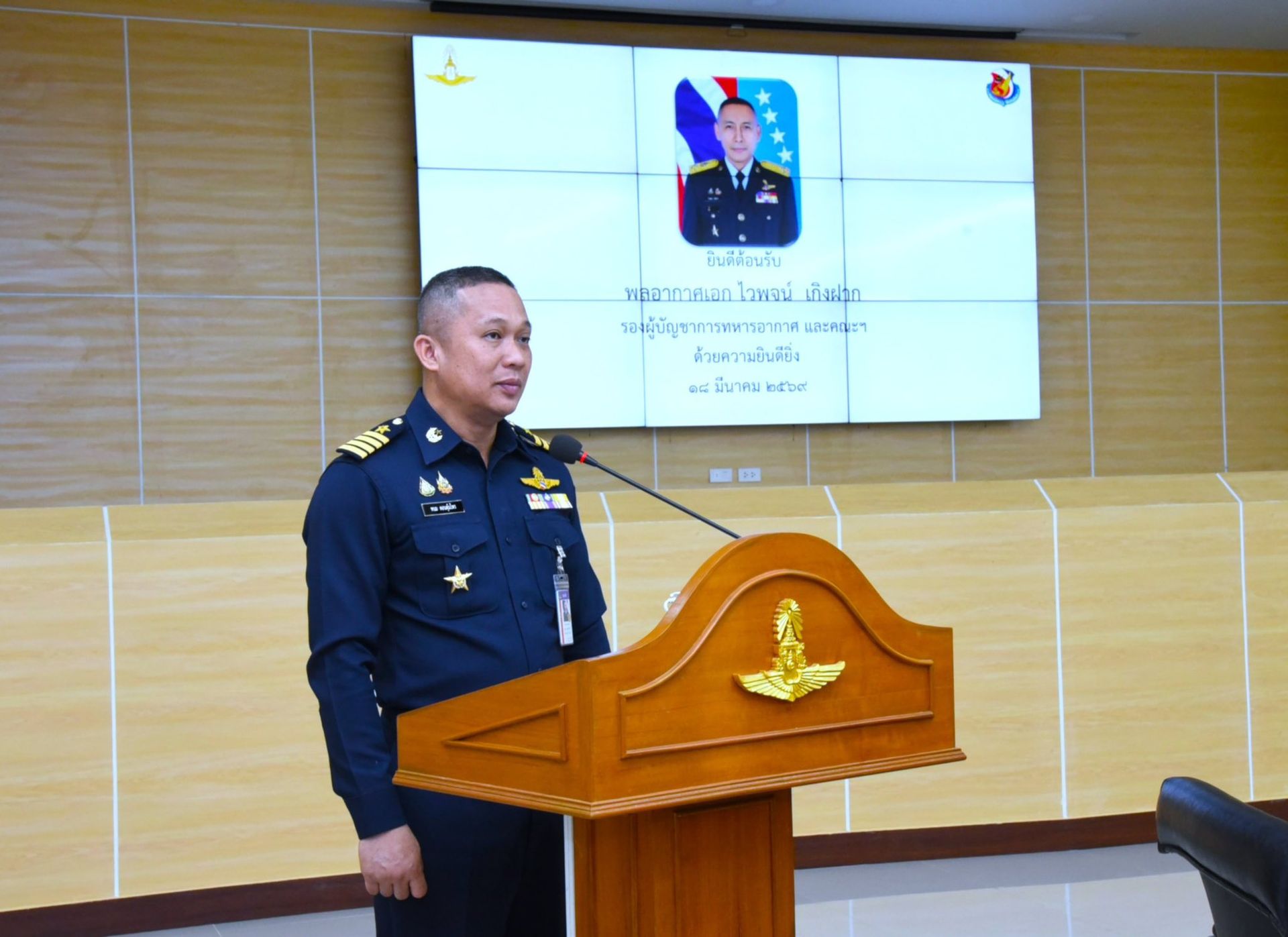 พลอากาศเอก ไวพจน์ เกิงฝาก รองผู้บัญชาการทหารอากาศ ในฐานะประธานกรรมการส่งเสริมขวัญและวินัยกำลังพลของกองทัพอากาศ พร้อมคณะ เดินทางมาตรวจเยี่ยมการดำเนินงานด้านการส่งเสริมขวัญและวินัยกำลังพลของกองบิน 46