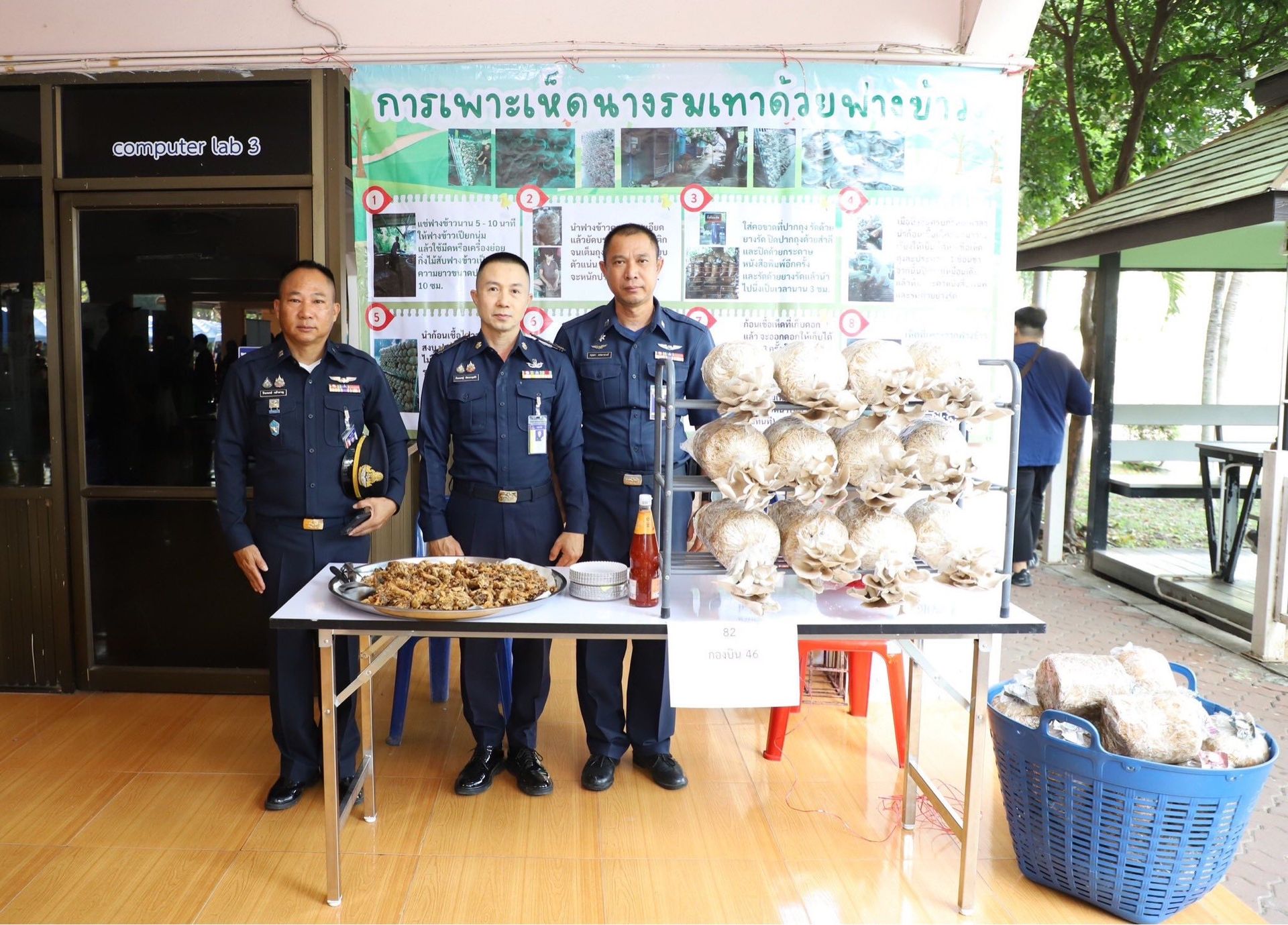 ทั้งนี้ กองบิน 46 ยังได้จัดกิจกรรมให้ความรู้แก่ประชาชนในเรื่อง “การเพาะเห็ดนางรมเทาด้วยฟางข้าว” ตามแนวทางโครงการเศรษฐกิจพอเพียง เพื่อส่งเสริมการสร้างอาชีพ เสริมรายได้ และการใช้ทรัพยากรในท้องถิ่นอย่างคุ้มค่าและยั่งยืน