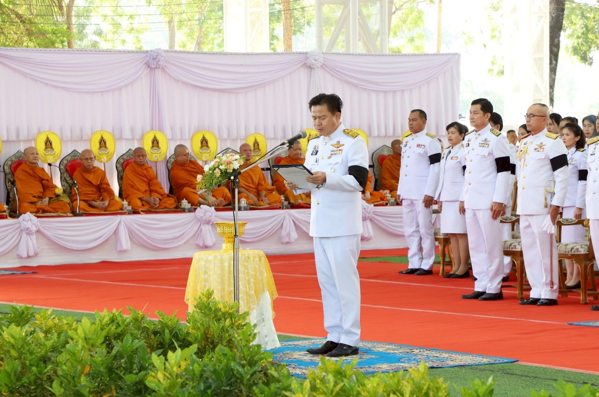 นาวาอากาศเอก เขมชาติ ทองมา รองผู้บังคับการกองบิน 46 พร้อมด้วย ข้าราชการ กองบิน 46 ร่วมพิธีเฉลิมพระเกียรติ เนื่องในโอกาสวันคล้ายวันประสูติ สมเด็จพระเจ้าลูกเธอ เจ้าฟ้าพัชรกิติยาภา นเรนทิราเทพยวดี กรมหลวงราชสาริณีสิริพัชร มหาวัชรราชธิดา 7 ธันวาคม 2568