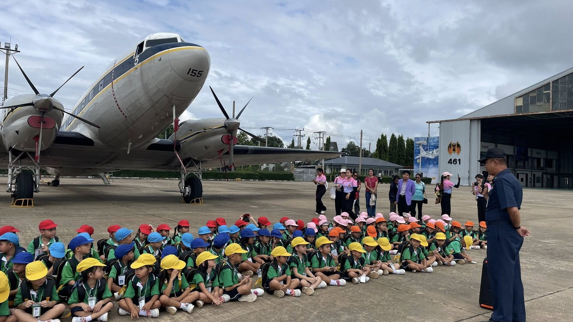 เข้าศึกษาดูงาน เยี่ยมชมกิจการการบิน ของกองบิน 46 พิษณุโลก แนะนำเครื่องบินลำเลียงแบบที่ 2 ก (BT-67) ที่สนับสนุนภารกิจฝนหลวง การบินควบคุมไฟป่า และการบินโปรยน้ำสลายหมอกควัน ณ โรงเก็บเครื่องบิน ฝูงบิน 461 กองบิน 46 พร้อมชมการแสดงความสามารถของสุนัขทหาร กองพันทหารอากาศโยธิน กองบิน 46 อำเภอเมือง จังหวัดพิษณุโลก เมื่อวันที่ 25 กันยายน พ.ศ.2568