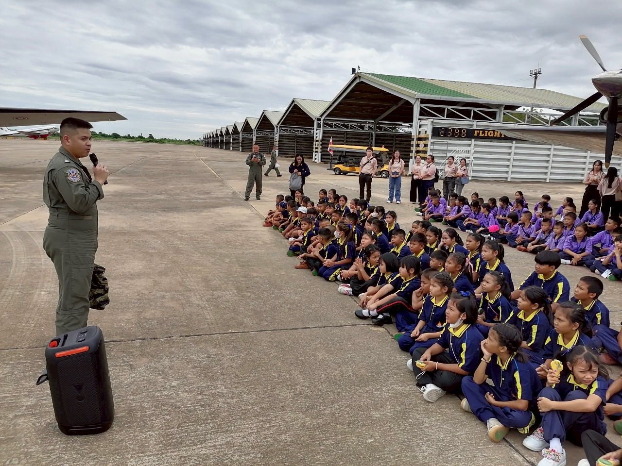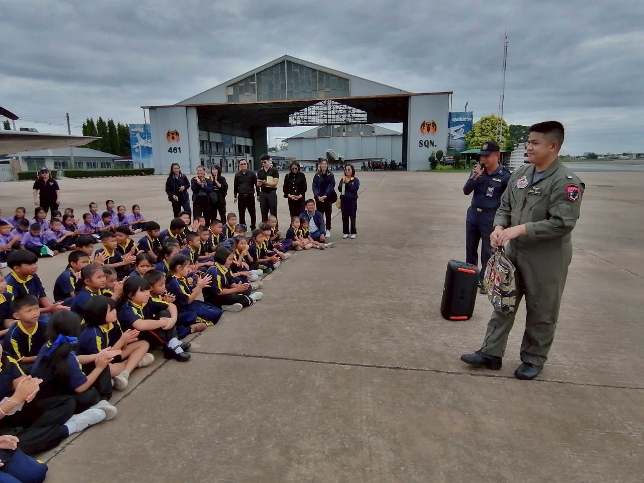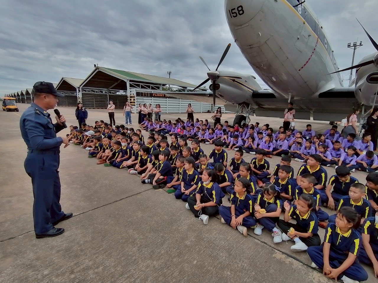 นาวาอากาศเอก พนม ดอนตุ้มไพร ผู้บังคับการกองบิน 46 มอบหมายให้ แผนกกิจการพลเรือน กองบังคับการ กองบิน 46 ต้อนรับคณะครู และนักเรียน
