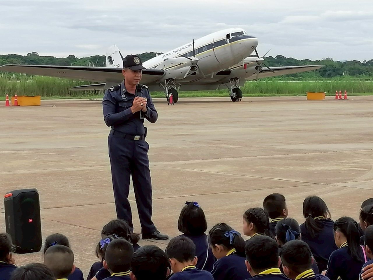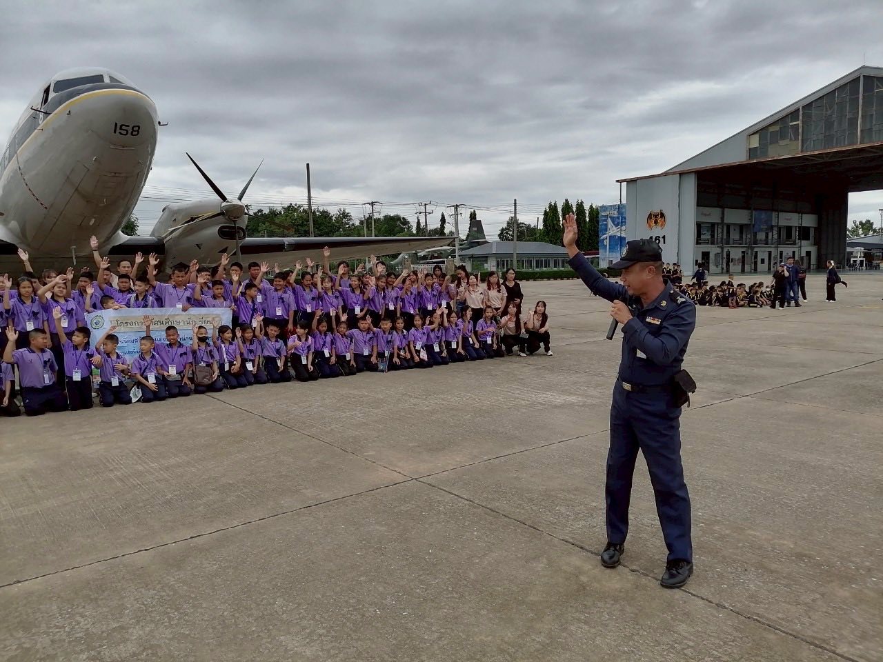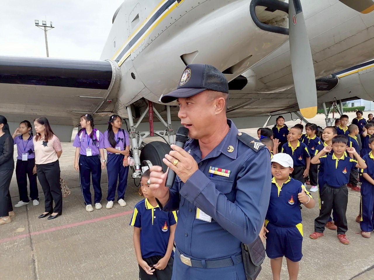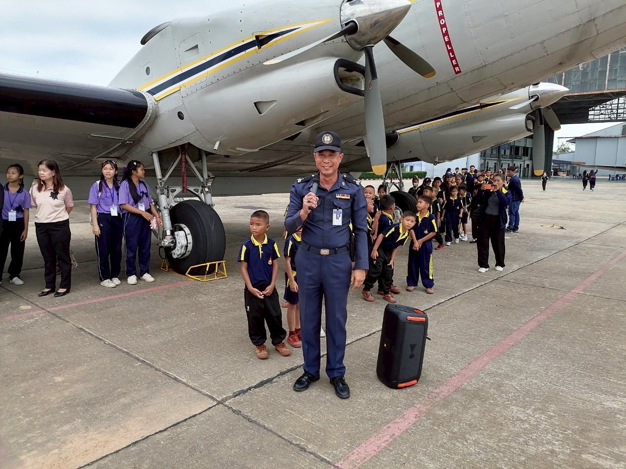 นาวาอากาศเอก พนม ดอนตุ้มไพร ผู้บังคับการกองบิน 46 มอบหมายให้ แผนกกิจการพลเรือน กองบังคับการ กองบิน 46 ต้อนรับคณะครู และนักเรียน