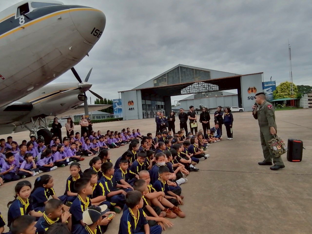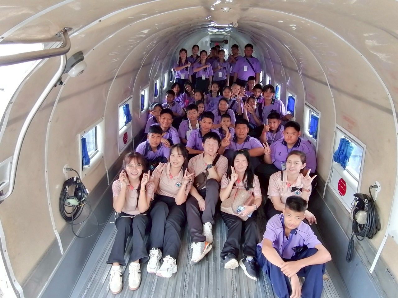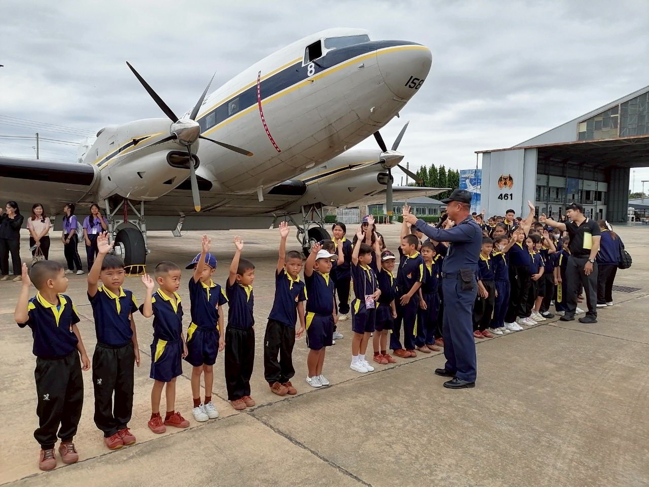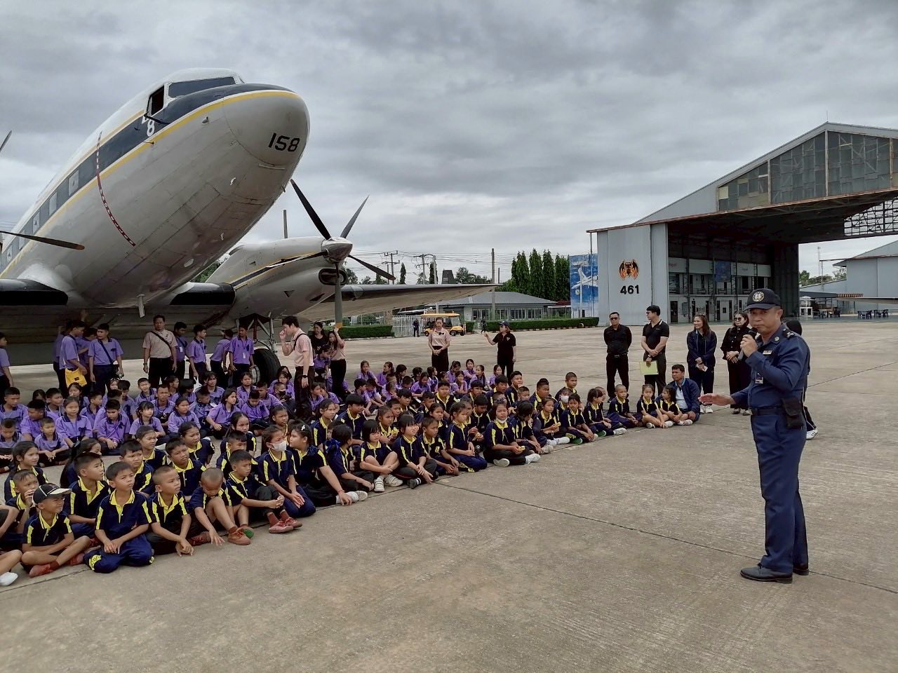 เข้าศึกษาดูงาน เยี่ยมชมกิจการการบิน ของกองบิน 46 พิษณุโลก แนะนำเครื่องบินลำเลียงแบบที่ 2 ก (BT-67) ที่สนับสนุนภารกิจฝนหลวง การบินควบคุมไฟป่า และการบินโปรยน้ำสลายหมอกควัน โดยมีนักบิน ฝูงบิน 461 ให้ความรู้แก่ น้องๆนักเรียน ณ โรงเก็บเครื่องบิน ฝูงบิน 461 กองบิน 46