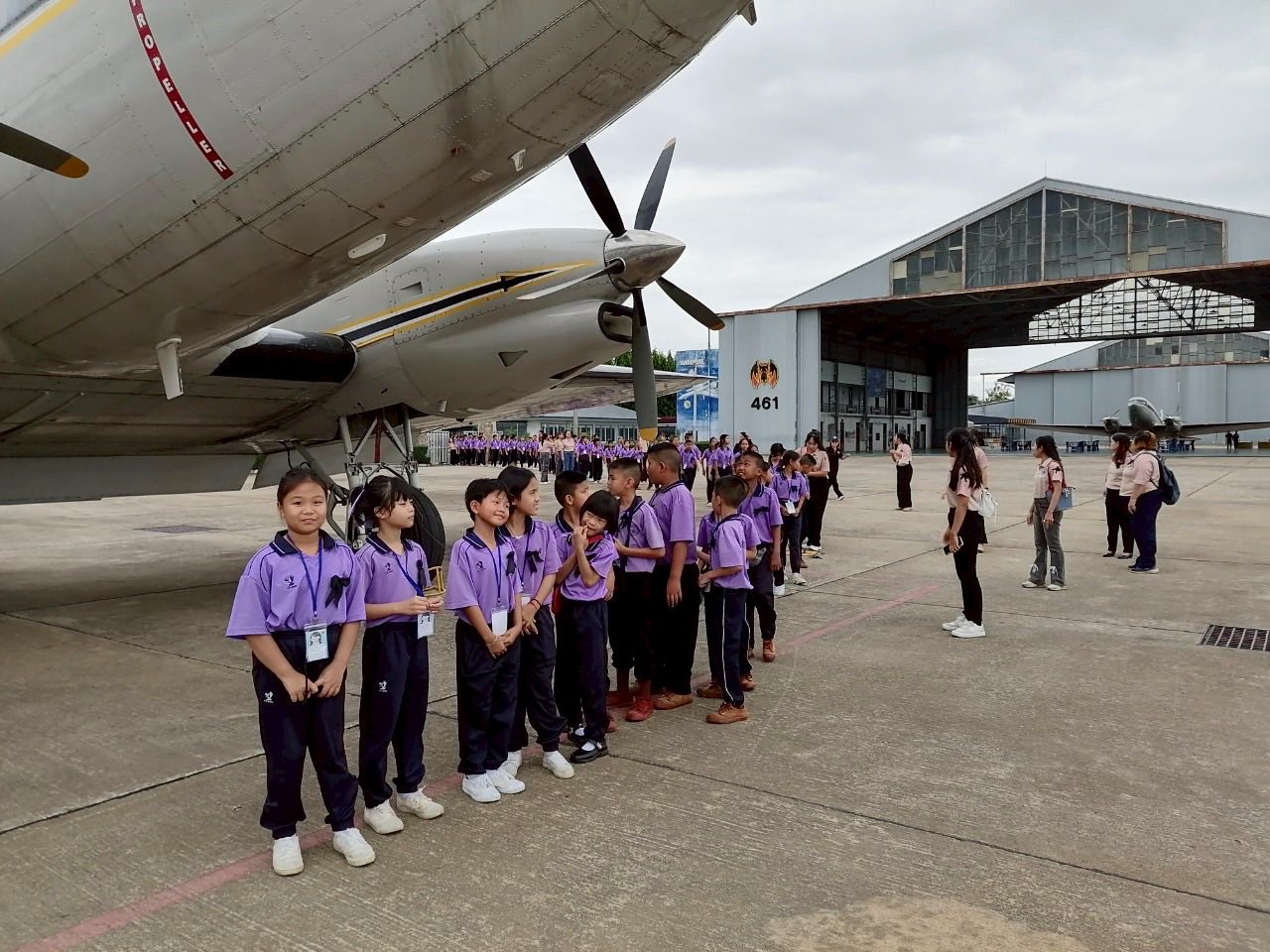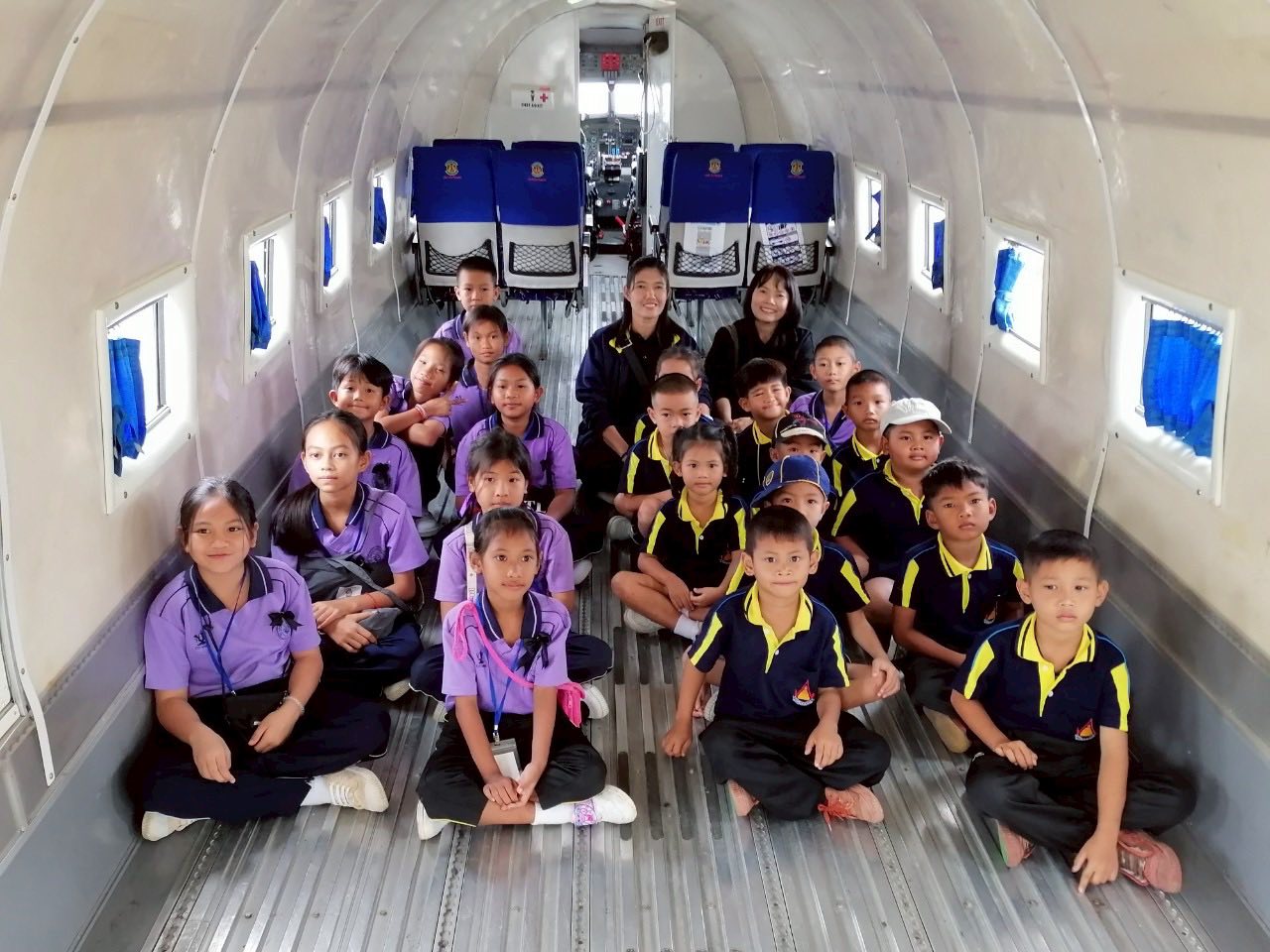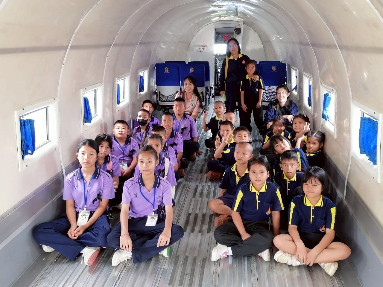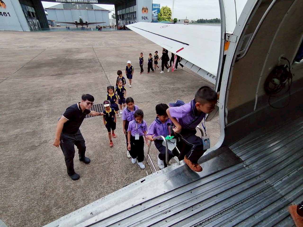 เข้าศึกษาดูงาน เยี่ยมชมกิจการการบิน ของกองบิน 46 พิษณุโลก แนะนำเครื่องบินลำเลียงแบบที่ 2 ก (BT-67) ที่สนับสนุนภารกิจฝนหลวง การบินควบคุมไฟป่า และการบินโปรยน้ำสลายหมอกควัน โดยมีนักบิน ฝูงบิน 461 ให้ความรู้แก่ น้องๆนักเรียน ณ โรงเก็บเครื่องบิน ฝูงบิน 461 กองบิน 46