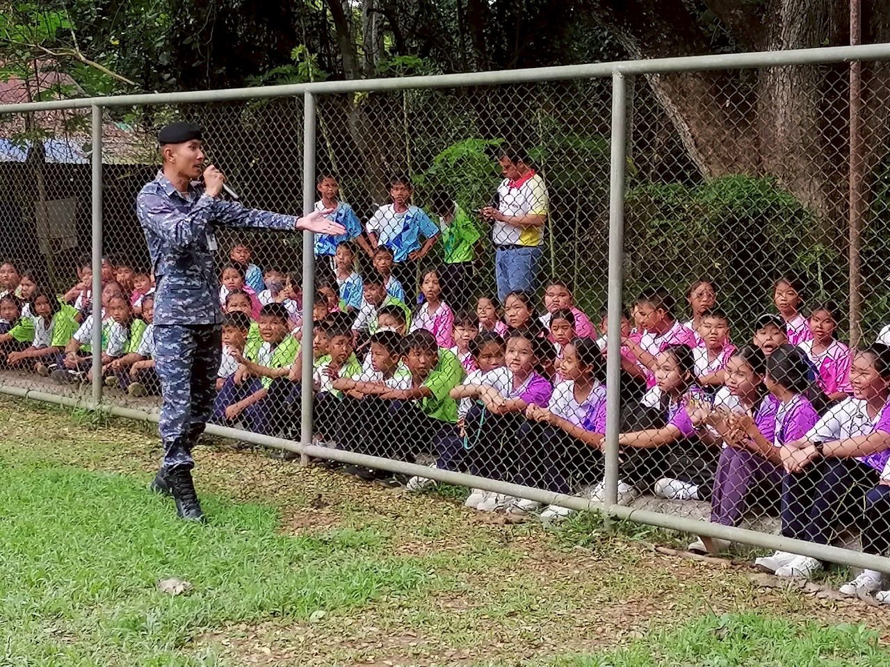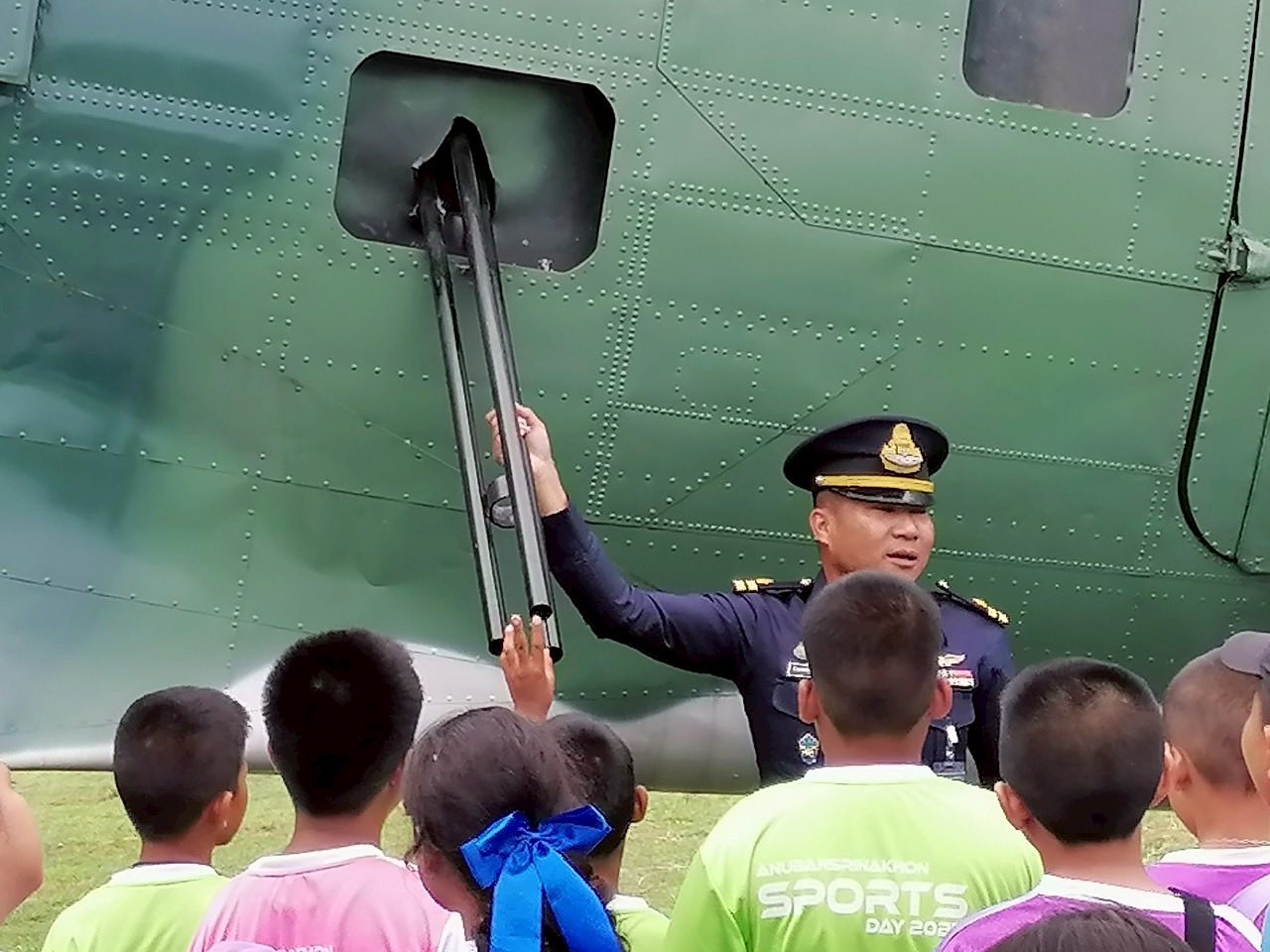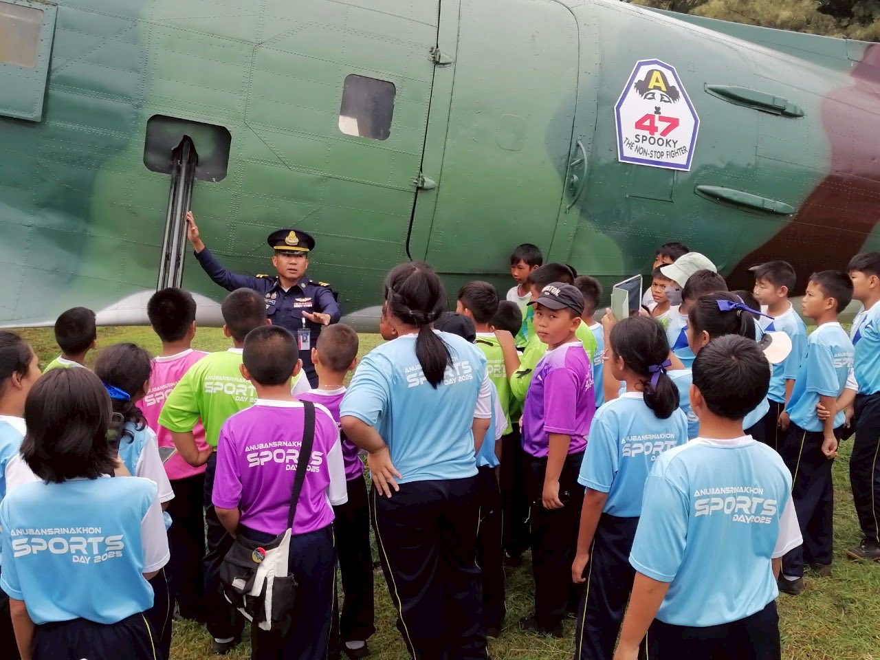 นาวาอากาศเอก พนม ดอนตุ้มไพร ผู้บังคับการกองบิน 46 มอบหมายให้ แผนกกิจการพลเรือน กองบังคับการ กองบิน 46 นักบินฝูงบิน 461 กองบิน 46 ต้อนรับคณะครู และนักเรียน โรงเรียน อนุบาลศรีนคร ตำบล ศรีนคร อำเภอศรีนคร จังหวัดสุโขทัย