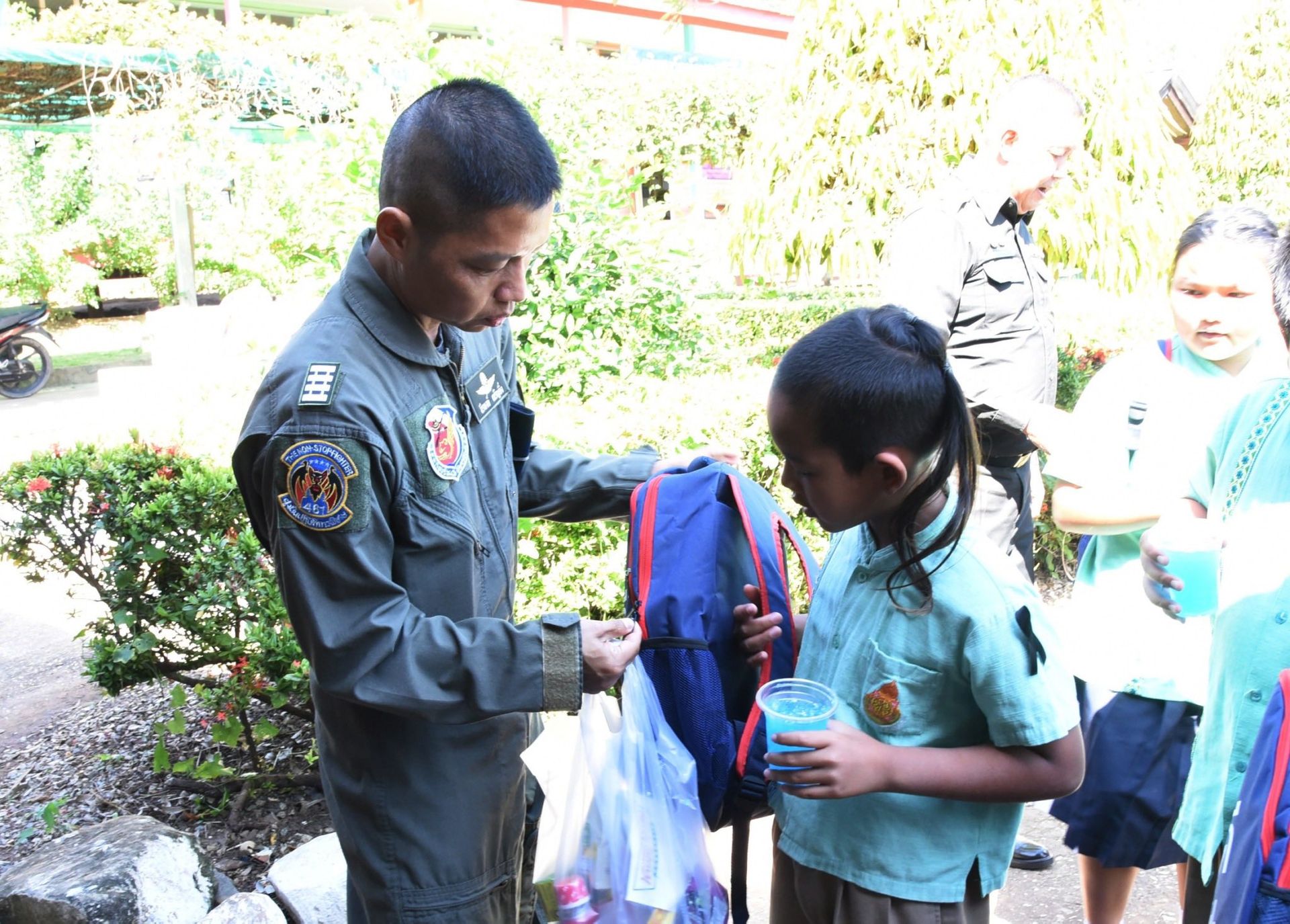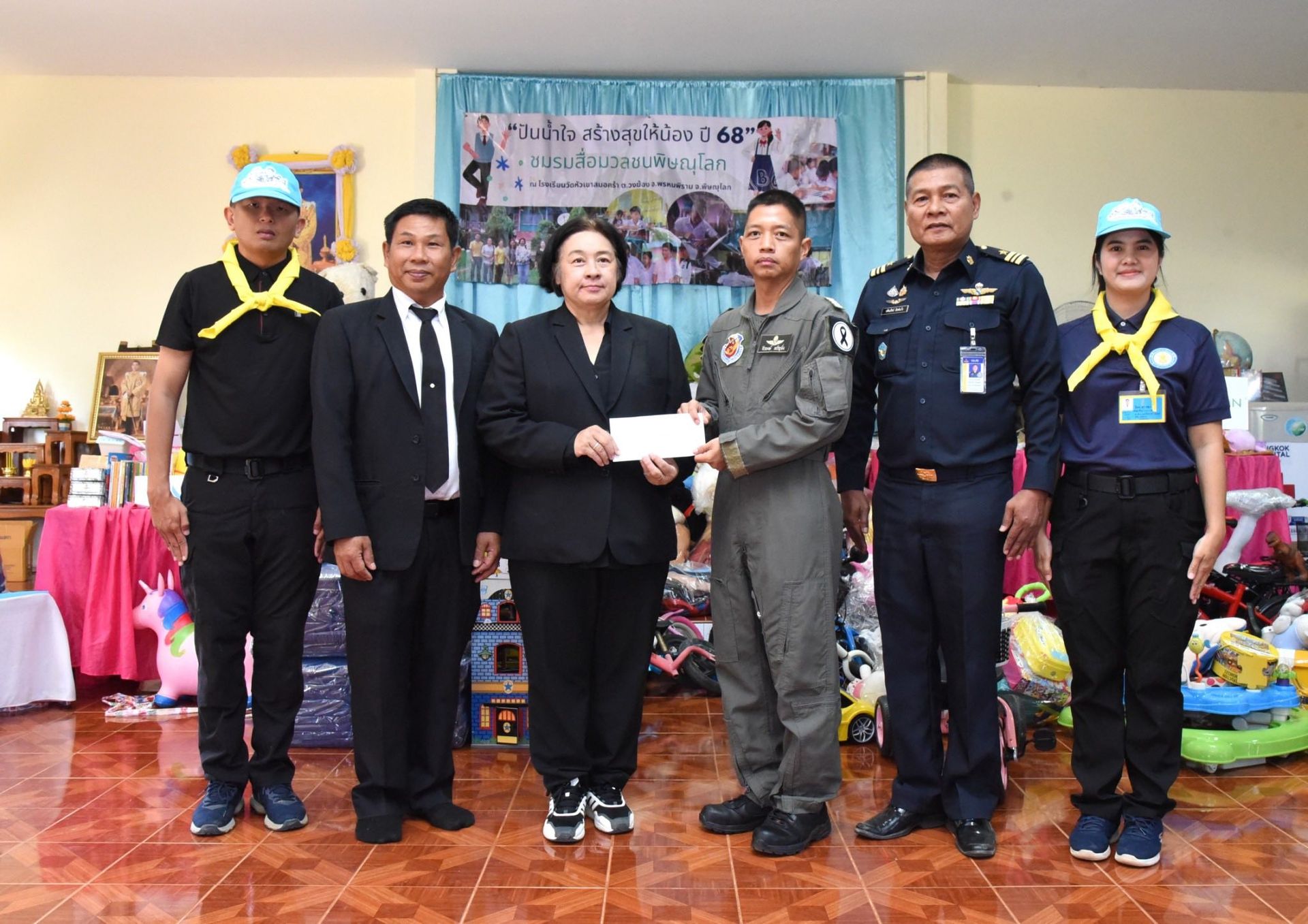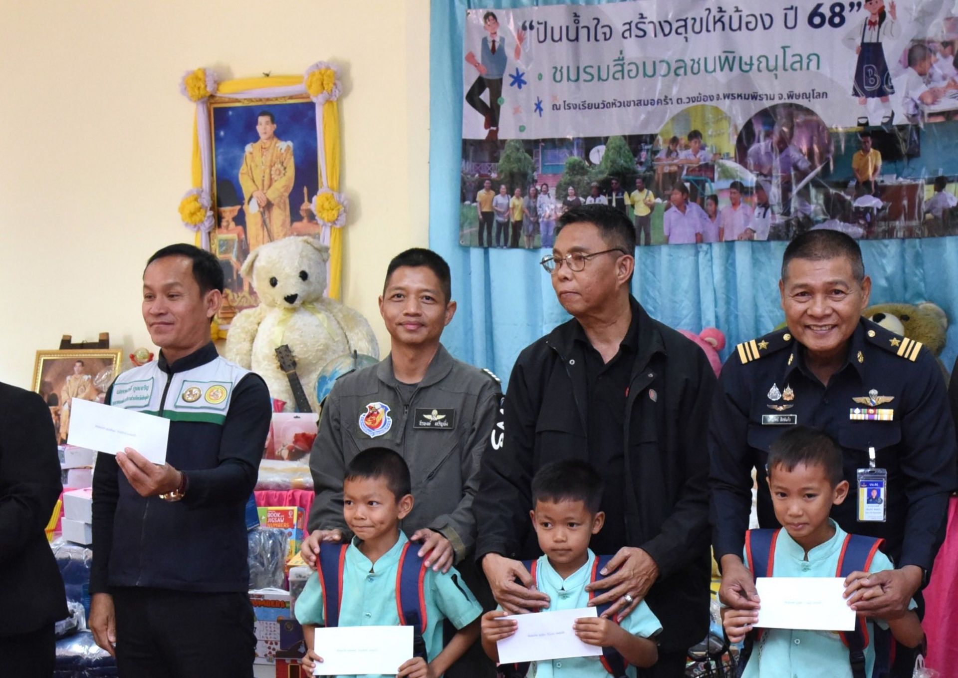 นาวาอากาศเอก ธีรพงษ์ เจริญยิ่ง เสนาธิการกองบิน 46 จิตอาสา 904 จิตอาสาพระราชทาน กองบิน 46 ร่วมกิจกรรมปันน้ำใจสร้างสุขให้น้อง ร่วมกับ ชมรมสื่อมวลชนพิษณุโลก