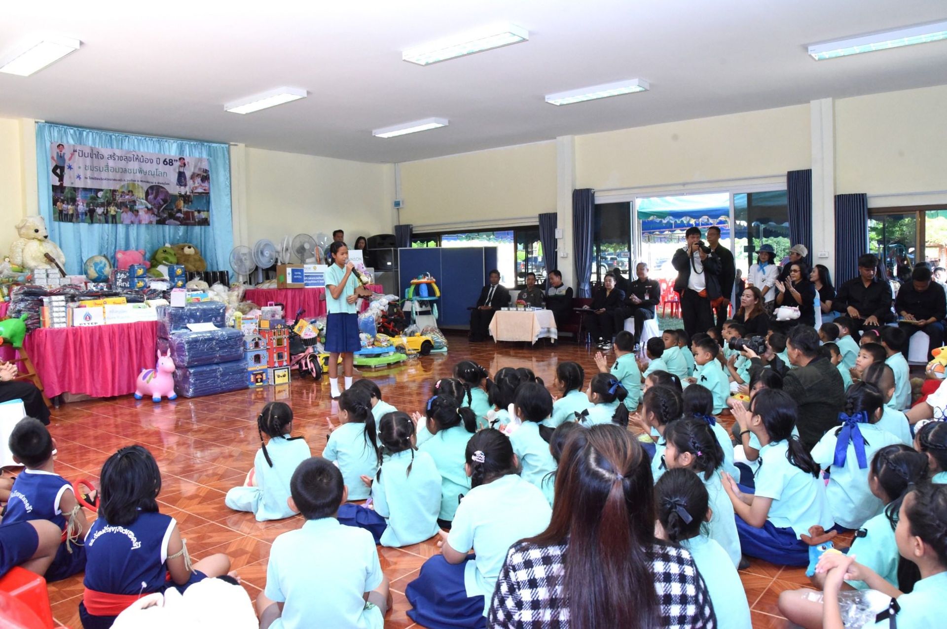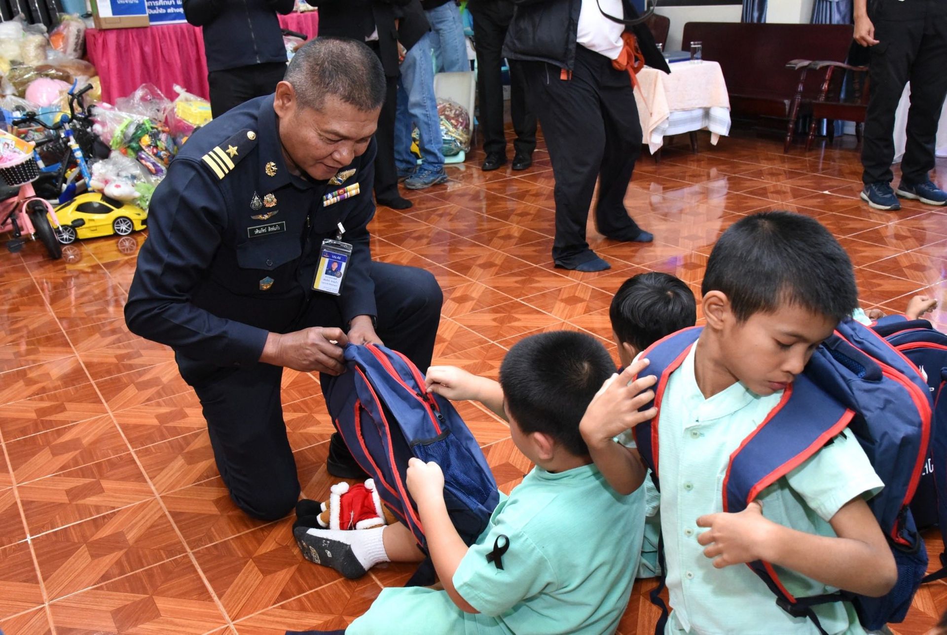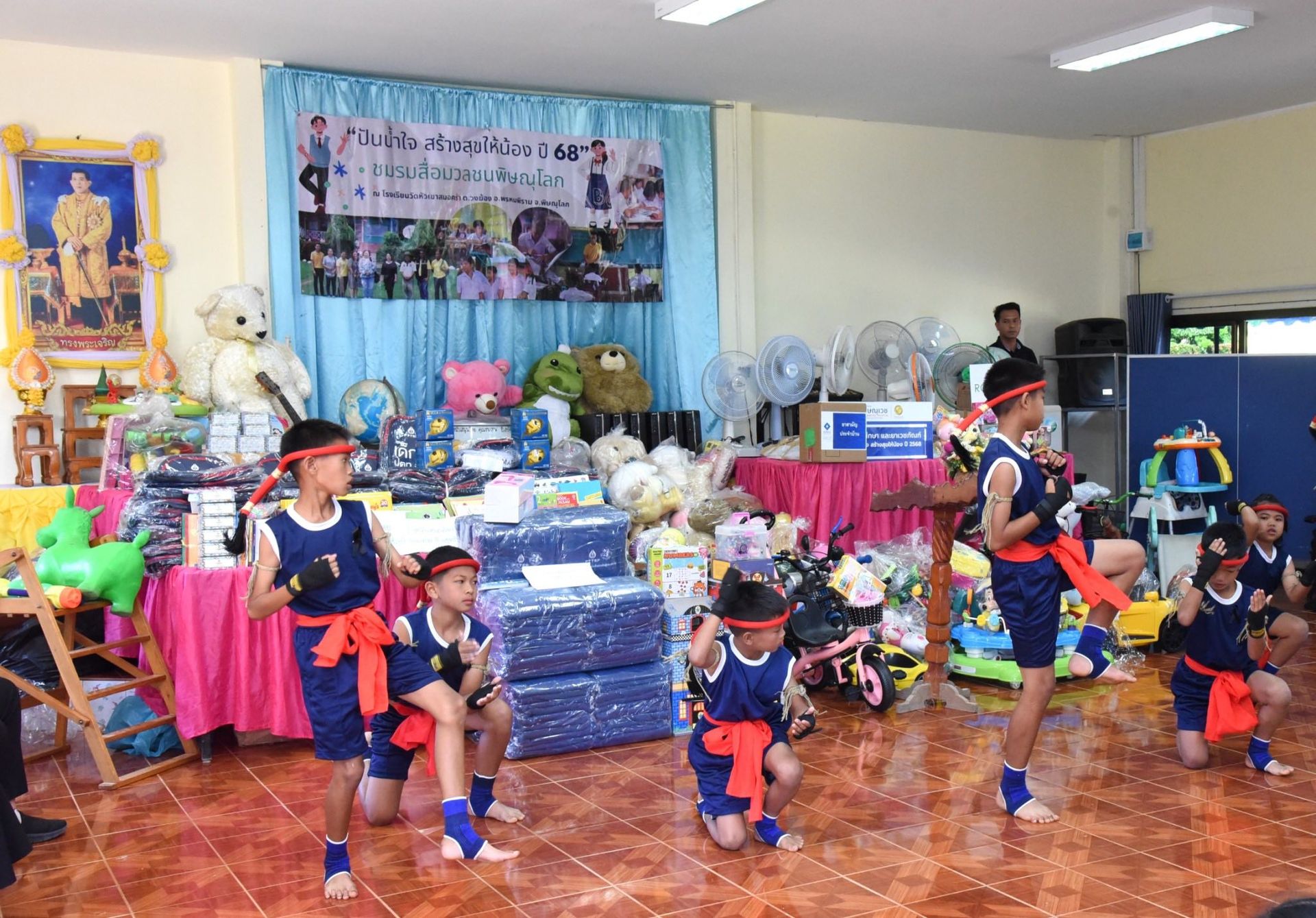 โดยภายในกิจกรรมประกอบด้วย เงินสนับสนุนการศึกษา, อุปกรณ์การกีฬา, อุปกรณ์การศึกษา, ของเล่นเสริมทักษะ, ผ้าห่มกันหนาว สนับสนุนโดย บริษัท ปตท.สำรวจและผลิตปิโตรเลียม จำกัด (มหาชน) ร่วมกับ กองบิน 46 และมอบ ชุดยาสามัญประจําบ้าน