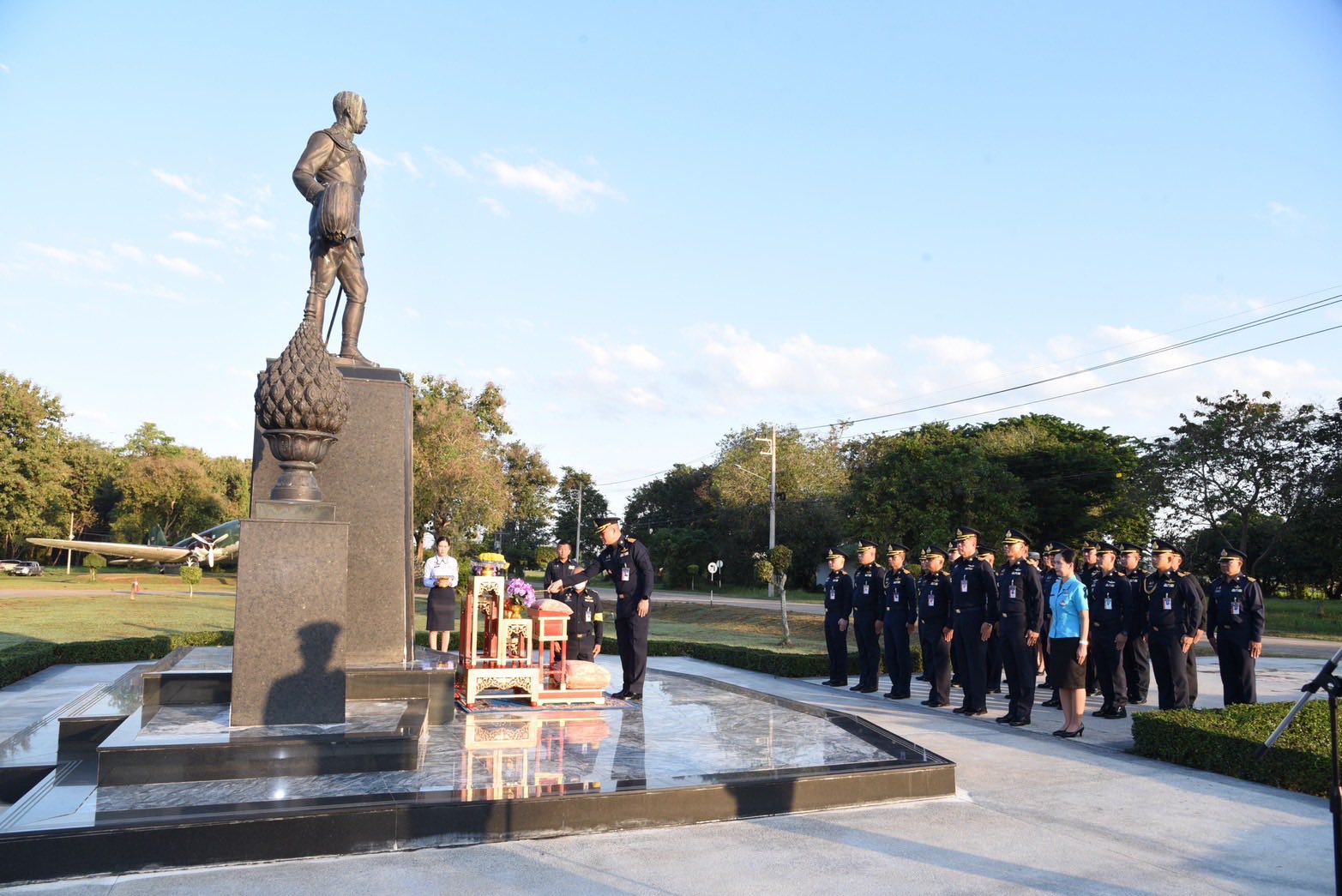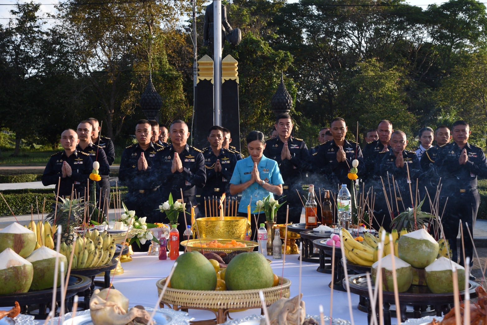 และในวันเดียวกัน นาวาอากาศเอก พนม ดอนตุ้มไพร ผู้บังคับการกองบิน 46 พร้อมด้วย คุณศิริวรรณ ดอนตุ้มไพร ประธานชมรมคู่สมรสทหารอากาศ กองบิน 46, รองผู้บังคับการกองบิน 46, เสนาธิการกองบิน 46, หัวหน้าหน่วยขึ้นตรงกองบิน 46 และสมาชิกชมรมคู่สมรสทหารอากาศ กองบิน 46 ประกอบพิธีบวงสรวง เนื่องในวันคล้ายวันสถาปนา กองบิน 46 ครบรอบ 60 ปี ณ บริเวณด้านหน้าอาคาร กองบังคับการ กองบิน 46 อำเภอเมือง จังหวัดพิษณุโลก