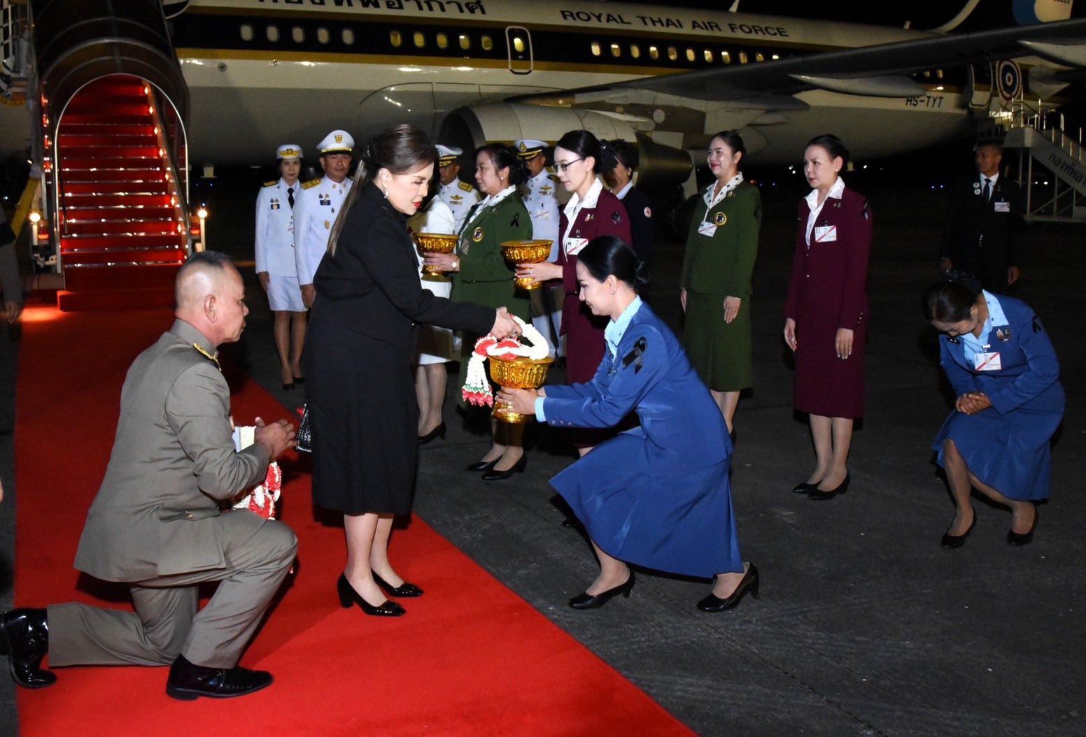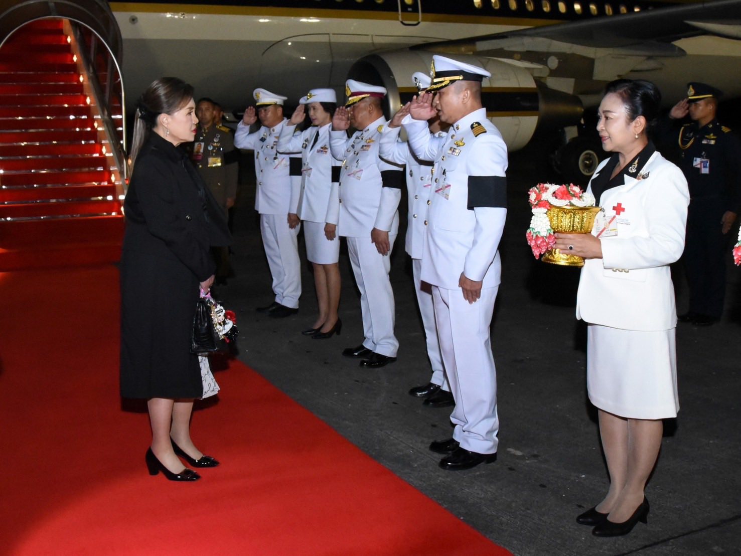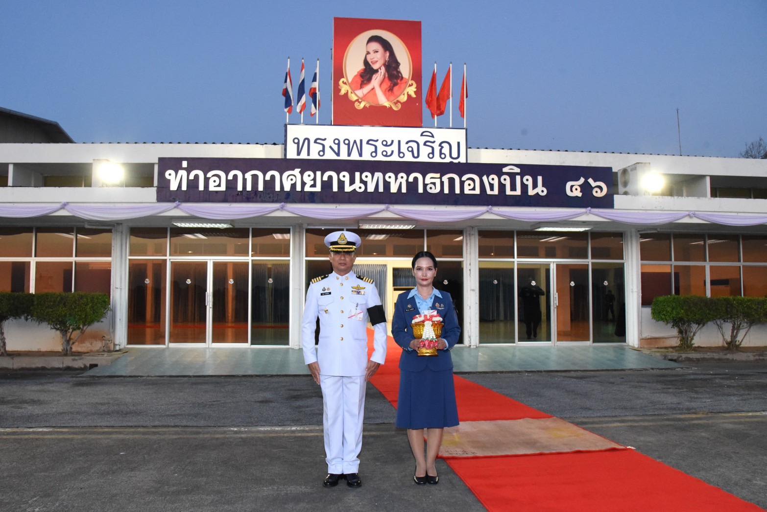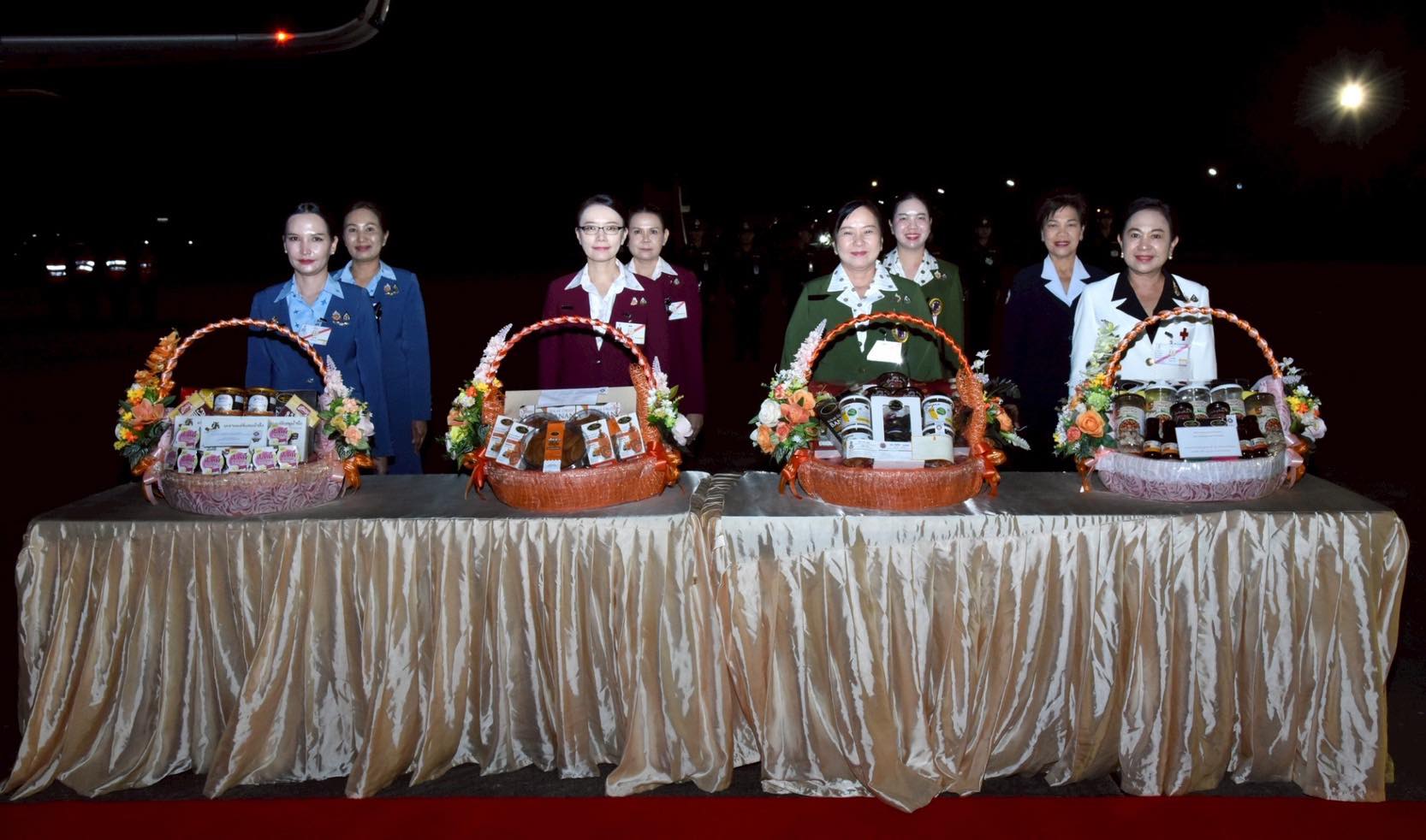 ในการนี้ คุณศิริวรรณ ดอนตุ้มไพร ประธานชมรมคู่สมรสทหารอากาศ กองบิน 46 พร้อมด้วยสมาชิกชมรมคู่สมรสทหารอากาศ กองบิน 46 ร่วมเฝ้ารับ-ส่งเสด็จฯ และถวายกระเช้าผลิตภัณฑ์โอทอปจังหวัดพิษณุโลก ณ ท่าอากาศยานทหาร กองบิน 46 อำเภอเมือง จังหวัดพิษณุโลก