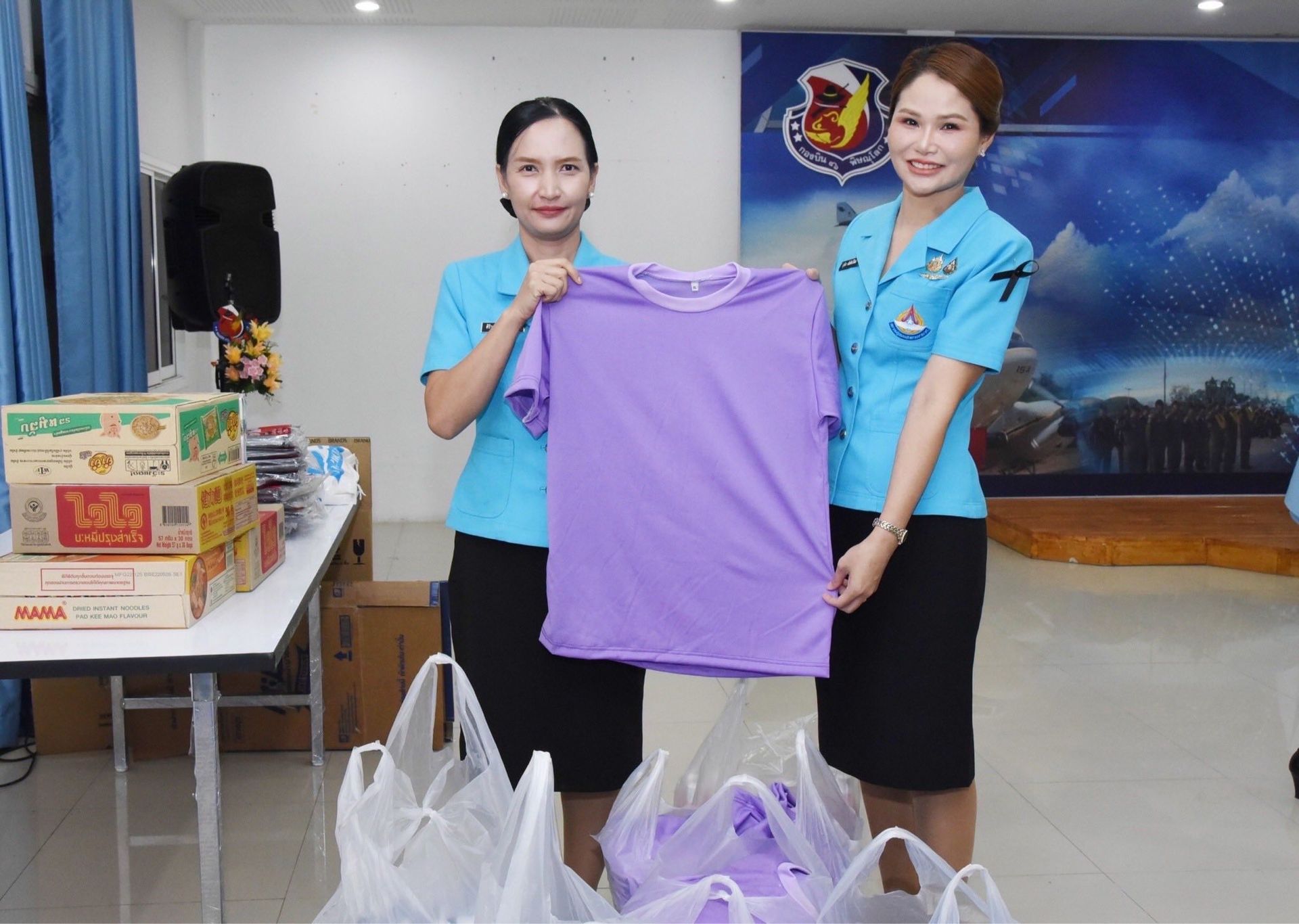 วันพุธที่ 3 ธันวาคม 2568 คุณศิริวรรณ ดอนตุ้มไพร ประธานชมรมคู่สมรสทหารอากาศ กองบิน 46 พร้อมด้วย รองประธานชมรมคู่สมรสทหารอากาศ กองบิน 46 และสมาชิกชมรมคู่สมรสคู่ทหารอากาศ กองบิน 46 ร่วมรับบริจาคสิ่งของเพื่อช่วยเหลือผู้ประสบอุทกภัยภาคใต้ เพื่อนำสิ่งของบริจาคร่วม ในโครงการ : AFSA สนับสนุนภารกิจ "ช่วยเหลือ-เยียวยา-ฟื้นฟู" ผู้ประสบอุทกภัยภาคใต้ จัดโดย สมาคมคู่สมรสทหารอากาศ โดยมี บุคคล สมาชิกชมรมคู่สมรสทหารอากาศกองบิน 46 หน่วยงานภาครัฐ และภาคเอกชน ร่วมบริจาคสิ่งของ ดังนี้