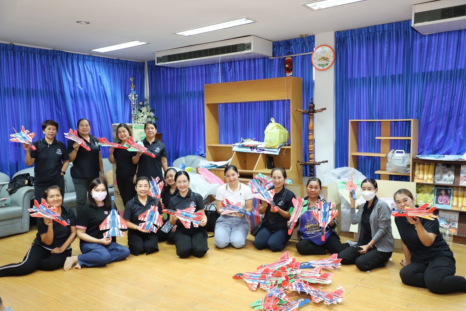 วันเสาร์ที่ 13 ธันวาคม 2568 คุณศิริวรรณ ดอนตุ้มไพร ประธานชมรมคู่สมรสทหารอากาศ กองบิน 46 รองประธานชมรมคู่สมรสทหารอากาศ กองบิน 46 และสมาชิกชมรมคู่สมรสคู่ทหารอากาศ กองบิน 46 พร้อมด้วยทหารกองประจำการ กองบิน 46 ร่วมประกอบเครื่องบินร่อน เพื่อจำหน่ายในงานวันเด็กแห่งชาติ กองบิน 46 ประจำปี 2569