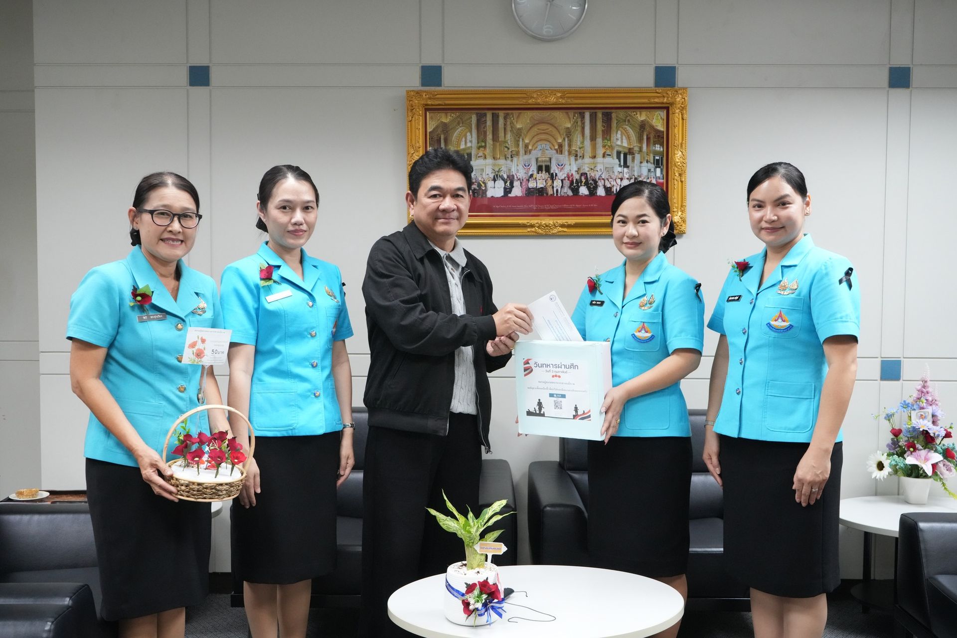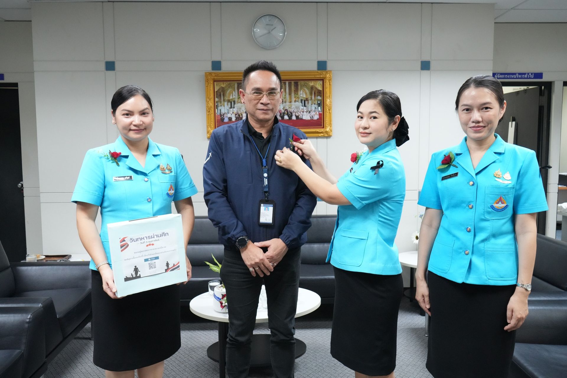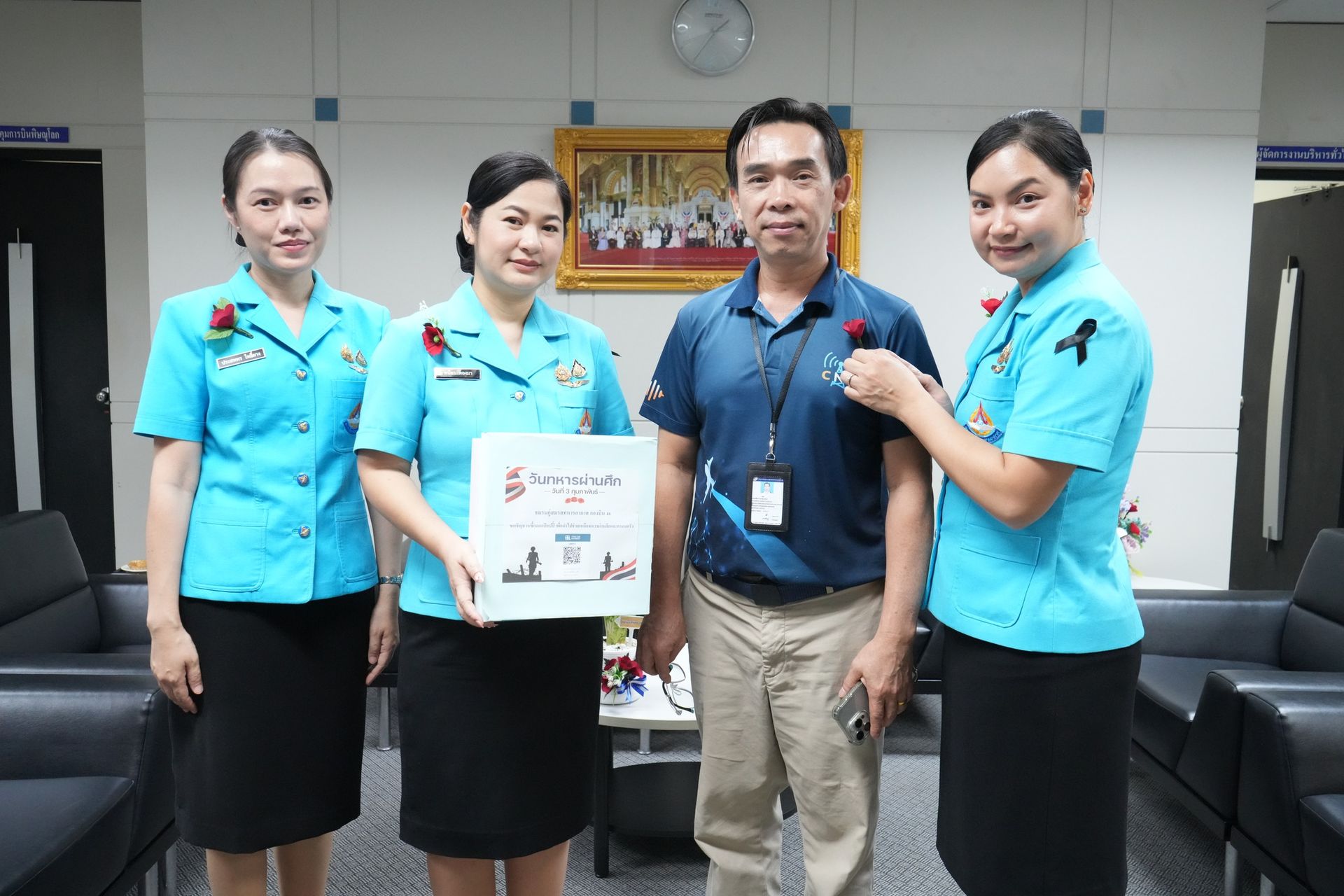 คุณจุตินภาพรรณ ผลพิบูลย์ รองประธานชมรมคู่สมรสทหารอากาศ กองบิน 46 (1) พร้อมด้วย รองประธานชมรมคู่สมรส กองบิน 46 (2, 3) และสมาชิกชมรมคู่สมรส กองบิน 46 นำดอกไม้ที่ระลึกวันทหารผ่านศึก “ดอกป๊อปปี้” ออกจำหน่าย ณ