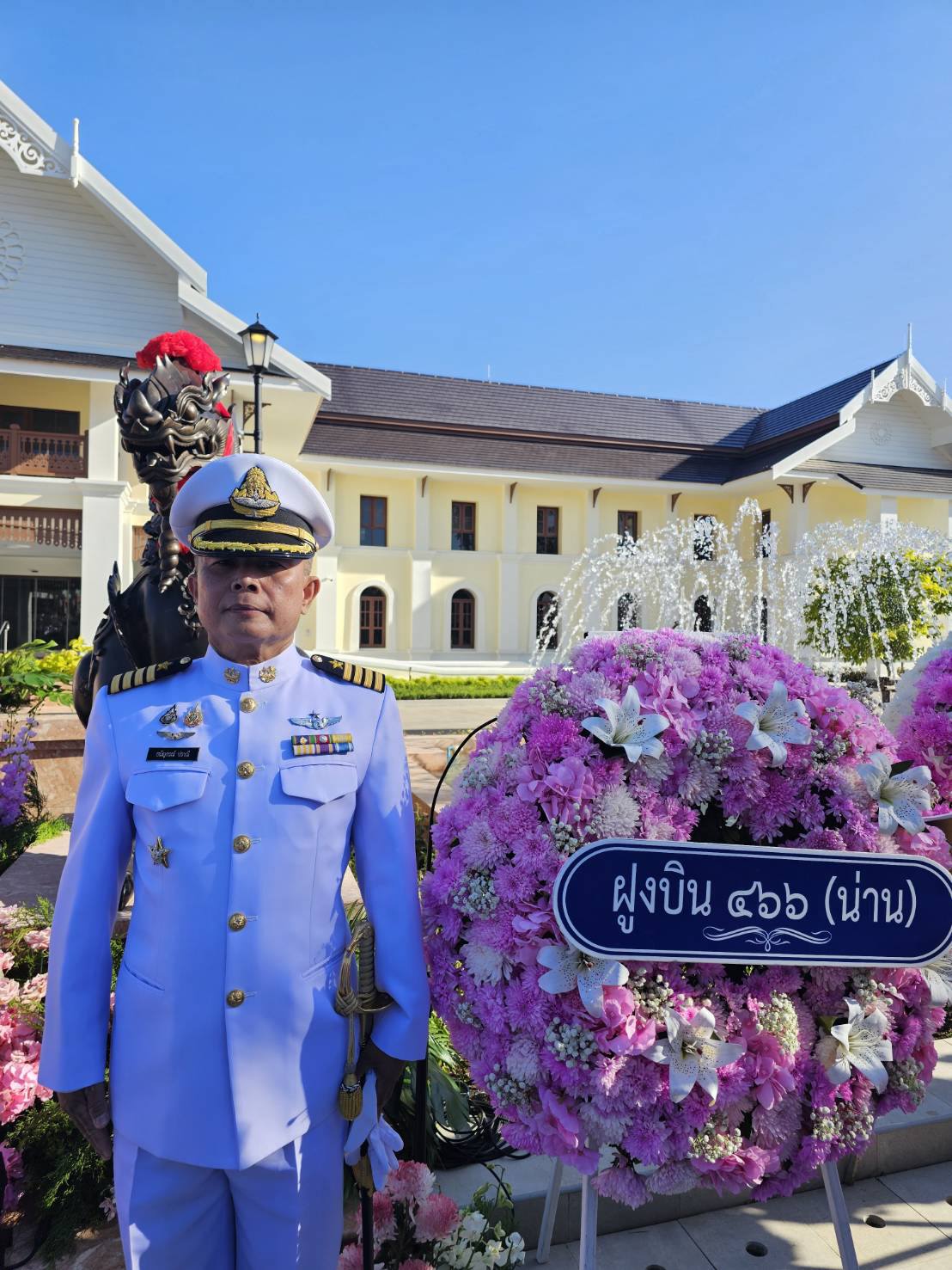 นาวาอากาศเอก ธนัญกรณ์ ปราณี ผู้บังคับฝูงบิน 466 (น่าน) พร้อมด้วยข้าราชการ ร่วมพิธีวางพวงมาลา ถวายราชสดุดีและพิธีสวนสนาม เนื่องในวันปิยมหาราช 23 ตุลาคม 2568 เพื่อรำลึกถึงพระมหากรุณาธิคุณอันที่หาสุดไม่ได้ของพระบาทสมเด็จพระจุลจอมเกล้าเจ้าอยู่หัว โดยมี นาย ชัยนรงค์ วงศ์ใหญ่ ผู้ว่าราชการจังหวัดน่าน เป็นประธานในพิธี เมื่อวันที่ 23 ตุลาคม พ.ศ.2568