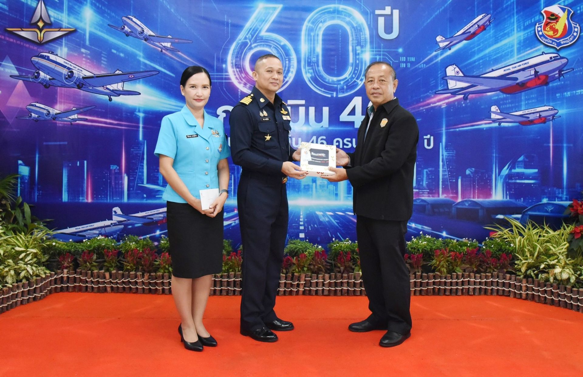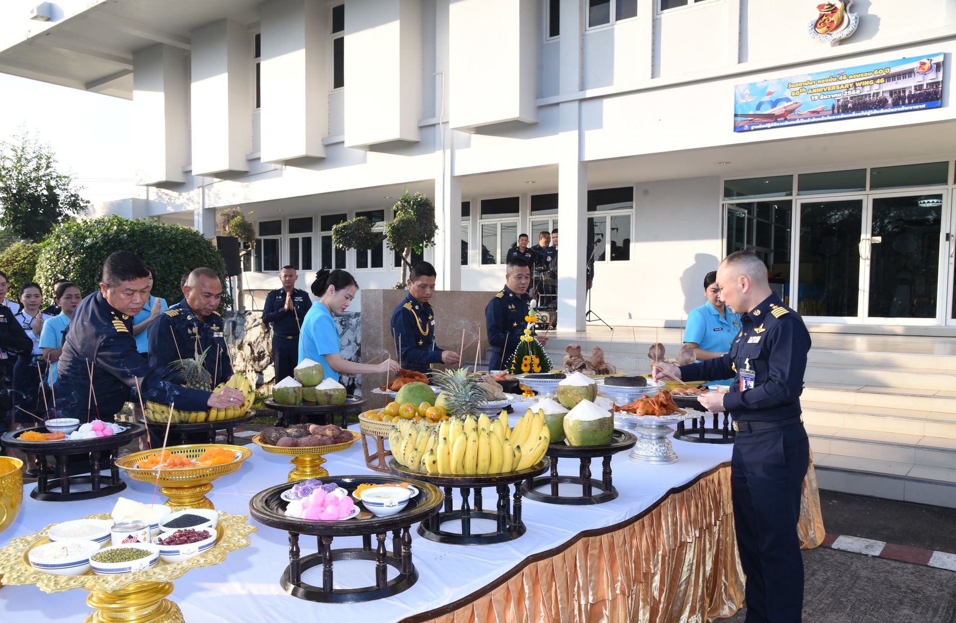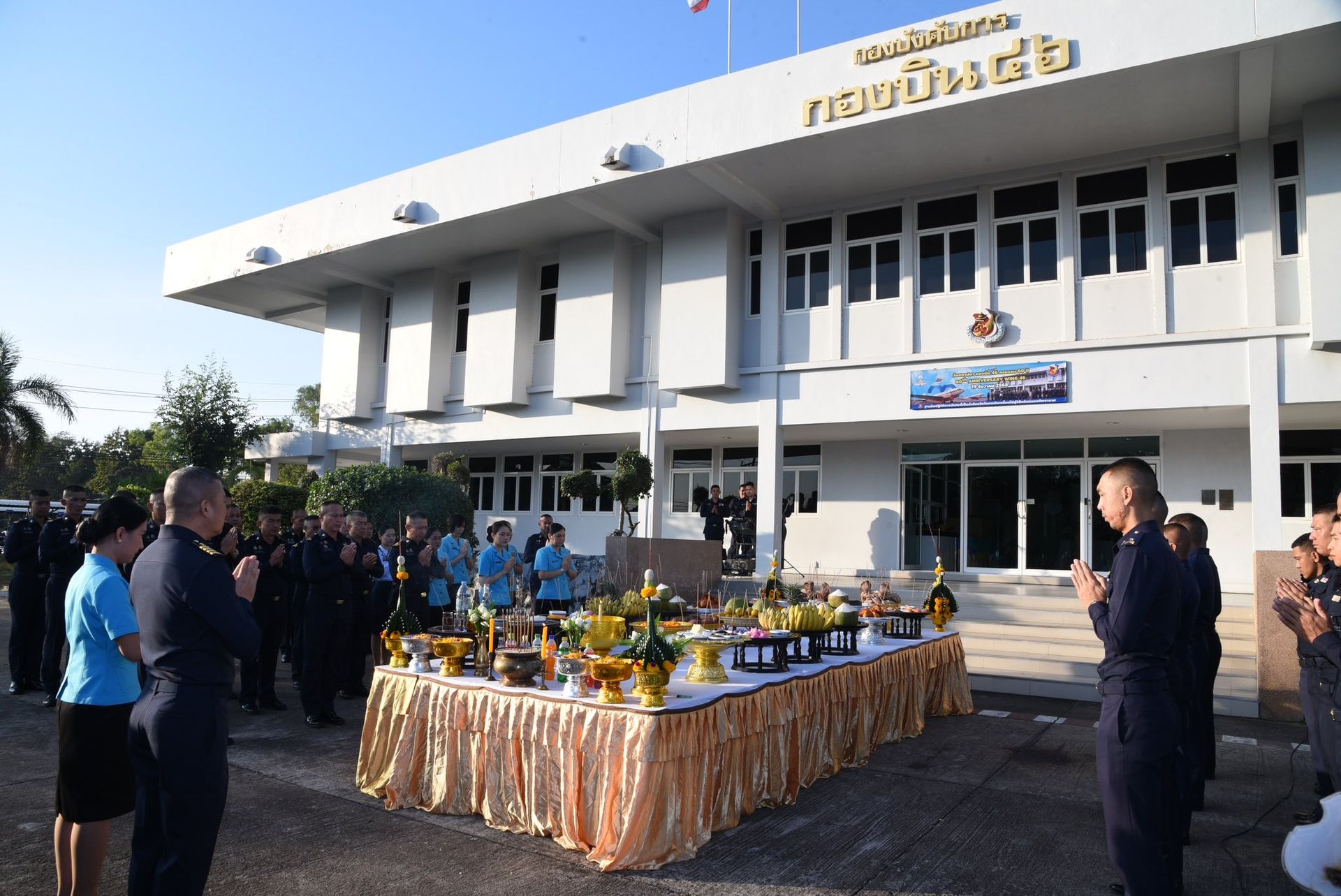 และในวันเดียวกัน นาวาอากาศเอก พนม ดอนตุ้มไพร ผู้บังคับการกองบิน 46 พร้อมด้วย คุณ ศิริวรรณ ดอนตุ้มไพร ประธานชมรมคู่สมรสทหารอากาศ กองบิน 46, รองผู้บังคับการกองบิน 46, เสนาธิการกองบิน 46, หัวหน้าหน่วยขึ้นตรงกองบิน 46 ประกอบพิธีบวงสรวง กองบิน 46 เนื่องในโอกาสครบรอบ 60 ปี วันคล้ายวันสถาปนา กองบิน 46 ณ บริเวณด้านหน้าอาคาร กองบังคับการ กองบิน 46 อำเภอเมือง จังหวัดพิษณุโลก เมื่อวันที่ 19 ธันวาคม พ.ศ.2569