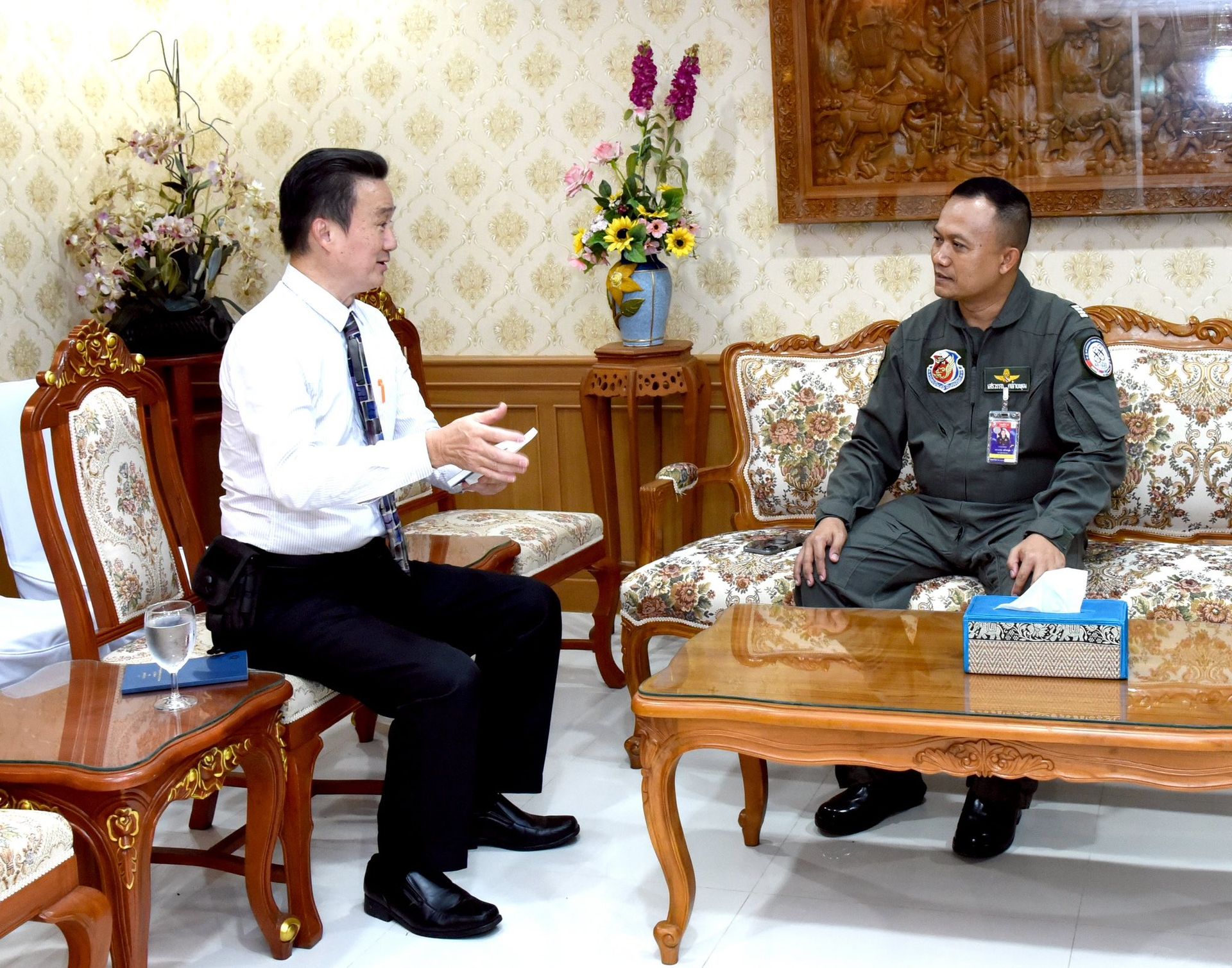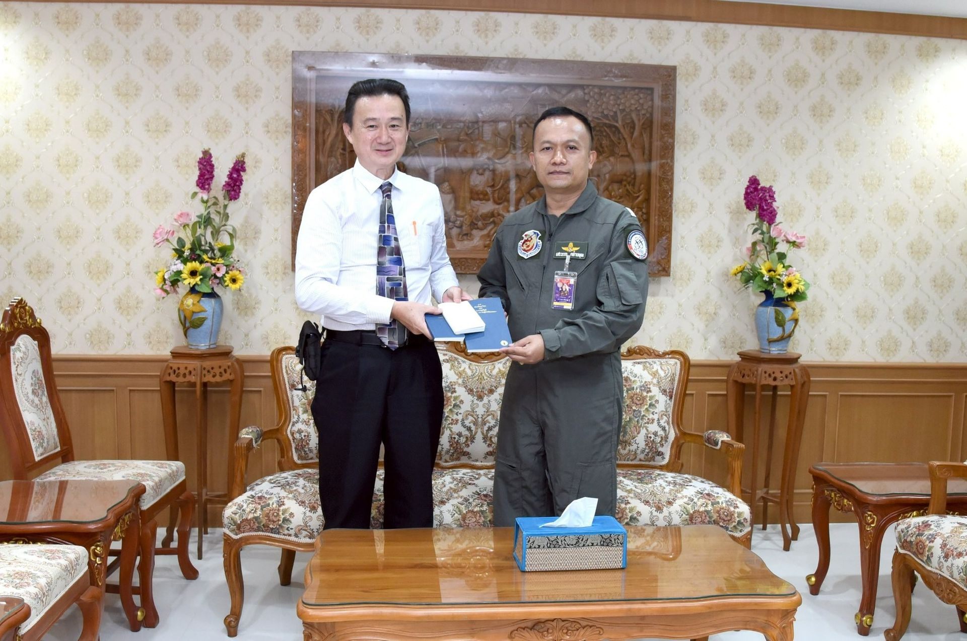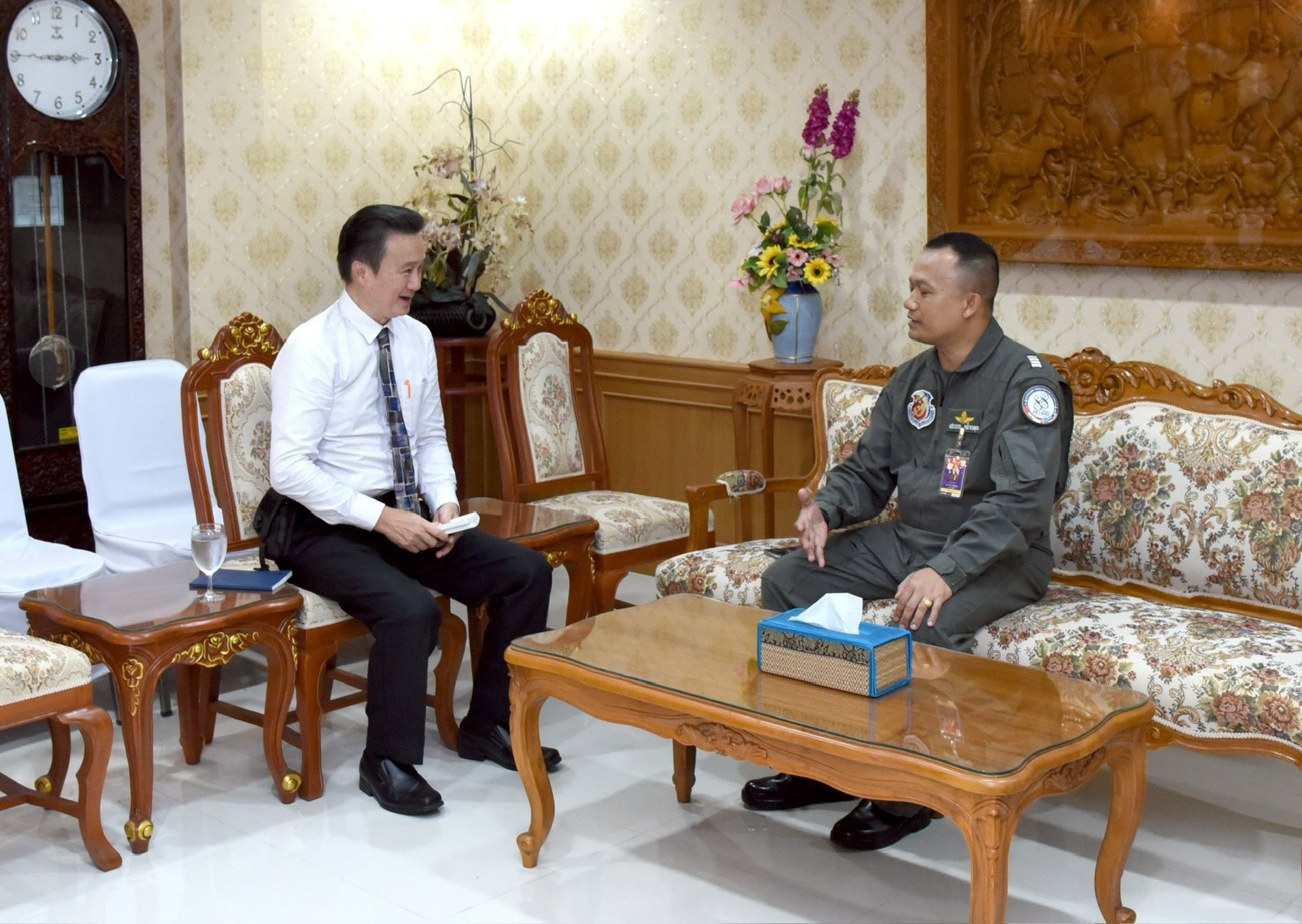 นาวาอากาศเอก เสรวรรถ คล้ายพุฒ ผู้บังคับการกองบิน 46 ให้การต้อนรับ เลขาธิการสมาคมชาวพิษณุโลก เข้าพบเพื่อพบปะหารือและขออนุมัติใช้พื้นที่ กองบิน 46 จัดงาน "สานสัมพันธ์ สมาคมชาวพิษณุโลก - สองแควรวมใจ" ณ ห้องรับรอง กองบังคับการ กองบิน 46 อำเภอเมือง จังหวัดพิษณุโลก เมื่อวันที่ 19 สิงหาคม พ.ศ.2568