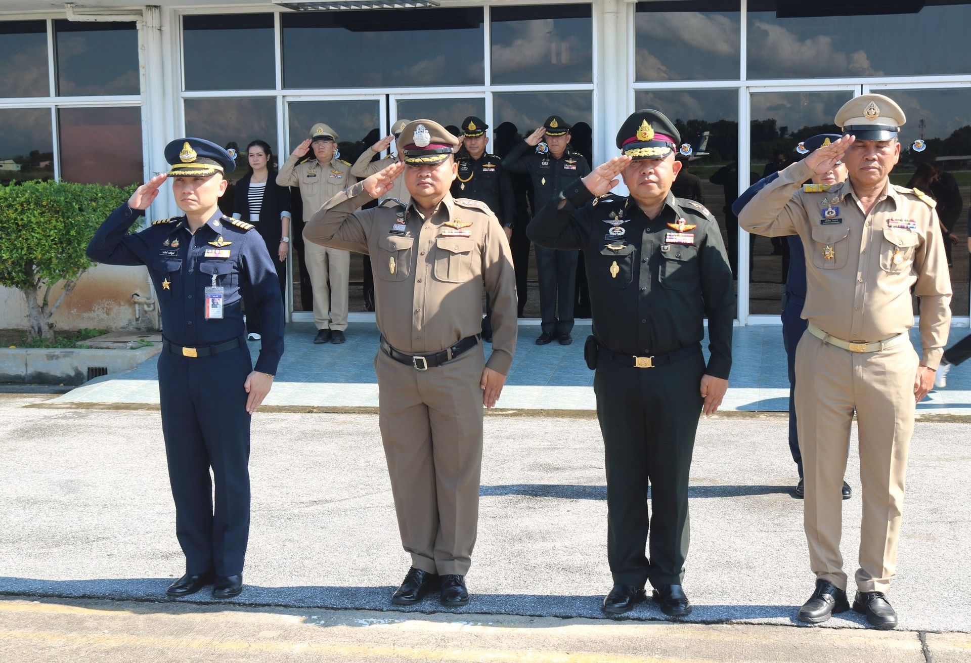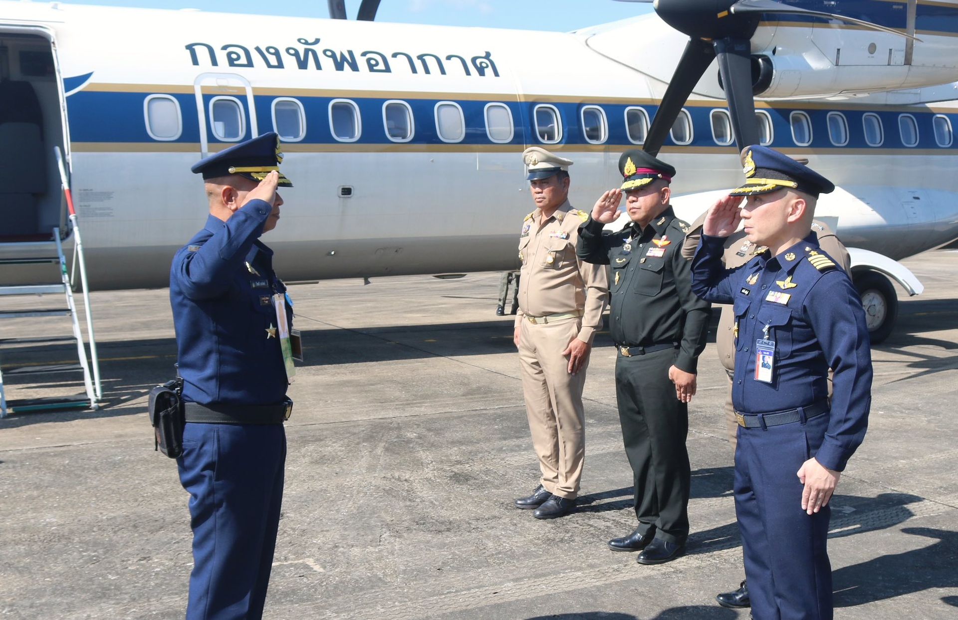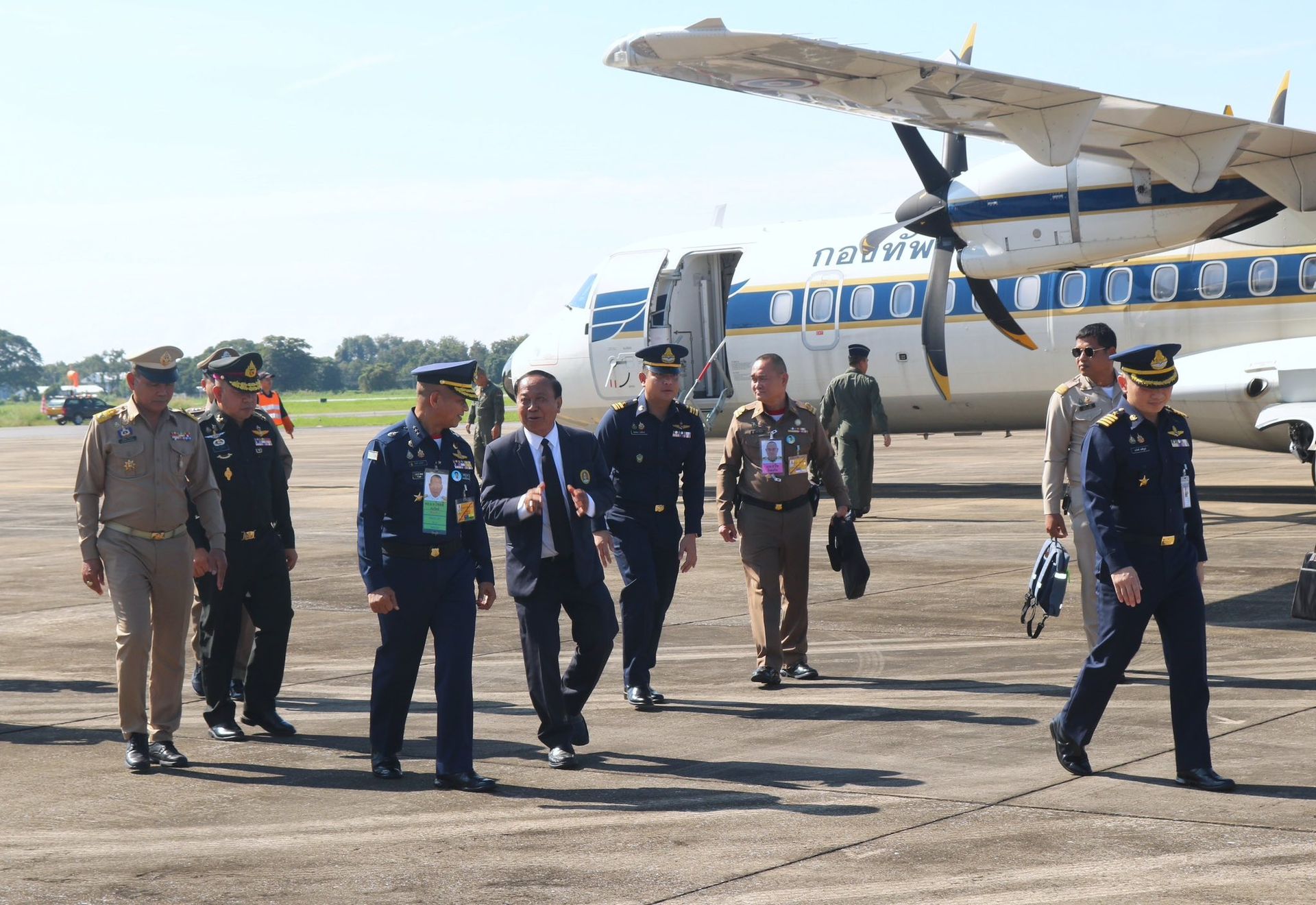 พลอากาศโท โชคดี สมจิตต์ ราชองครักษ์ประจำพระองค์ และคณะ เดินมาทางปฏิบัติภารกิจในพื้นที่จังหวัดพิษณุโลก