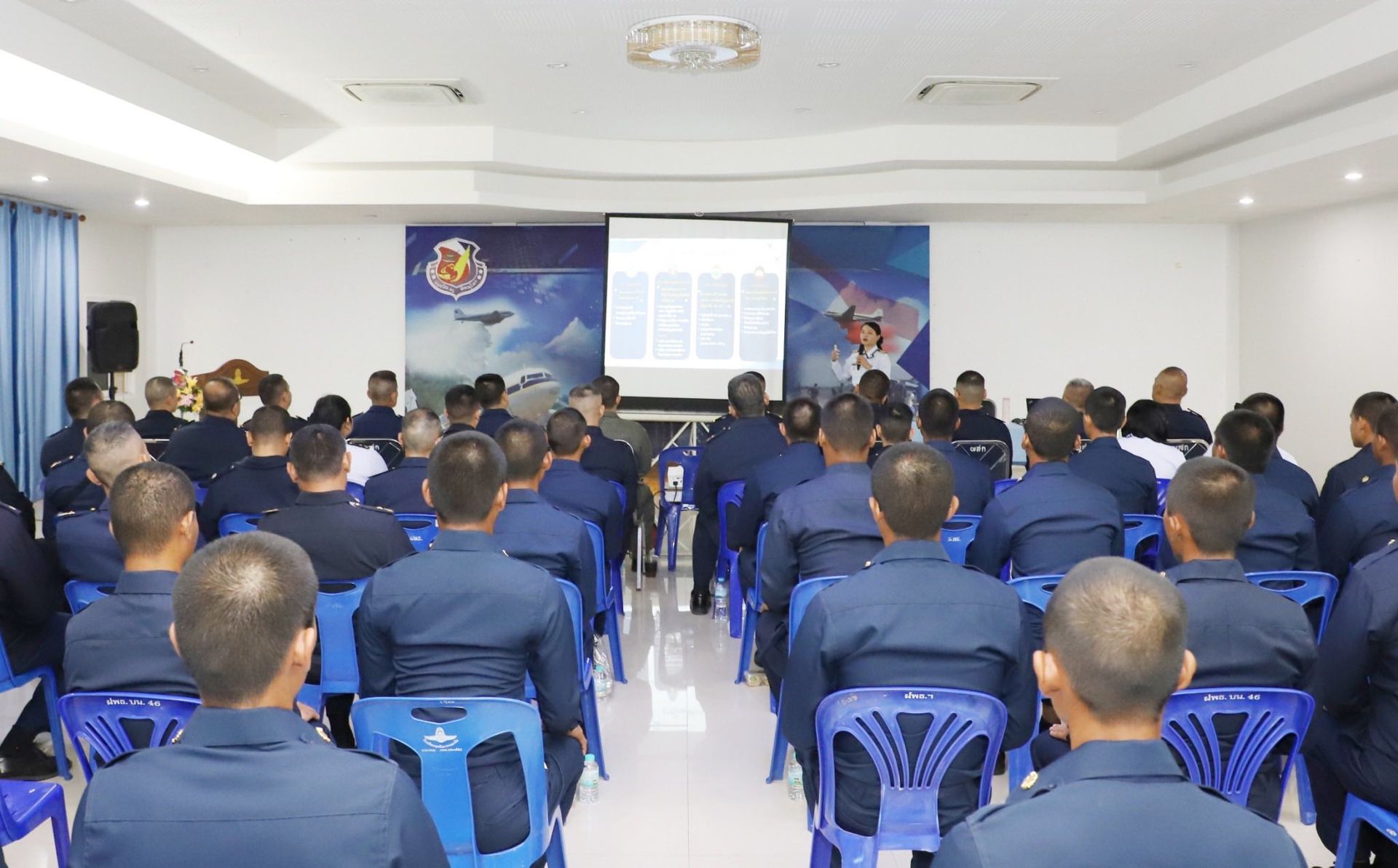 นาวาอากาศเอก อาณัติ ไชยชมภู รองผู้อำนวยการกองรักษาความปลอดภัย สำนักนโยบายและแผน กรมข่าวทหารอากาศ และคณะ เดินทางมาบรรยายให้ความรู้และสร้างจิตสำนึกด้านการรักษาความปลอดภัย ให้แก่ข้าราชการ ทหารกองประจำการ ลูกจ้างและพนักงานราชการกองบิน 46