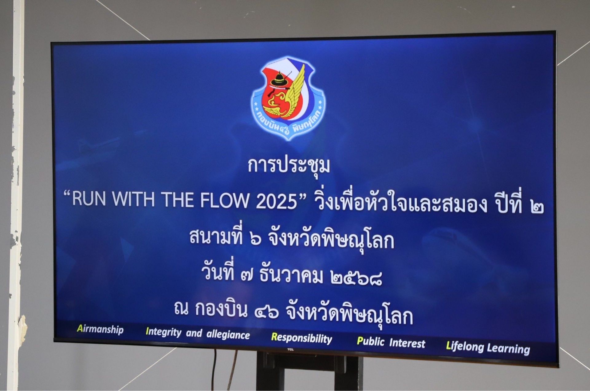 นาวาอากาศเอก ธีรพงษ์ เจริญยิ่ง เสนาธิการกองบิน 46 เป็นประธานในการประชุมการจัดกิจกรรมการกุศล "Run With The Flow 2025 วิ่งเพื่อหัวใจและสมอง ครั้งที่ 2 เพื่อประชุมหารือแนวทางการจัดกิจกรรมให้เป็นไปด้วยความเรียบร้อย และเหมาะสม