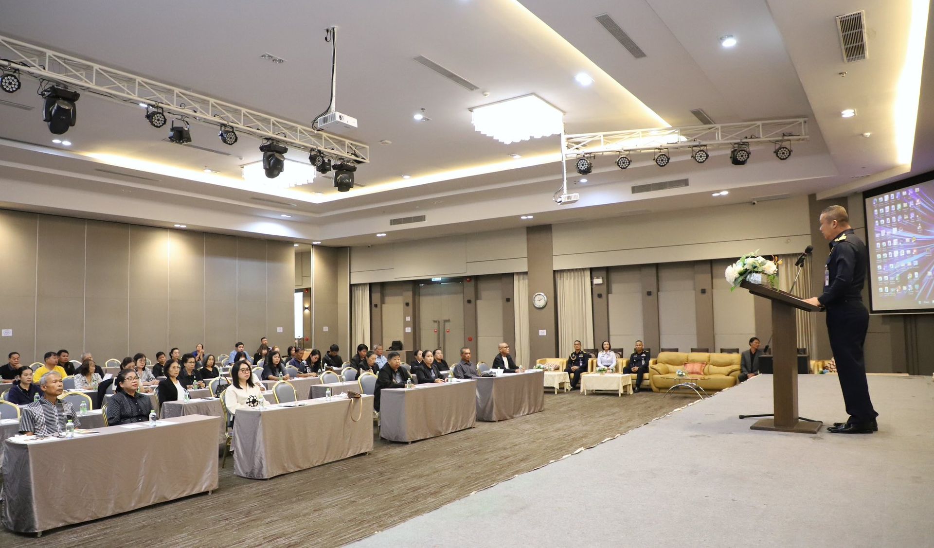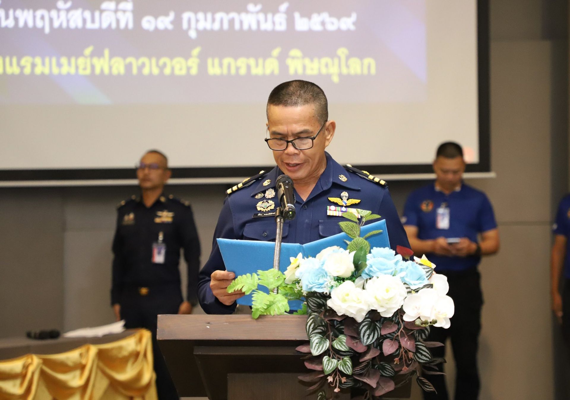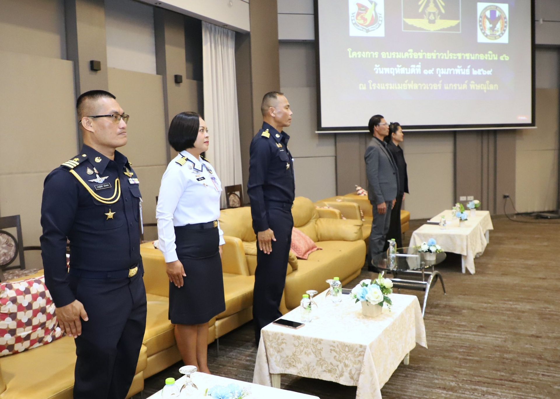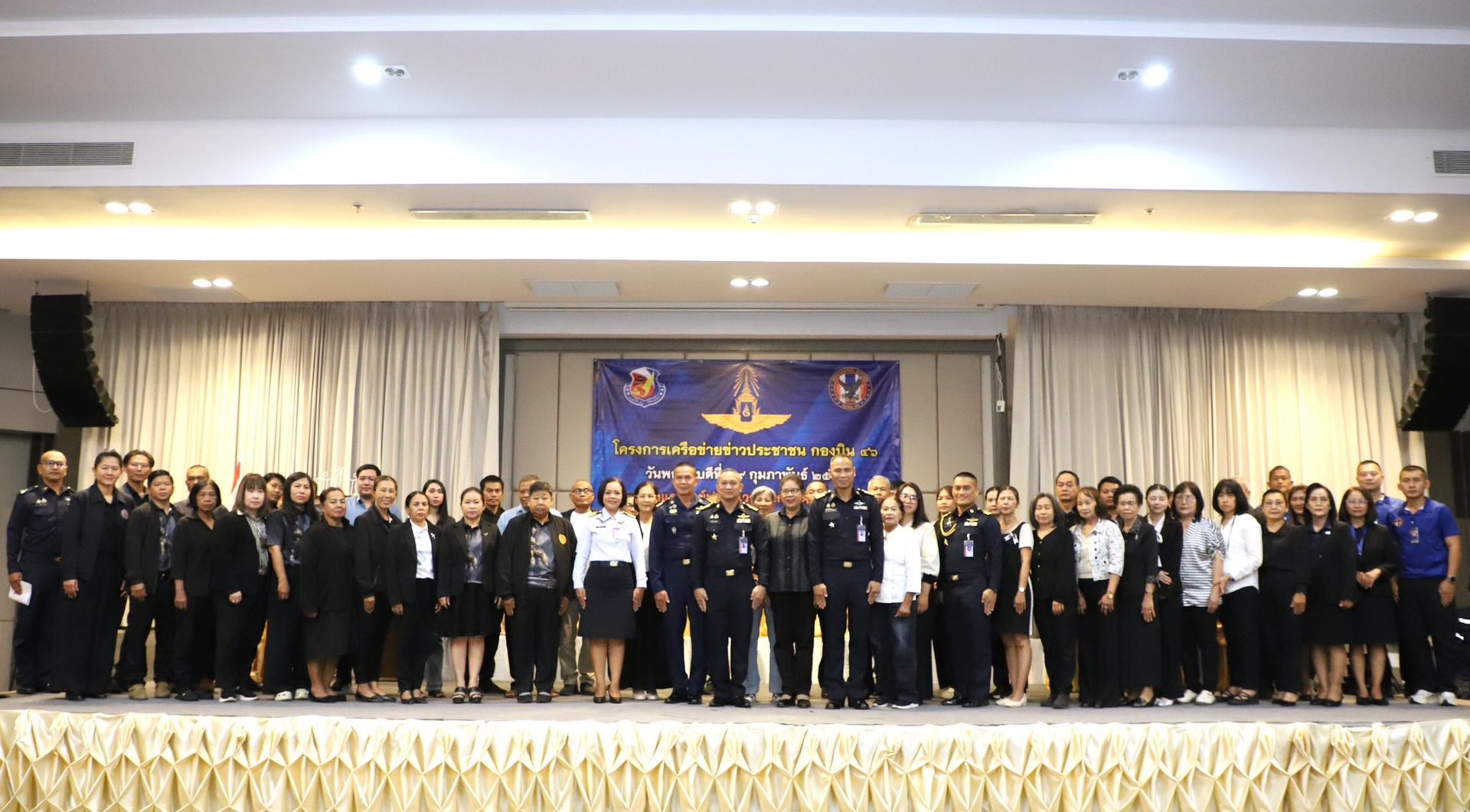 นาวาอากาศเอก พนม ดอนตุ้มไพร ผู้บังคับการกองบิน 46 เป็นประธานในพิธีเปิดโครงการเครือข่ายข่าวประชาชนกองบิน 46 ประจำปี 2569 เพื่อสร้างและพัฒนาเครือข่ายข่าวประชาชนในพื้นที่รอบที่ตั้งกองบิน 46 ให้มีความเข้มแข็ง สามารถประสานการแจ้งข้อมูลข่าวสารที่เป็นประโยชน์ต่อการรักษาความปลอดภัยของหน่วยได้อย่างมีประสิทธิภาพ อีกทั้งยังเป็นการส่งเสริมความสัมพันธ์อันดีระหว่างกองบิน 46 ผู้นำชุมชน และประชาชนในพื้นที่ อันจะนำไปสู่ความร่วมมือที่แน่นแฟ้นในการสนับสนุนภารกิจด้านการข่าวกรองและการรักษาความมั่นคงต่อไป ณ โรงแรมเมย์ฟลาวเวอร์ แกรนด์ พิษณุโลก อำเภอเมือง จังหวัดพิษณุโลก เมื่อวันที่ 19 กุมภาพันธ์ พ.ศ.2569