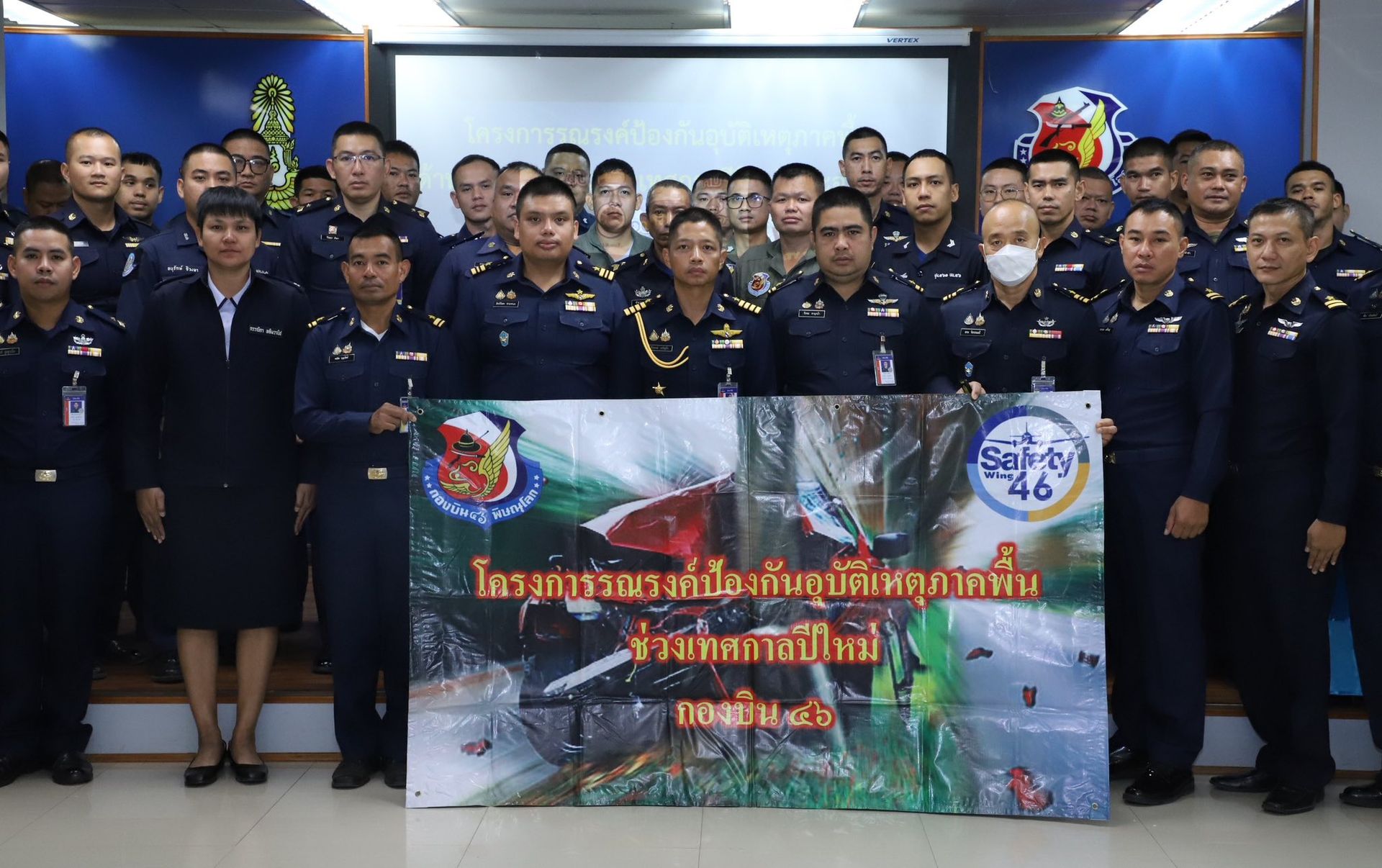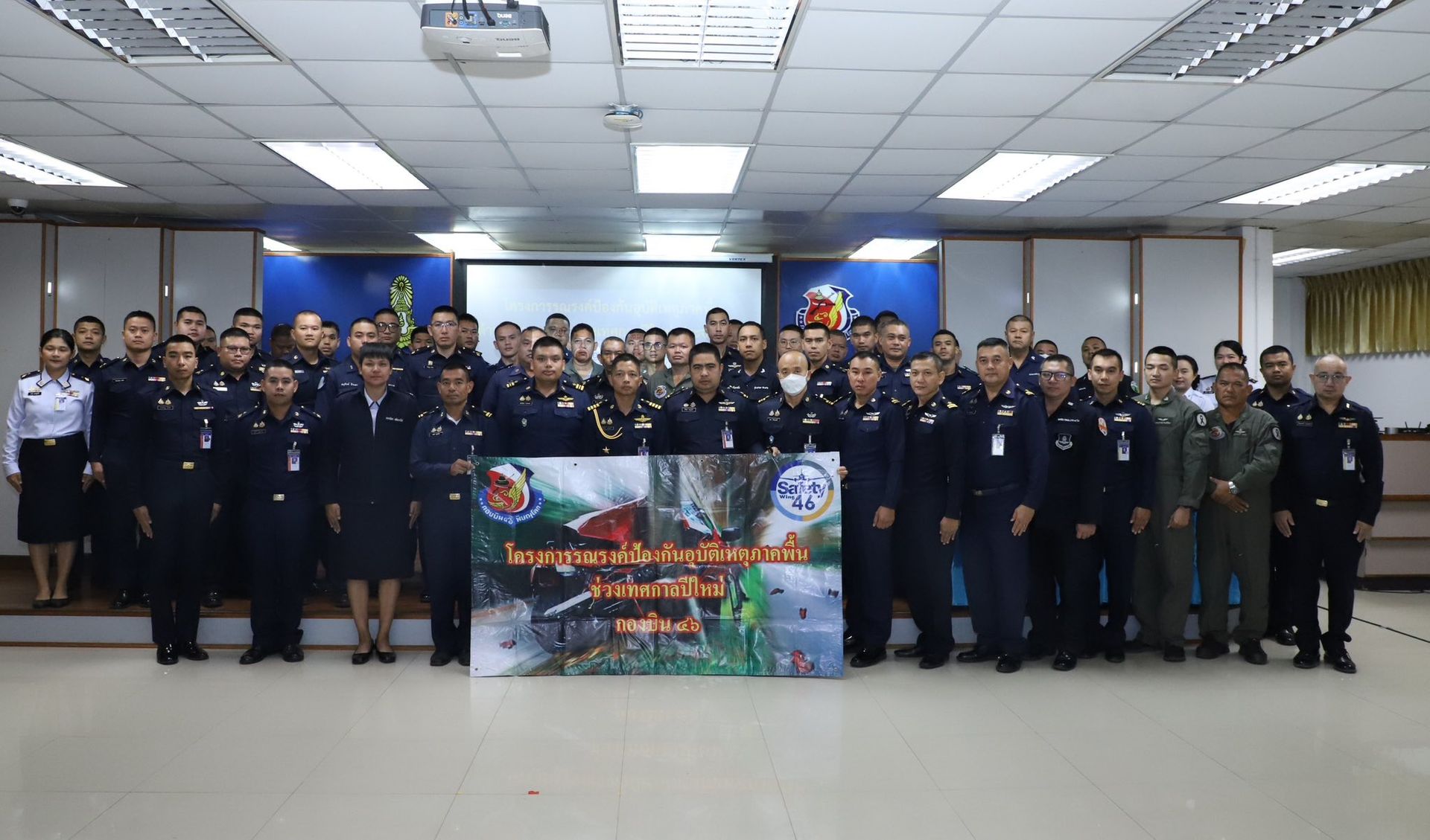 นาวาอากาศเอก ธีรพงษ์ เจริญยิ่ง เสนาธิการกองบิน 46 เป็นประธานในพิธีเปิดโครงการรณรงค์ป้องกันอุบัติเหตุภาคพื้นด้านการจราจร และให้ความรู้ด้านการป้องกันอัคคีภัย ในช่วงเทศกาลปีใหม่ ประจำปี 2569 ให้กับข้าราชการ ลูกจ้าง พนักงานราชการ และทหารกองประจำการ กองบิน 46 ณ ห้องเฉลิมอากาศ ท่าอากาศยานทหาร กองบิน 46 เมื่อวันที่ 25 ธันวาคม พ.ศ.2568