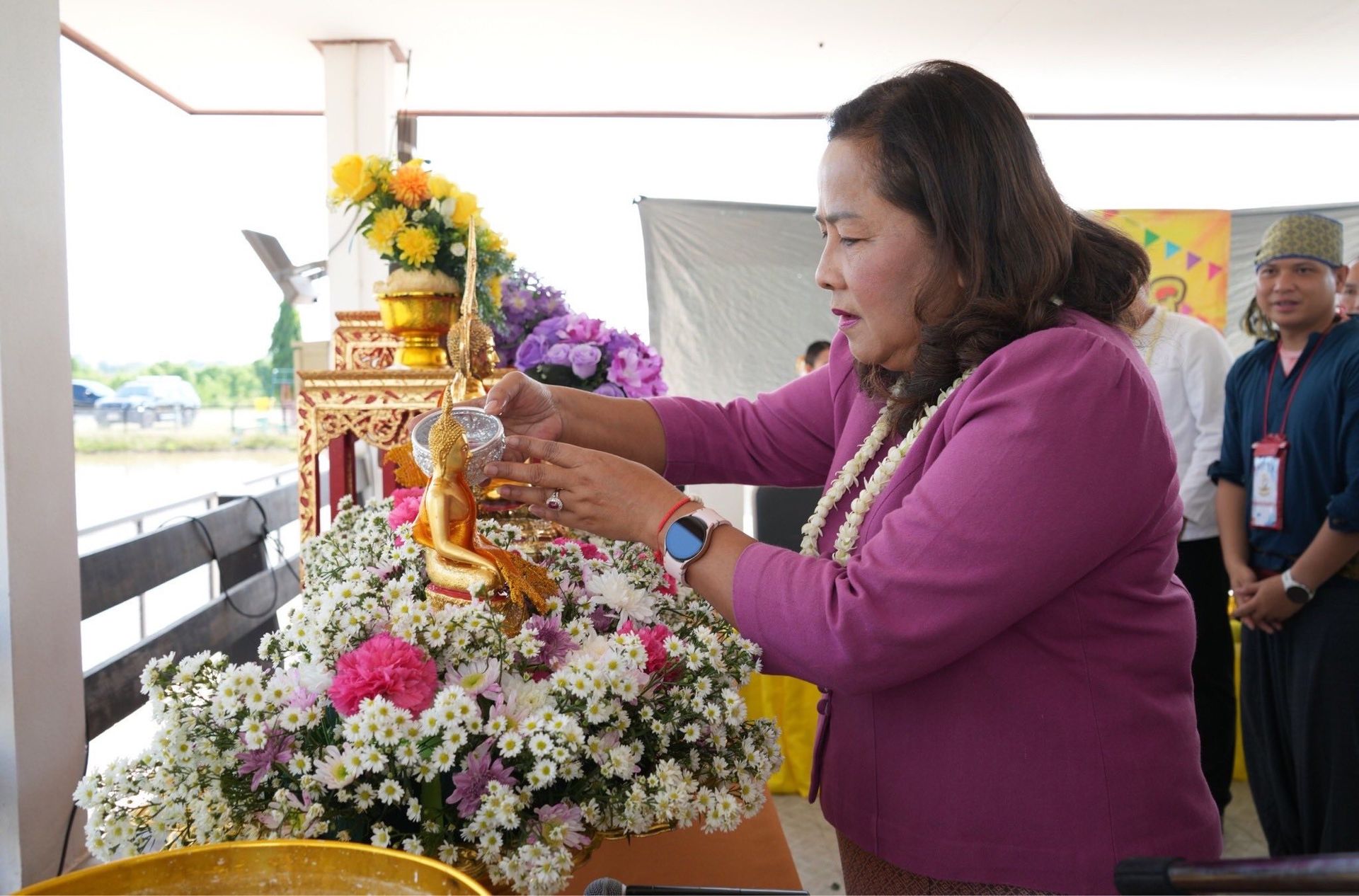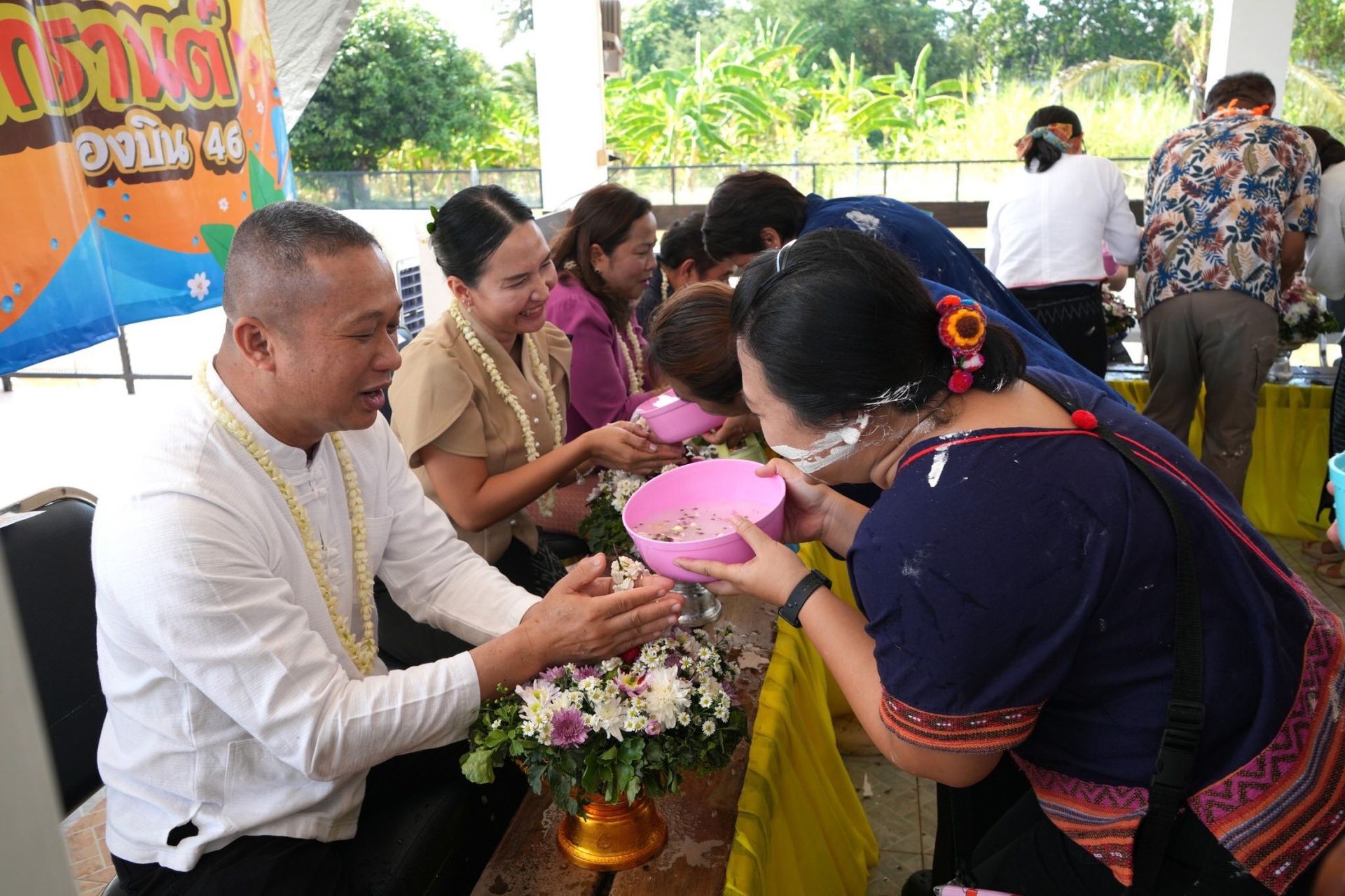ภายในพิธีได้จัดให้มีการสรงน้ำพระพุทธรูป เพื่อความเป็นสิริมงคล การรดน้ำขอพรผู้บังคับบัญชา ซึ่งถือเป็นการแสดงออกถึงความกตัญญูกตเวที และการขอพรเพื่อความเจริญรุ่งเรืองในชีวิตและการปฏิบัติหน้าที่ราชการ นอกจากนี้ยังเป็นการสืบสาน อนุรักษ์ และส่งเสริมศิลปวัฒนธรรมประเพณีไทยอันดีงาม ให้คงอยู่สืบไป