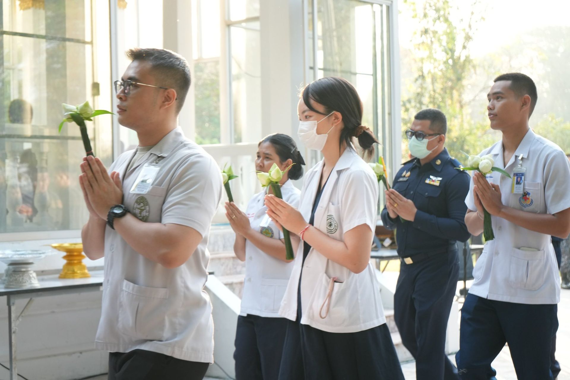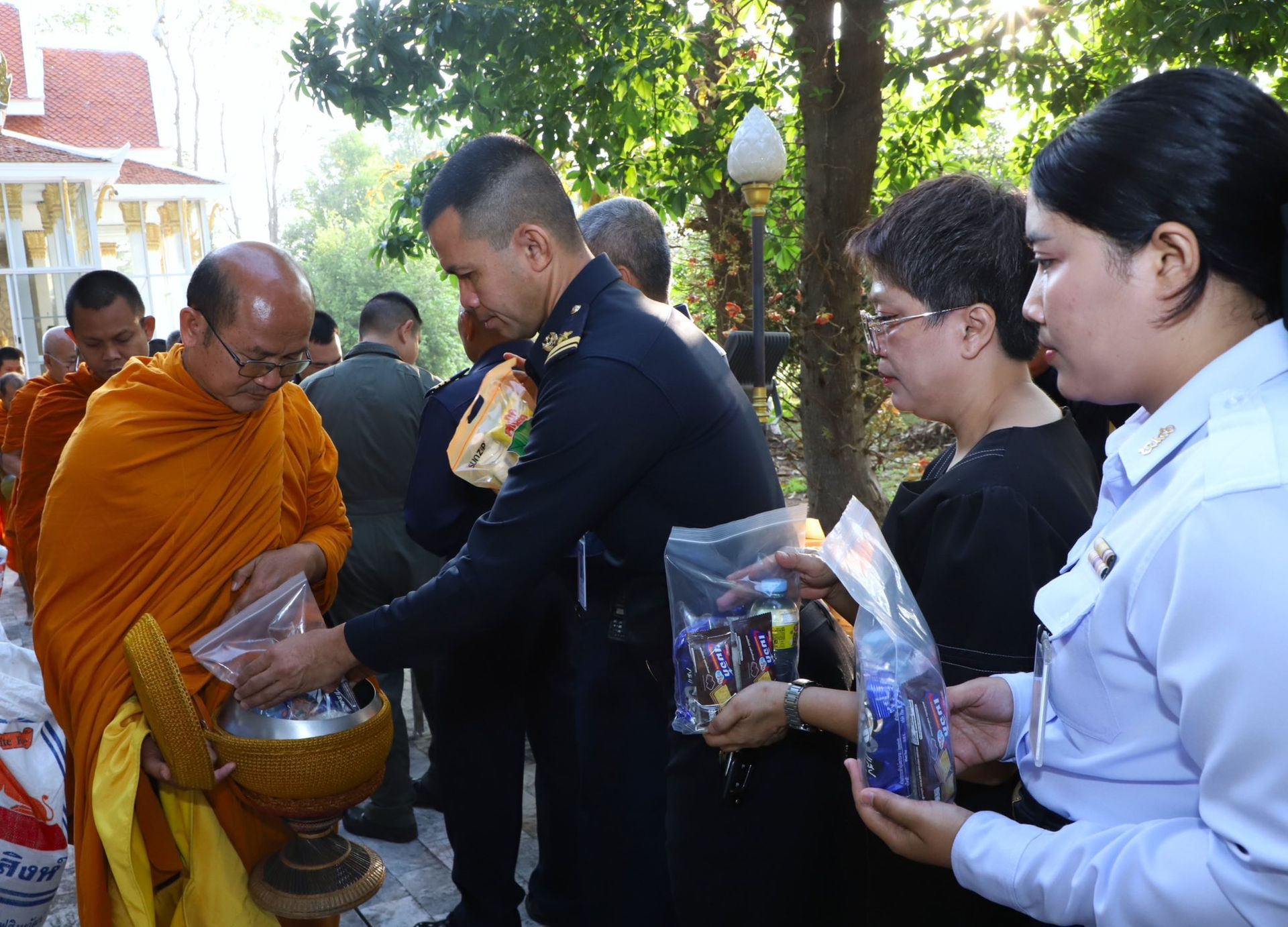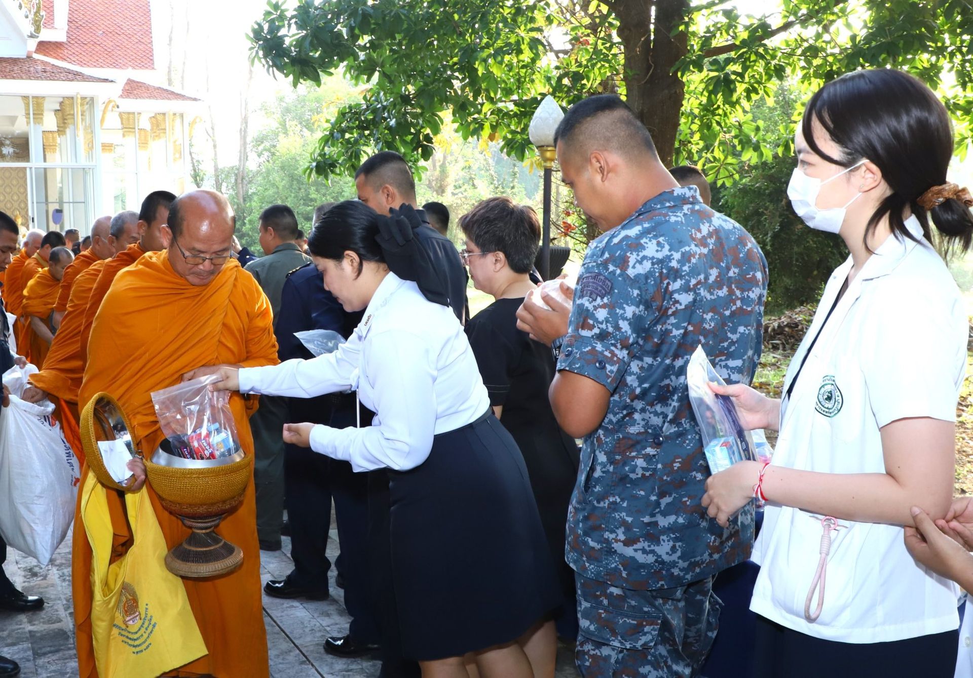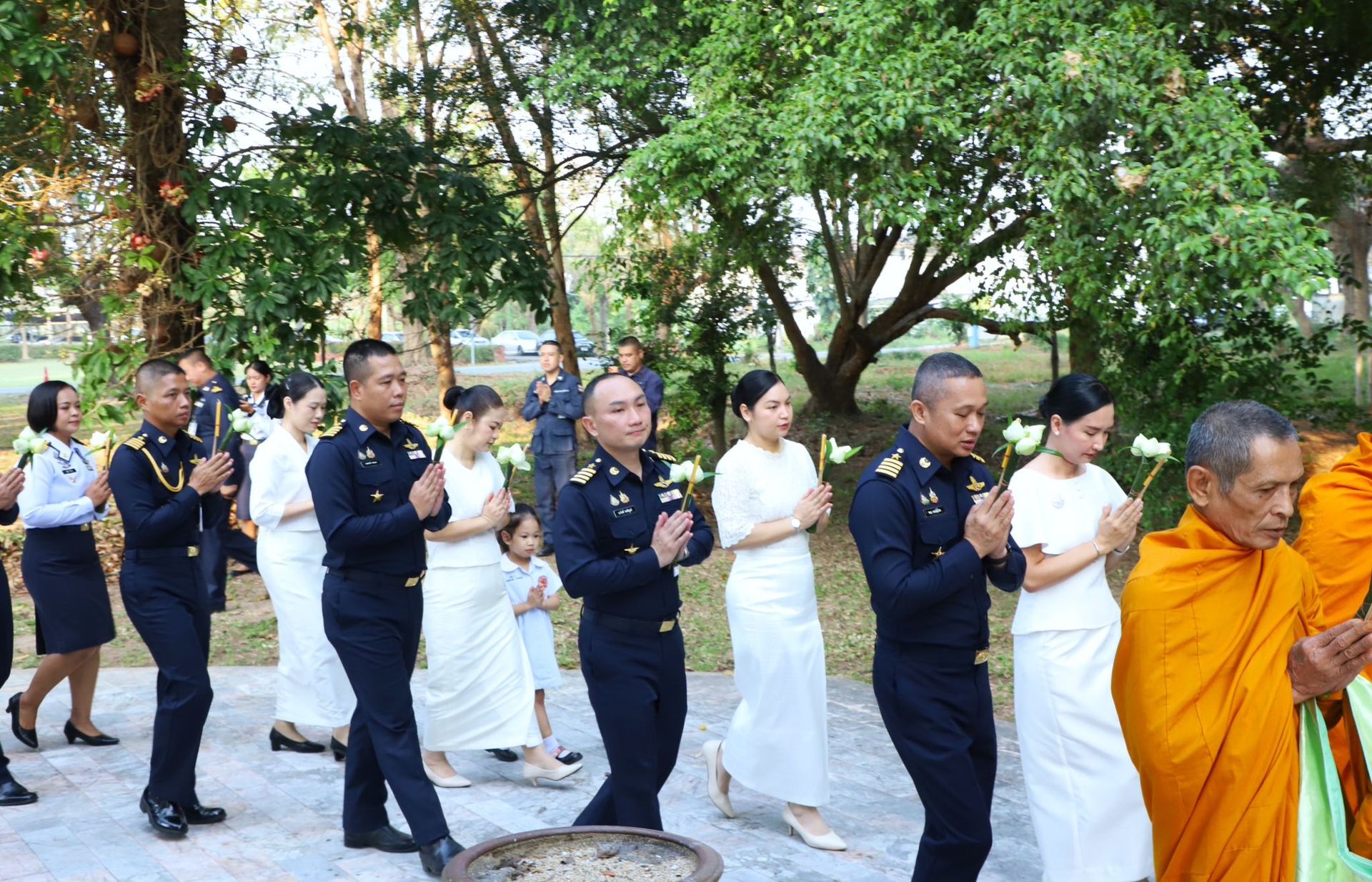 นาวาอากาศเอก พนม ดอนตุ้มไพร ผู้บังคับการกองบิน 46 พร้อมด้วย คุณ ศิริวรรณ ดอนตุ้มไพร ประธานชมรมคู่สมรสทหารอากาศ กองบิน 46 เป็นประธานในพิธีทำบุญตักบาตรข้าวสารอาหารแห้งและเวียนเทียน เนื่องในวันมาฆบูชา ประจำปี 2569 เพื่อส่งเสริมให้กำลังพลและครอบครัว กองบิน 46 ได้ร่วมกันสืบสานพระพุทธศาสนา และระลึกถึงเหตุการณ์สำคัญในวันมาฆบูชา อันเป็นวันที่พระพุทธเจ้าทรงแสดงโอวาทปาติโมกข์แก่พระอรหันต์ 1,250 รูป ซึ่งถือเป็นหลักธรรมสำคัญในการดำเนินชีวิต อันจะเป็นพื้นฐานสำคัญในการปฏิบัติหน้าที่ด้วยความซื่อสัตย์สุจริต มีวินัย และยึดมั่นในคุณธรรม ควบคู่ไปกับการปฏิบัติภารกิจของกองทัพอากาศอย่างมีประสิทธิภาพต่อไป