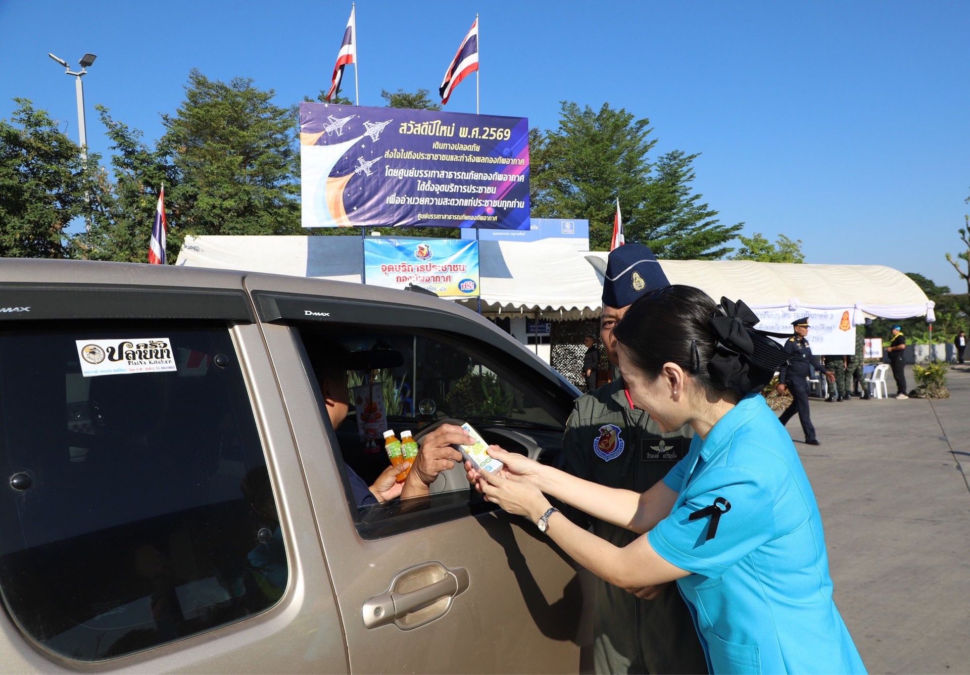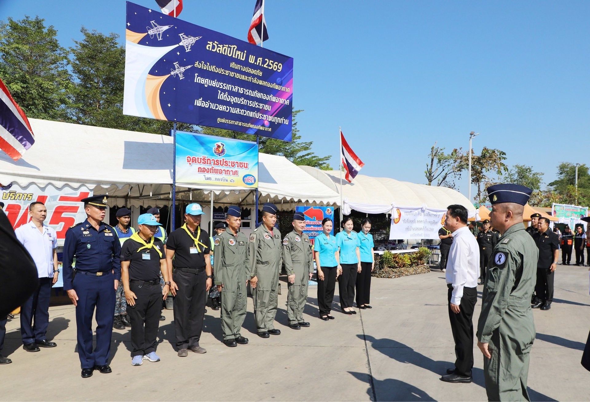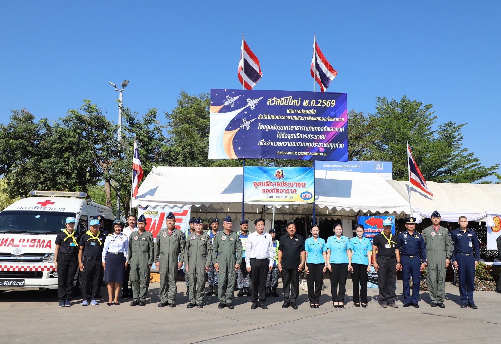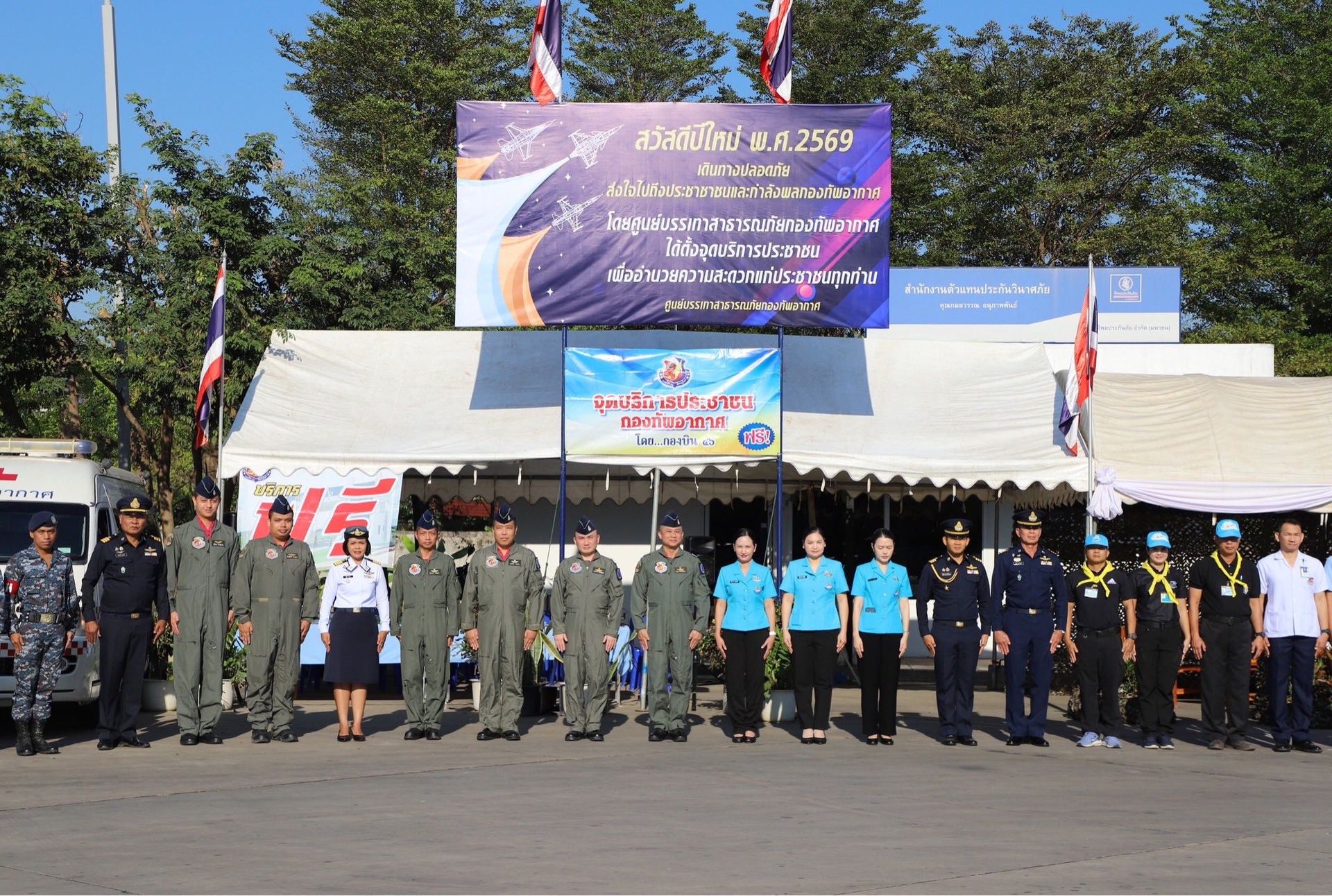 โดยมี รองผู้บังคับการกองบิน 46, เสนาธิการกองบิน 46, หัวหน้าหน่วยขึ้นตรง กองบิน 46, จิตอาสาพระราชทาน กองบิน 46 และสมาชิกชมรมคู่สมรสทหารอากาศ กองบิน 46 ร่วมกิจกรรมมในครั้งนี้ พร้อมทั้งแนะนำให้ข้อมูลการเดินทาง, บริการเครื่องดื่ม, ผ้าเย็น, บริการปฐมพยาบาลเบื้องต้น ให้แก่พี่น้องประชาชนที่เข้ารับการบริการ ณ บริเวณสถานีบริการน้ำมันเชื้อเพลิง ปตท.ท่าโพธิ์ (แยกวัดสกัดน้ำมัน) ถนนเลี่ยงเมือง ทางหลวงหมายเลข 126 ตำบลท่าโพธิ์ อำเภอเมือง จังหวัดพิษณุโลก ระหว่างวันที่ 30 ธันวาคม 2568 - 5 มกราคม 2569