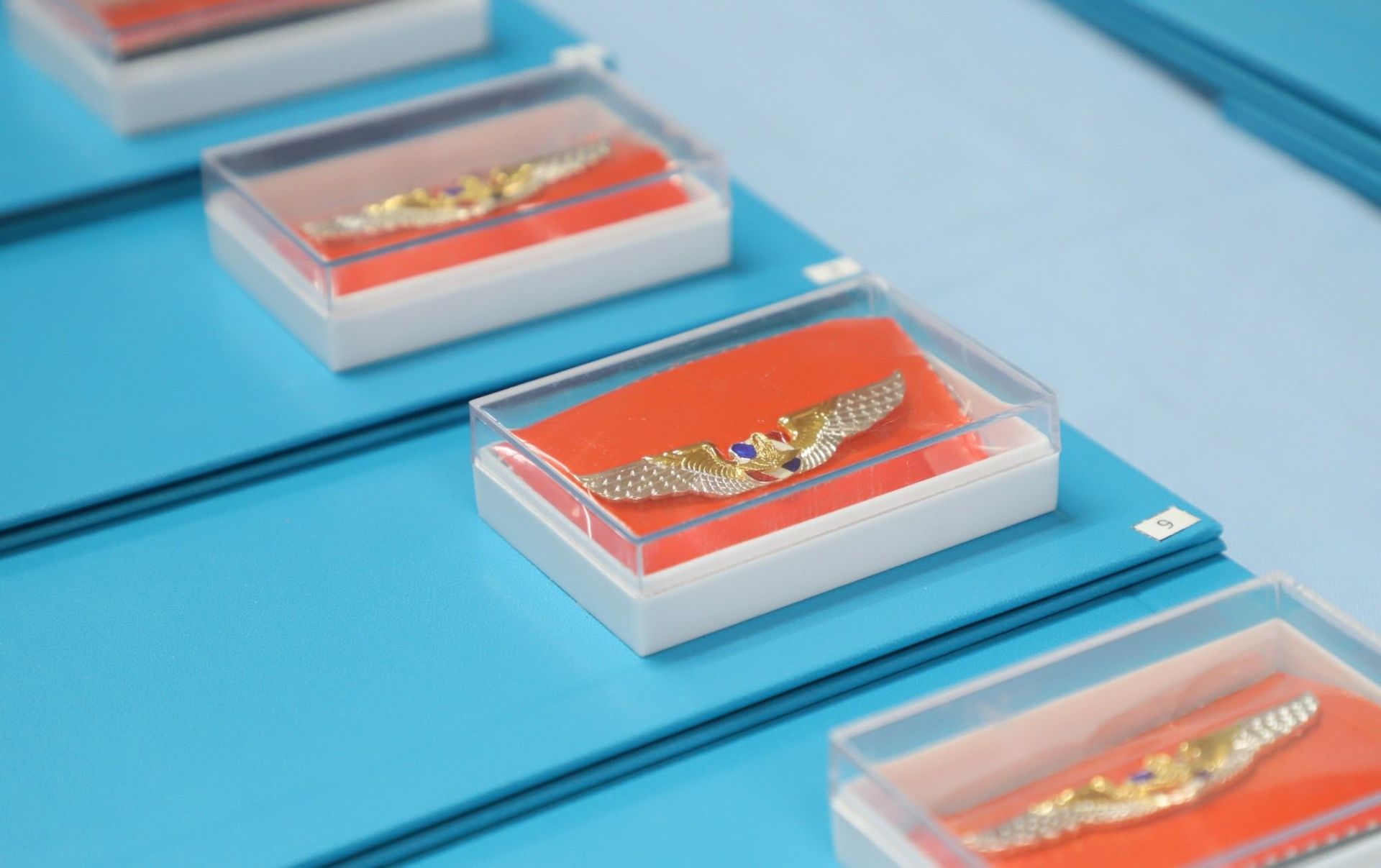 - รูปปีกนกสีทองและปีกนกสีเงิน โดย ปีกนก หมายถึง ความคล่องตัว รวดเร็วในการปฏิบัติภารกิจของกองทัพอากาศอย่างมีประสิทธิภาพ