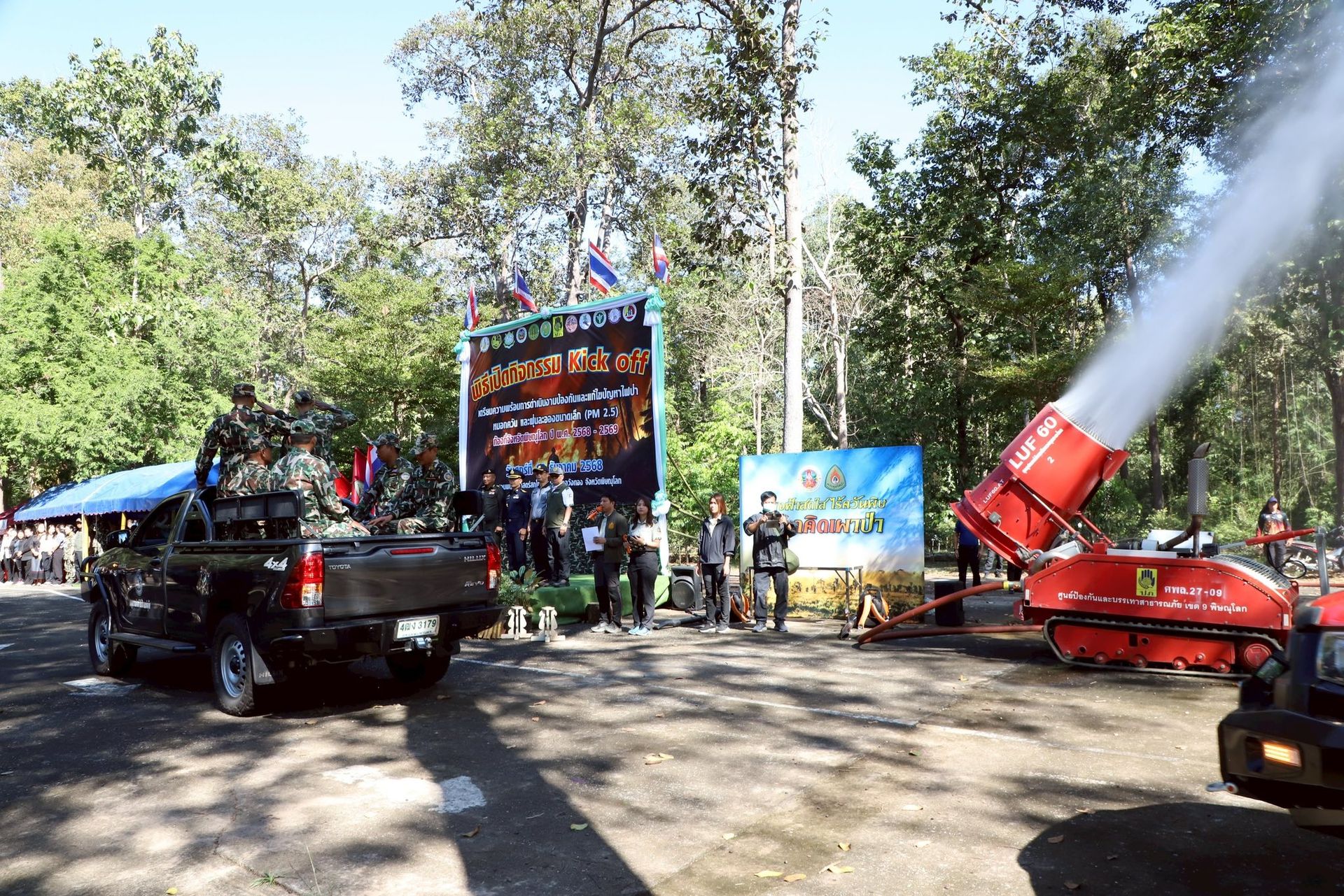 นาวาอากาศเอก พนม ดอนตุ้มไพร ผู้บังคับการกองบิน 46 มอบหมายให้ นาวาอากาศเอก นพดล เหล่ากอ ประจำกองบิน 46 รักษาราชการ หัวหน้าแผนกขนส่งกองบิน 46 ร่วมจัดกิจกรรมรณรงค์ประชาสัมพันธ์ Kick Off การป้องกันและแก้ไขปัญหาไฟป่า หมอกควัน และฝุ่นละอองขนาดเล็ก (PM 2.5) โดยมีวัตถุประสงค์เพื่อสร้างความตระหนักรู้และขอความร่วมมือจากประชาชนในพื้นที่ให้ปรับเปลี่ยนพฤติกรรม ตลอดจนเข้ามาเป็นเครือข่ายช่วยเฝ้าระวังร่วมกับภาครัฐ เพื่อให้การป้องกันหมอกควันและฝุ่นละอองในพื้นที่ประสบผลสำเร็จอย่างเป็นรูปธรรม