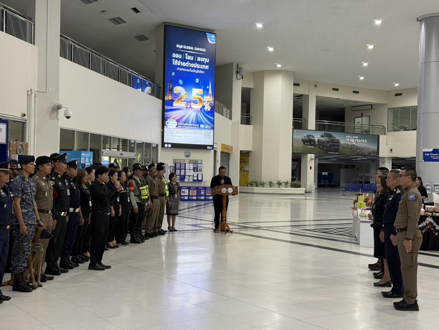 โดยมี นางรุจาภา หอมจันทร์ ผู้อำนวยการท่าอากาศยานพิษณุโลก เป็นประธานในพิธีฯ ณ บริเวณเคาน์เตอร์ศูนย์อำนวยการร่วมด้านการรักษาความปลอดภัย โถงอาคารผู้โดยสาร ชั้น 1 ท่าอากาศยานพิษณุโลก เมื่อวันที่ 26 ธันวาคม พ.ศ.2568