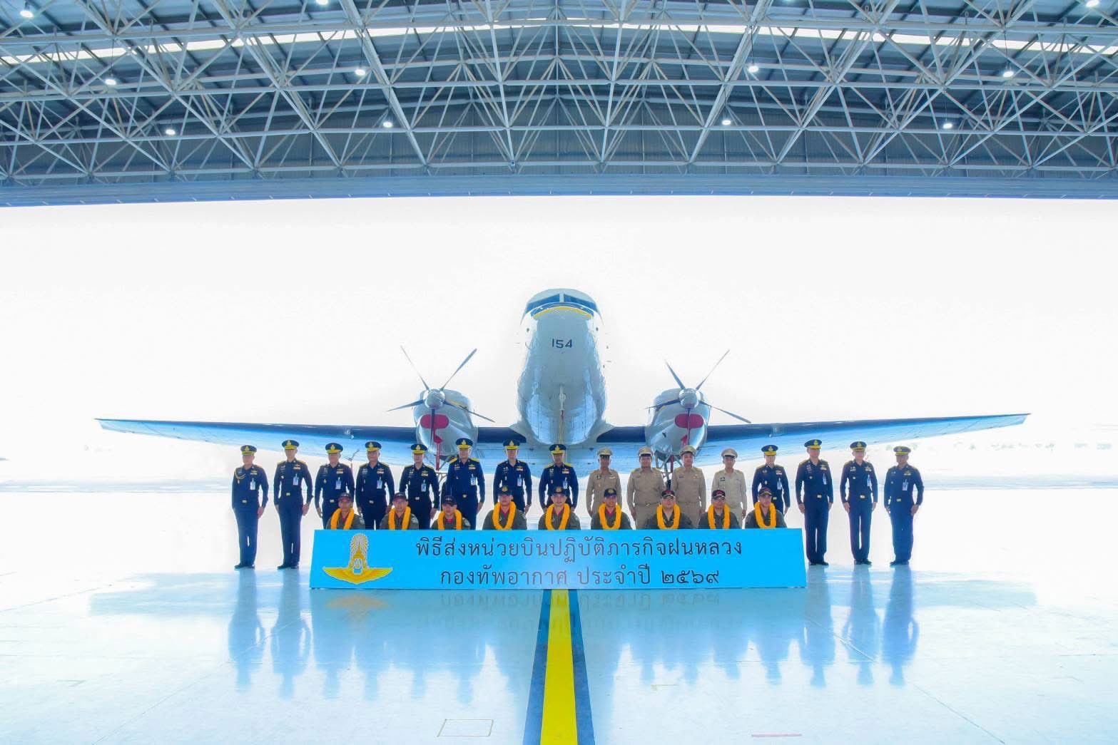 นาวาอากาศเอก พนม ดอนตุ้มไพร ผู้บังคับการกองบิน 46 เข้าร่วมพิธีส่งหน่วยบินปฏิบัติภารกิจฝนหลวง กองทัพอากาศ ประจำปี 2569 โดยมีนาวาอากาศโท พรชัย วัฒนปราณี ผู้บังคับฝูงบิน 461 กองบิน 46 นำอากาศยานลำเลียงแบบที่ 2 ก (BT-67) พร้อมด้วยนักบินและผู้ทำการในอากาศ เข้าร่วมสนับสนุนการปฏิบัติการฝนหลวง