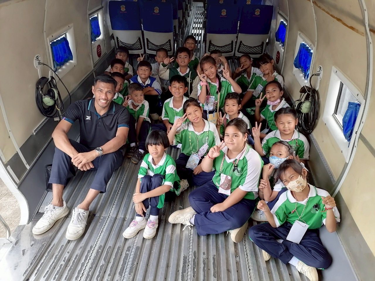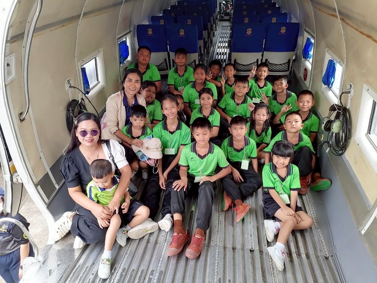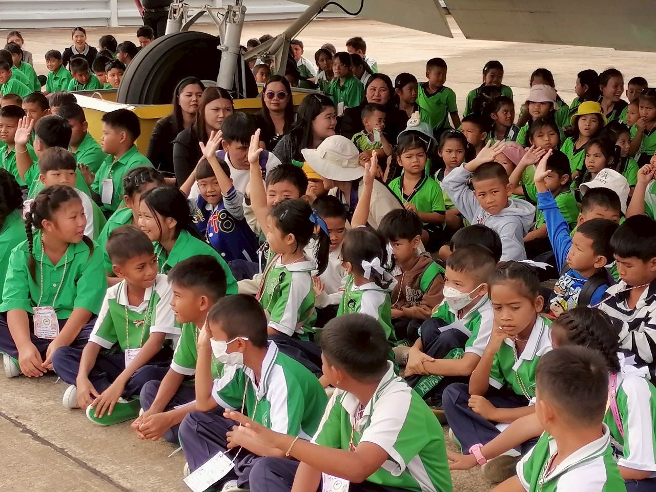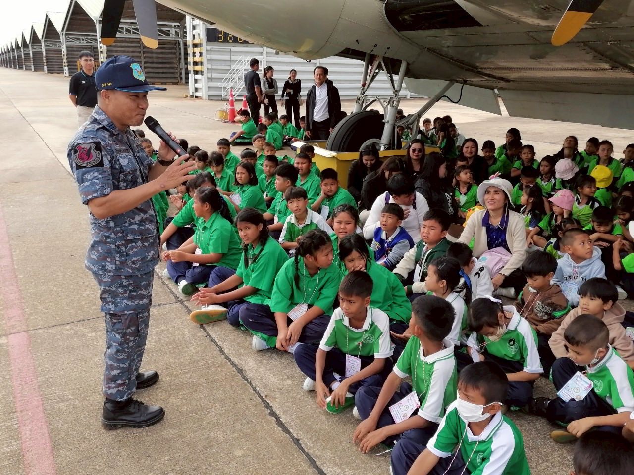 นาวาอากาศเอก พนม ดอนตุ้มไพร ผู้บังคับการกองบิน 46 มอบหมายให้ แผนกกิจการพลเรือน กองบังคับการ กองบิน 46 นักบินฝูงบิน 461 กองบิน 46 ต้อนรับคณะครู และนักเรียน โรงเรียนอนุบาล