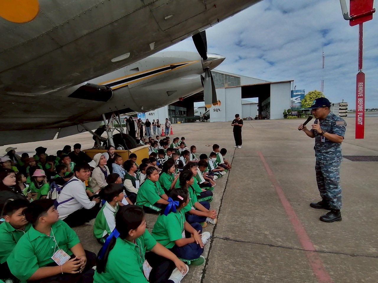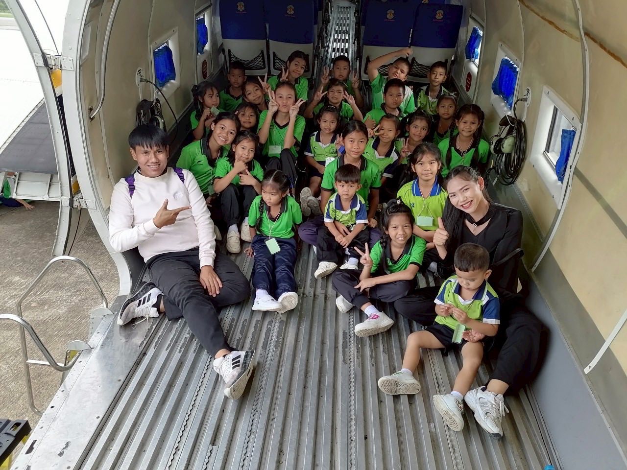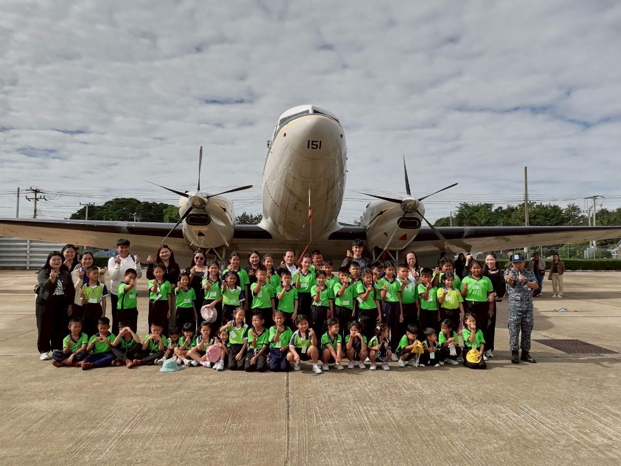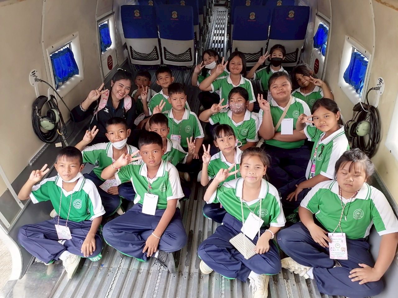 นาวาอากาศเอก พนม ดอนตุ้มไพร ผู้บังคับการกองบิน 46 มอบหมายให้ แผนกกิจการพลเรือน กองบังคับการ กองบิน 46 นักบินฝูงบิน 461 กองบิน 46 ต้อนรับคณะครู และนักเรียน โรงเรียนอนุบาล
