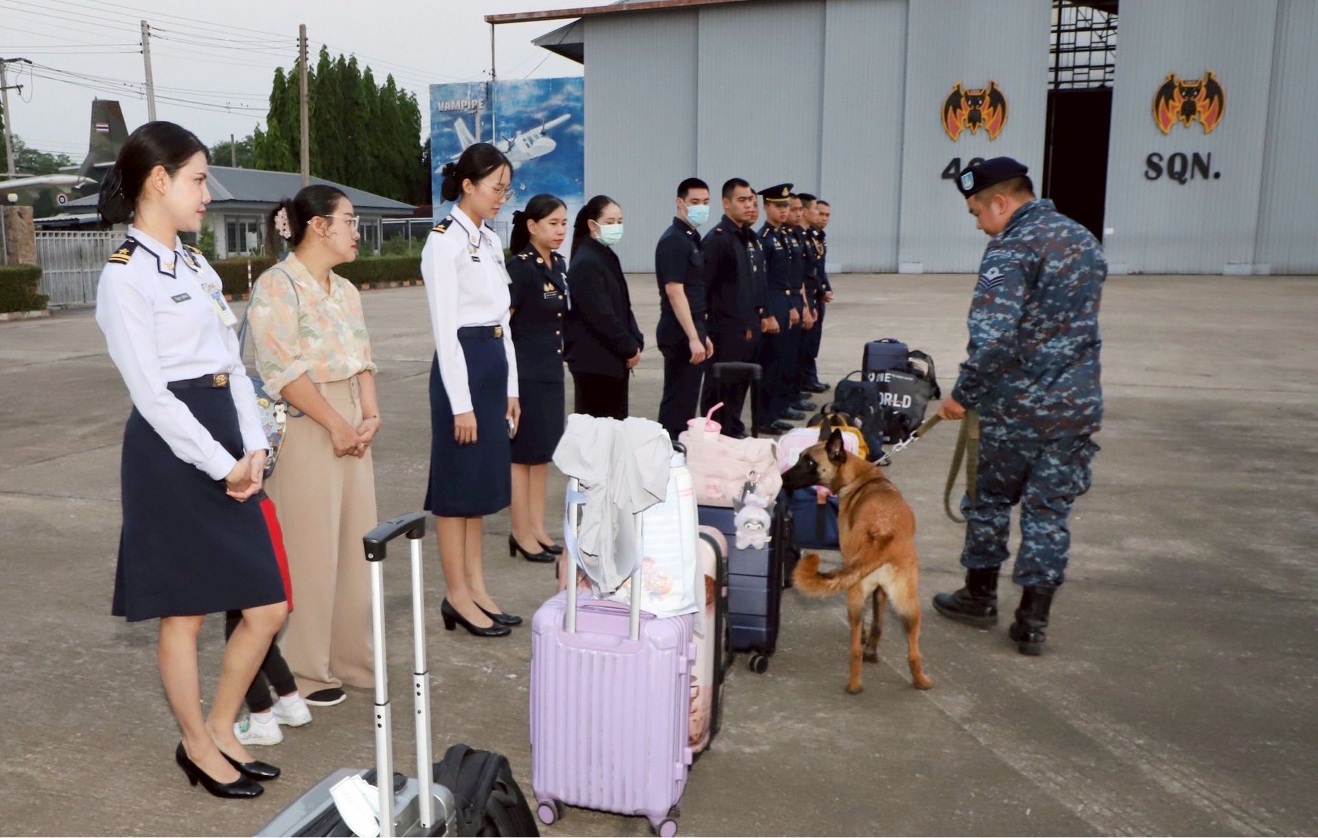 นาวาอากาศเอก พนม ดอนตุ้มไพร ผู้บังคับการกองบิน 46 มอบหมายให้ แผนกการข่าว กองบังคับการ กองบิน 46 ร่วมกับ หมวดสุนัขทหาร กองร้อยรักษาการณ์ กองพันทหารอากาศโยธิน กองบิน 46 ร่วมตรวจค้นสิ่งผิดกฎหมายในสัมภาระและตัวผู้โดยสารที่จะเดินทางกลับภายหลังเทศกาลสงกรานต์ ประจำปี 2569 โดยเครื่องบินเมล์ กองทัพอากาศ เพื่อป้องกันและปราบปรามการกระทำผิดกฎหมาย การลักลอบนำสิ่งของต้องห้ามรวมถึงการรักษาระเบียบวินัยของกำลังพลให้เป็นไปอย่างเคร่งครัด ณ โรงเก็บเครื่องบิน ฝูงบิน 461 กองบิน 46 เมื่อวันที่ 16 เมษายน พ.ศ.2569