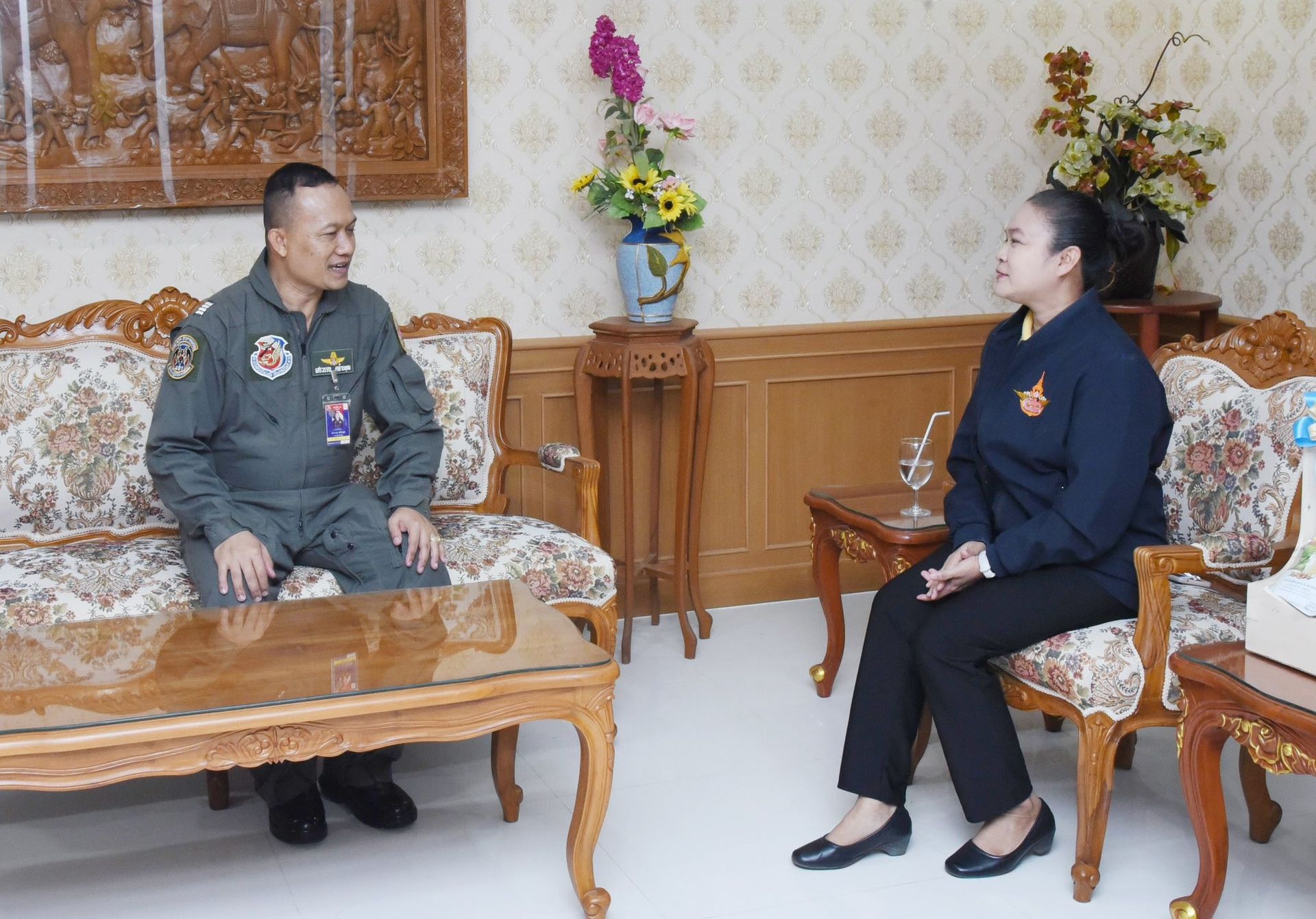 นาวาอากาศเอก เสรวรรถ คล้ายพุฒ ผู้บังคับการกองบิน 46 ให้การต้อนรับ นางสาวเครือวัลย์ แสงโพธิ์ ผู้อำนวยการศูนย์ปฏิบัติการฝนหลวงภาคเหนือตอนล่าง และคณะ เข้าพบเพื่อหารือและแลกเปลี่ยนข้อมูล ณ ห้องรับรอง กองบังคับการ กองบิน 46 อำเภอเมือง จังหวัดพิษณุโลก เมื่อวันที่ 29 กันยายน พ.ศ.2568