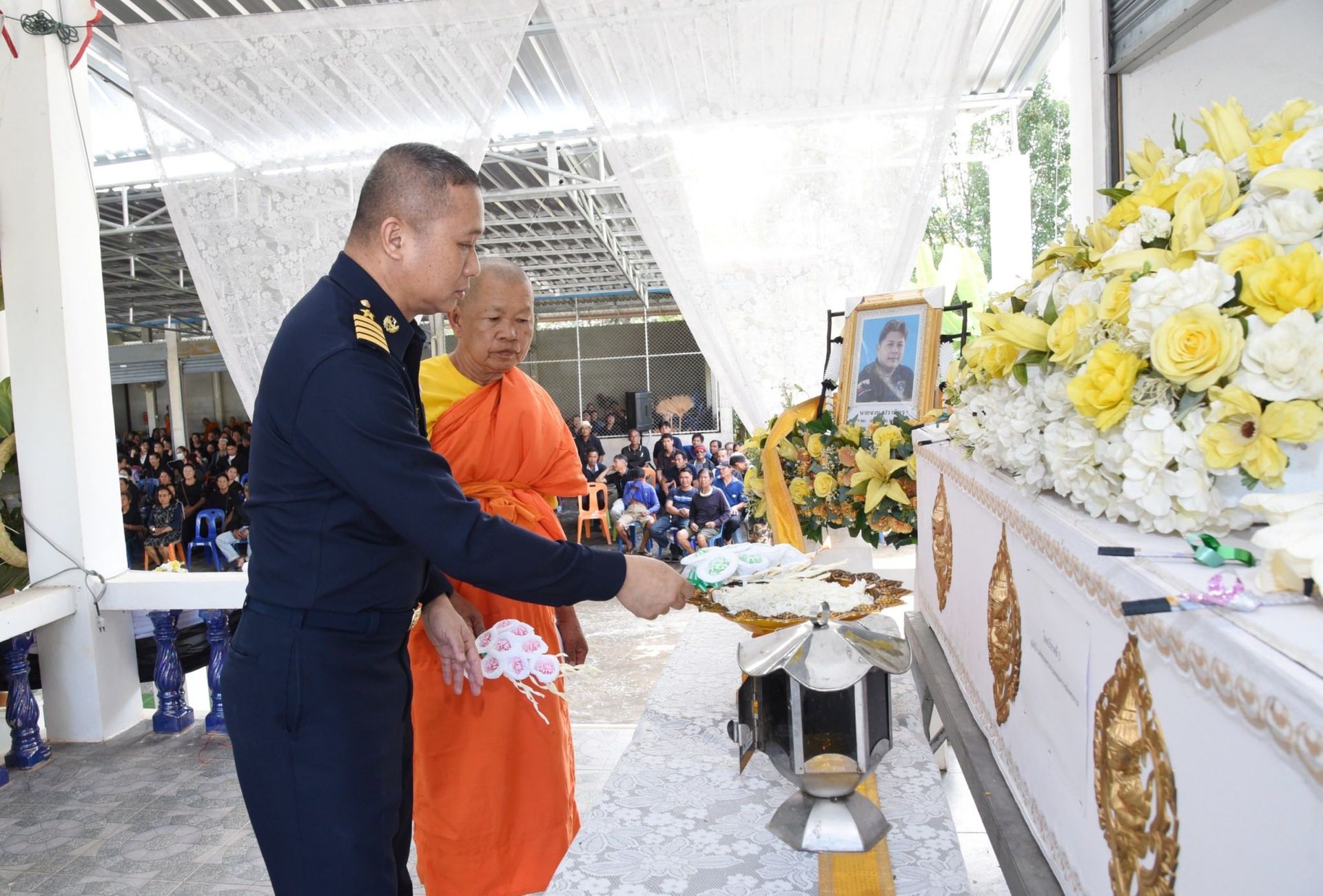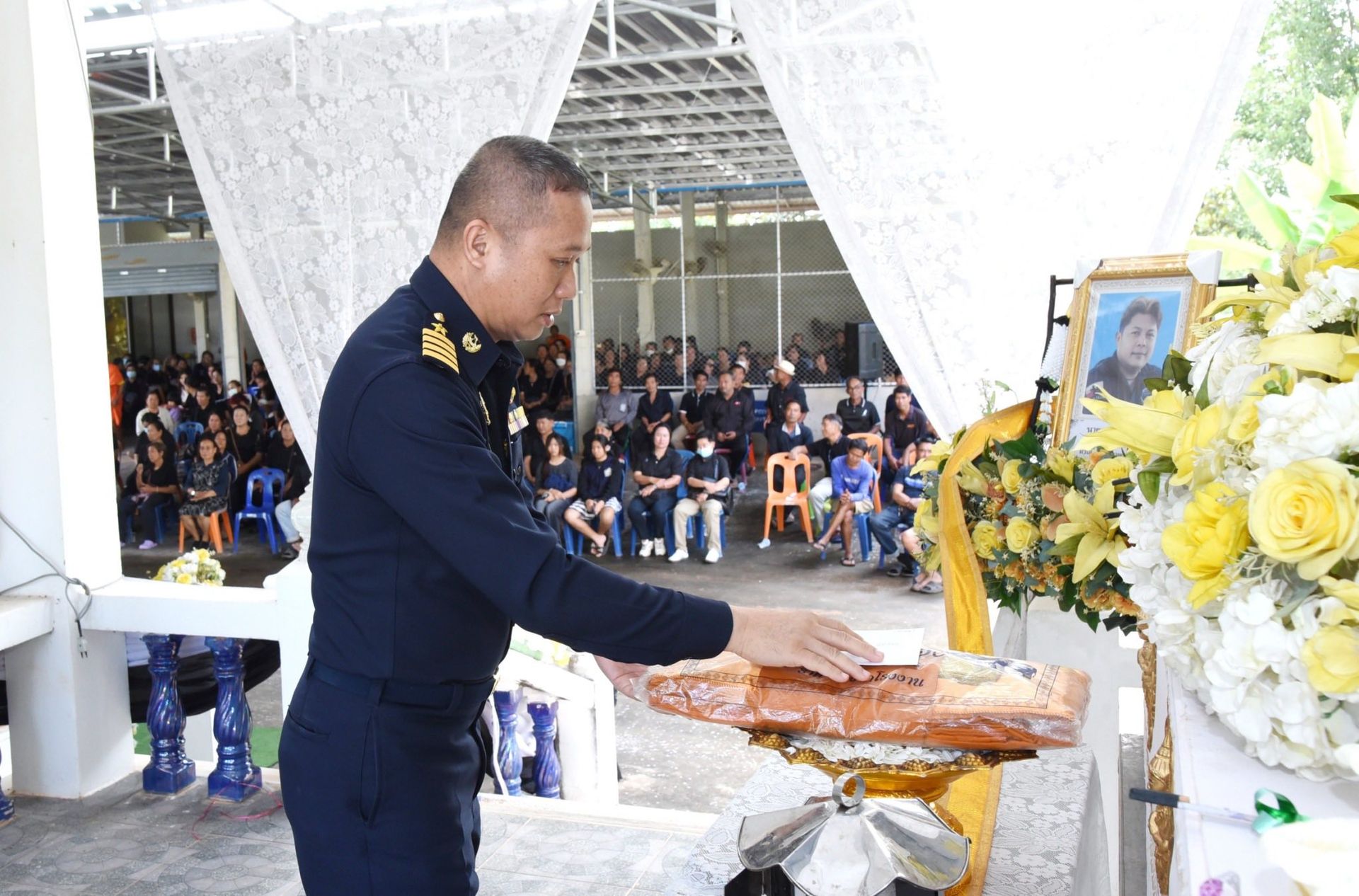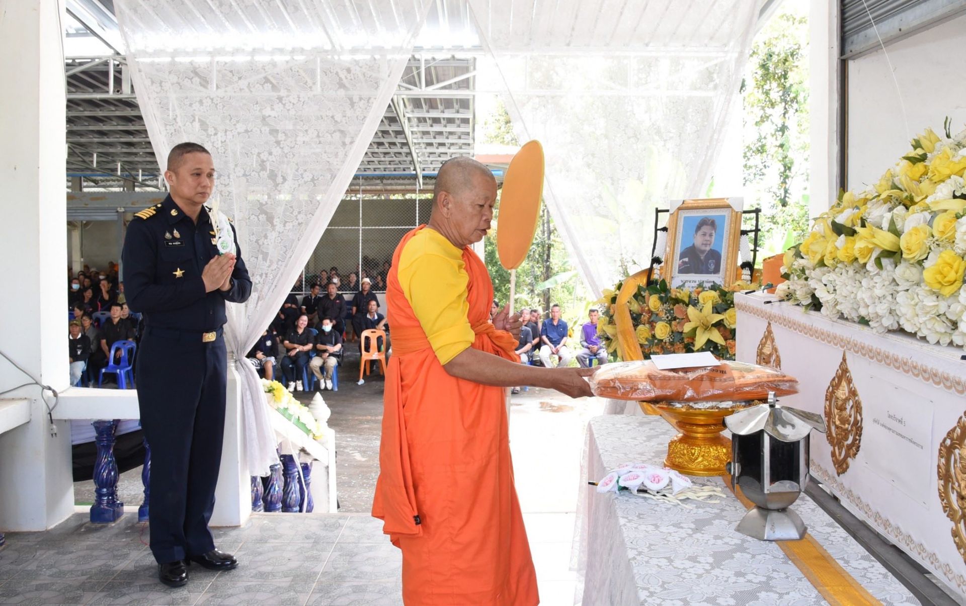 นาวาอากาศเอก พนม ดอนตุ้มไพร ผู้บังคับการกองบิน 46 เป็นประธานในพิธีฌาปนกิจศพบิดาของ พลทหาร อภินันท์ ปรามิตร ทหารกองประจำการรุ่นปี 2568 ผลัดที่ 2 ซึ่งถึงแก่กรรมลง เมื่อวันที่ 10 ธันวาคม พ.ศ.2568 ที่ผ่านมานั้น