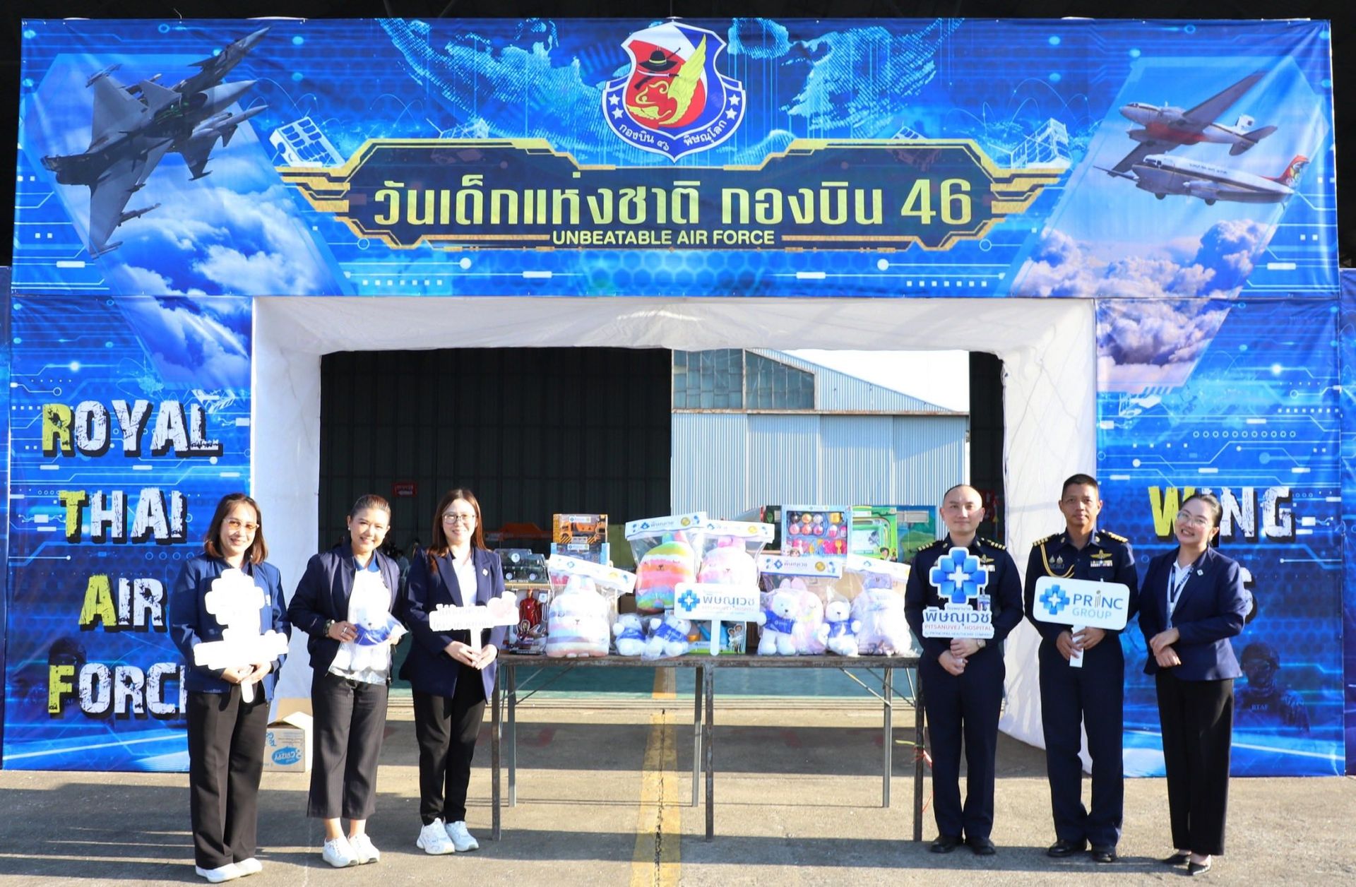 นาวาอากาศเอก พนม ดอนตุ้มไพร ผู้บังคับการกองบิน 46 พร้อมด้วย รองผู้บังคับการกองบิน 46 และ เสนาธิการกองบิน 46 ลงพื้นที่ ตรวจความเรียบร้อยของบูธหน่วยงานต่างๆที่มาจัดเตรียมความพร้อมสำหรับร่วมกิจกรรมวันเด็กแห่งชาติ ประจำปี 2569 ณ กองบิน 46 พร้อมทั้งรับมอบของขวัญจากผู้ใหญ่ใจดีเพื่อนำมาเป็นรางวัลและของขวัญให้เด็กๆ ที่มาร่วมงาน ณ แผนกช่างอากาศ กองเทคนิค กองบิน 46 เมื่อวันที่ 9 มกราคม พ.ศ.2569
