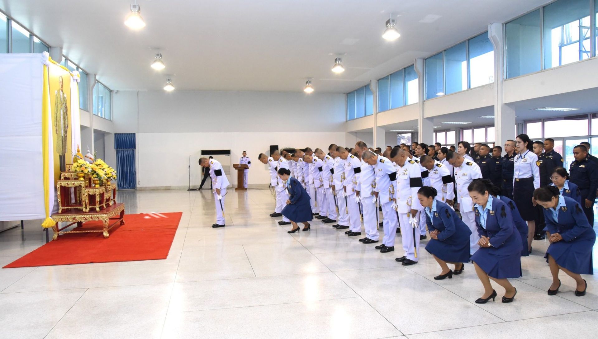 นาวาอากาศเอก พนม ดอนตุ้มไพร ผู้บังคับการกองบิน 46 พร้อมด้วย คุณ ศิริวรรณ ดอนตุ้มไพร ประธานชมรมคู่สมรสทหารอากาศ กองบิน 46, รองผู้บังคับการกองบิน 46, เสนาธิการกองบิน 46, หัวหน้าหน่วยขึ้นตรงกองบิน 46 และสมาชิกชมรมคู่สมรสทหารอากาศ กองบิน 46 ประกอบพิธีเนื่องในวันคล้ายวันพระบรมราชสมภพ พระบาทสมเด็จพระบรมชนกาธิเบศร มหาภูมิพลอดุลยเดชมหาราช บรมนาถบพิตร วันชาติ และวันพ่อแห่งชาติ 5 ธันวาคม 2568