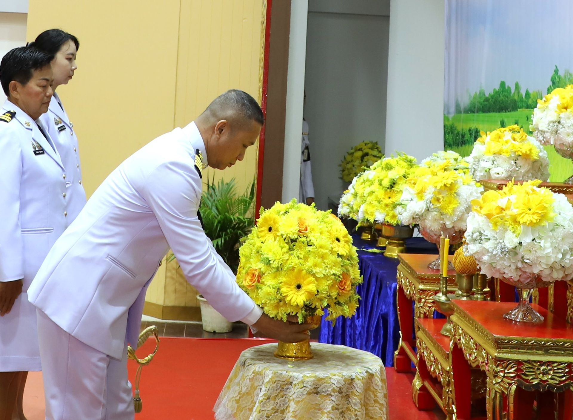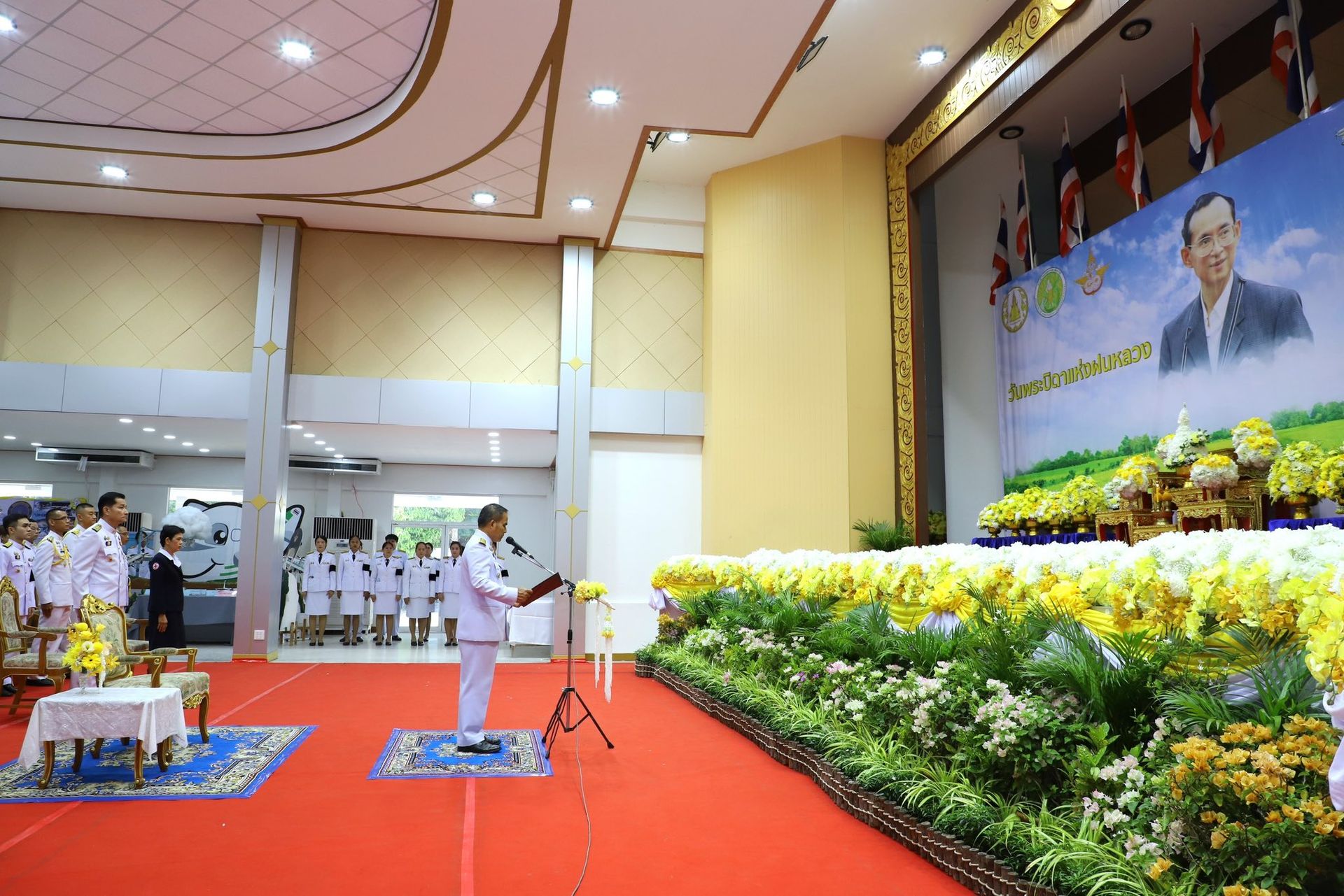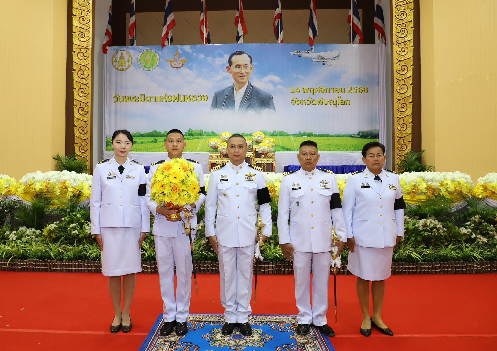 นาวาอากาศเอก พนม ดอนตุ้มไพร ผู้บังคับการกองบิน 46 พร้อมด้วยข้าราชการ กองบิน 46 ร่วมพิธีวางพานพุ่มดอกไม้สดถวายราชสักการะเนื่องในวันพระบิดาแห่งฝนหลวง ประจำปี 2568 พระบาทสมเด็จพระบรมชนกาธิเบศร มหาภูมิพลอดุลยเดชมหาราช บรมนาถบพิตร ทรงมีพระราชดำริโครงการฝนหลวงขึ้นเมื่อวันที่ 14 พฤศจิกายน พ.ศ.2498 ด้วยทรงห่วงใยในความทุกข์ยากของพสกนิกรในท้องถิ่นทุรกันดาร ซึ่งประสบปัญหาขาดแคลนน้ำเพื่ออุปโภคบริโภคและใช้ในการเกษตรกรรม เพื่อบำบัดทุกข์บำรุงสุขของราษฎรทั่วทุกภาคของประเทศ ให้มีความเป็นอยู่ที่ดีขึ้น