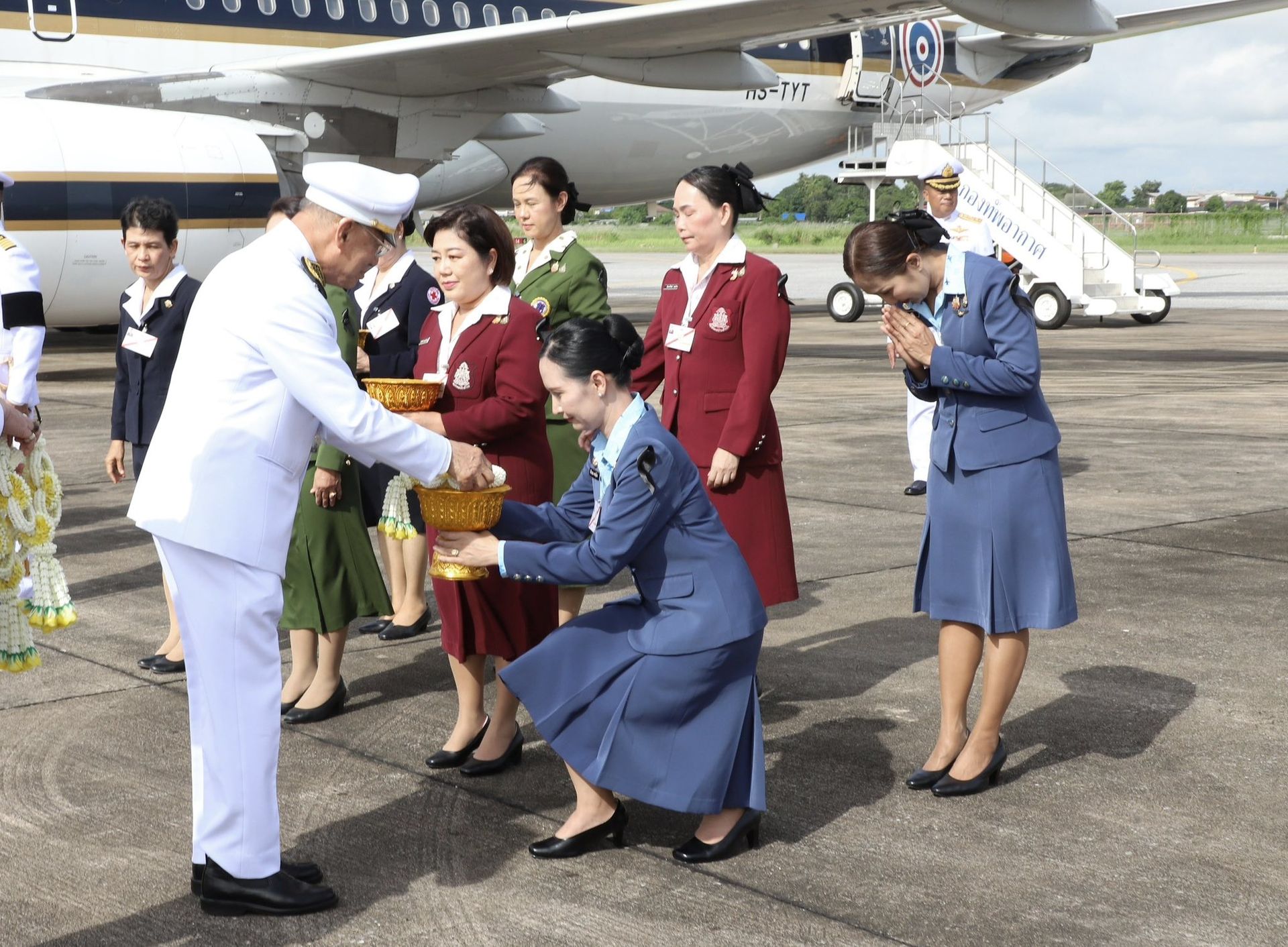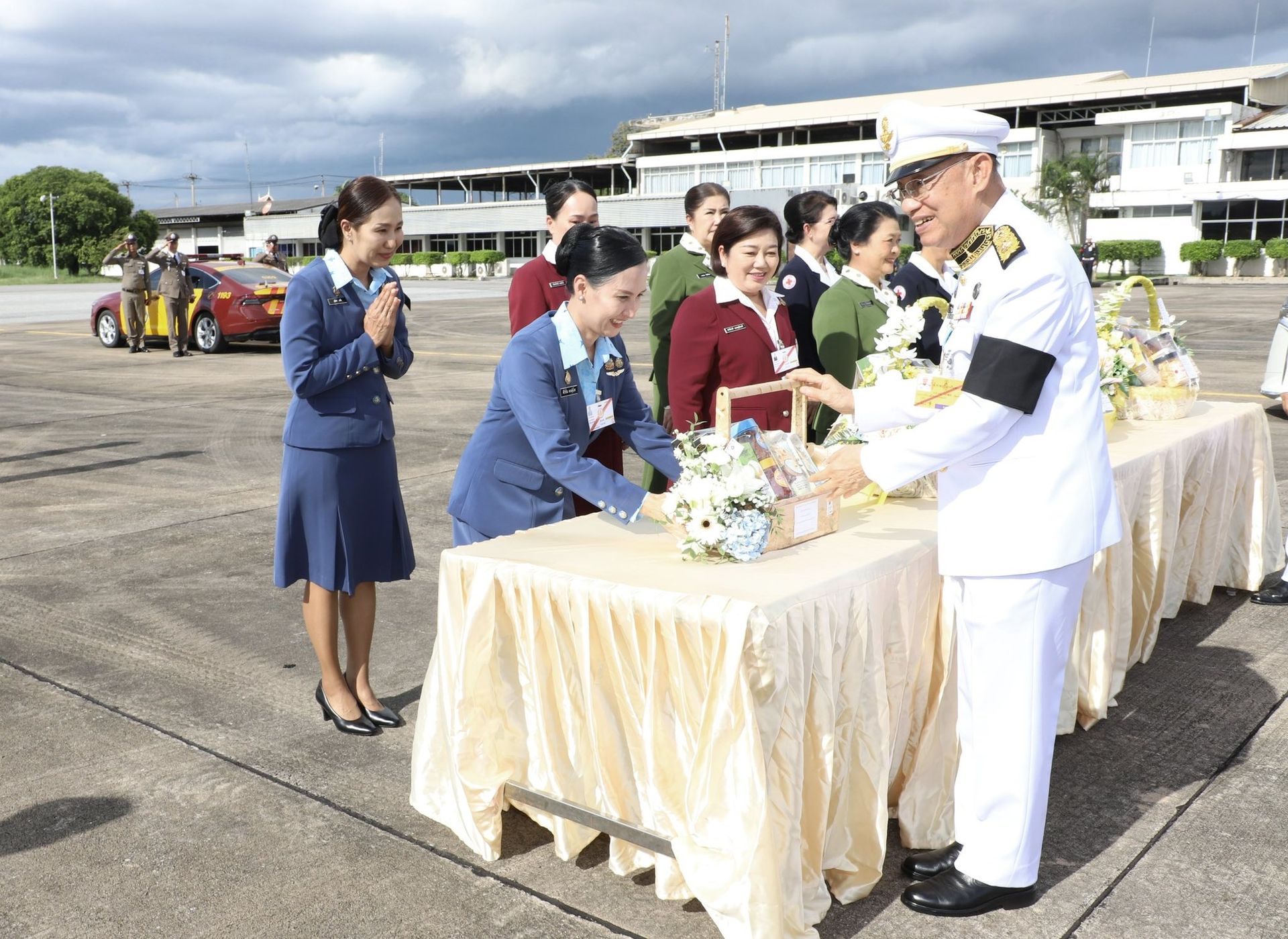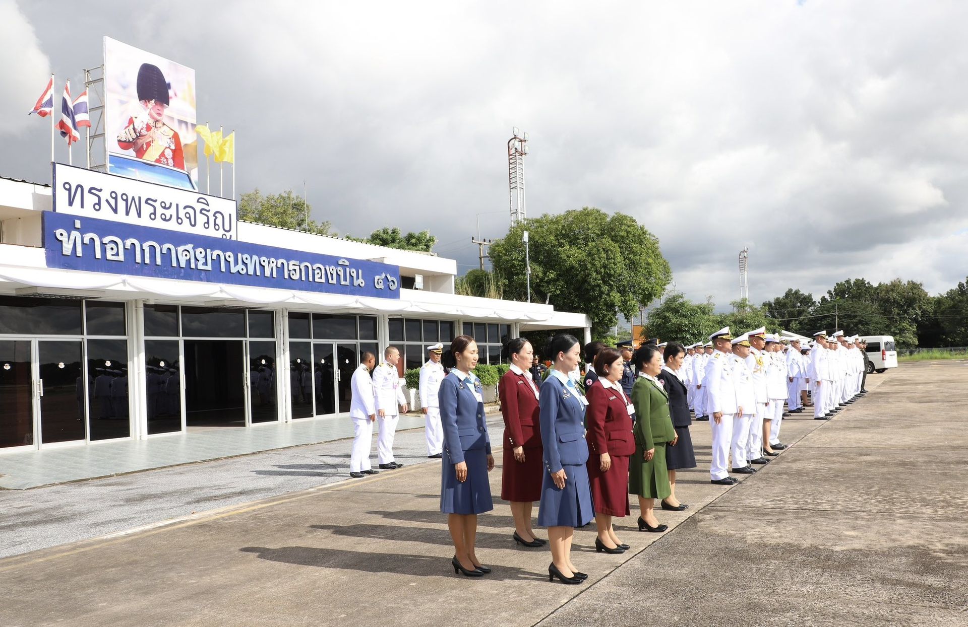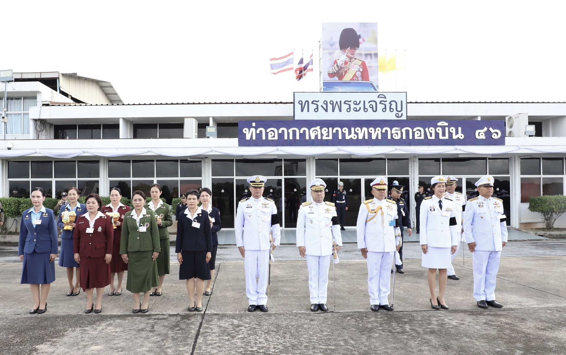 ในการนี้ นาวาอากาศเอก พนม ดอนตุ้มไพร ผู้บังคับการกองบิน 46 พร้อมด้วย คุณ ศิริวรรณ ดอนตุ้มไพร ประธานชมรมคู่สมรสทหารอากาศ กองบิน 46 และข้าราชการกองบิน 46 ให้การต้อนรับและส่งผู้แทนพระองค์ ณ ท่าอากาศยานทหารกองบิน 46 อำเภอเมือง จังหวัดพิษณุโลก เมื่อวันที่ 3 พฤศจิกายน พ.ศ.2568