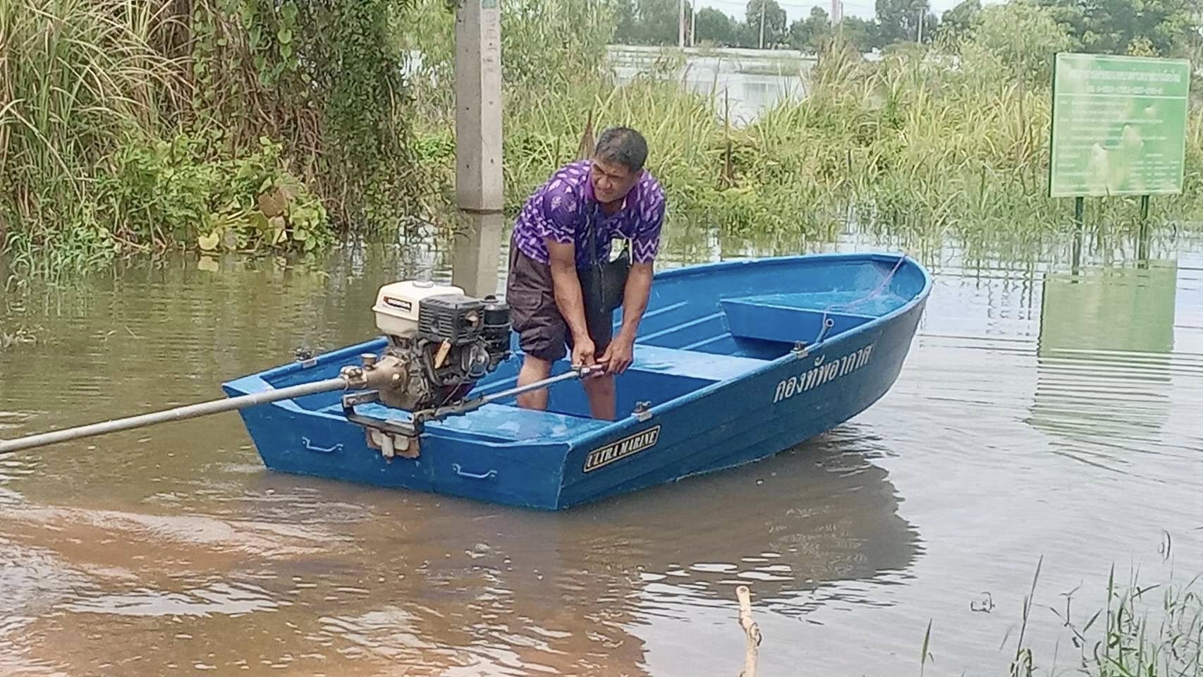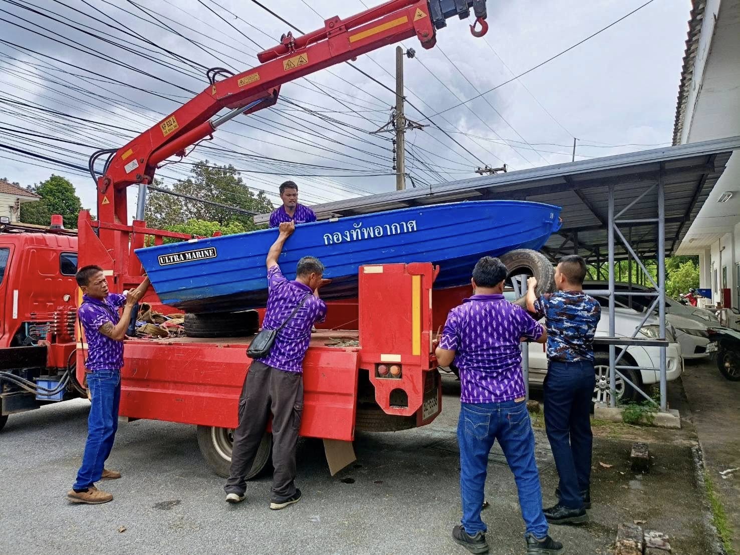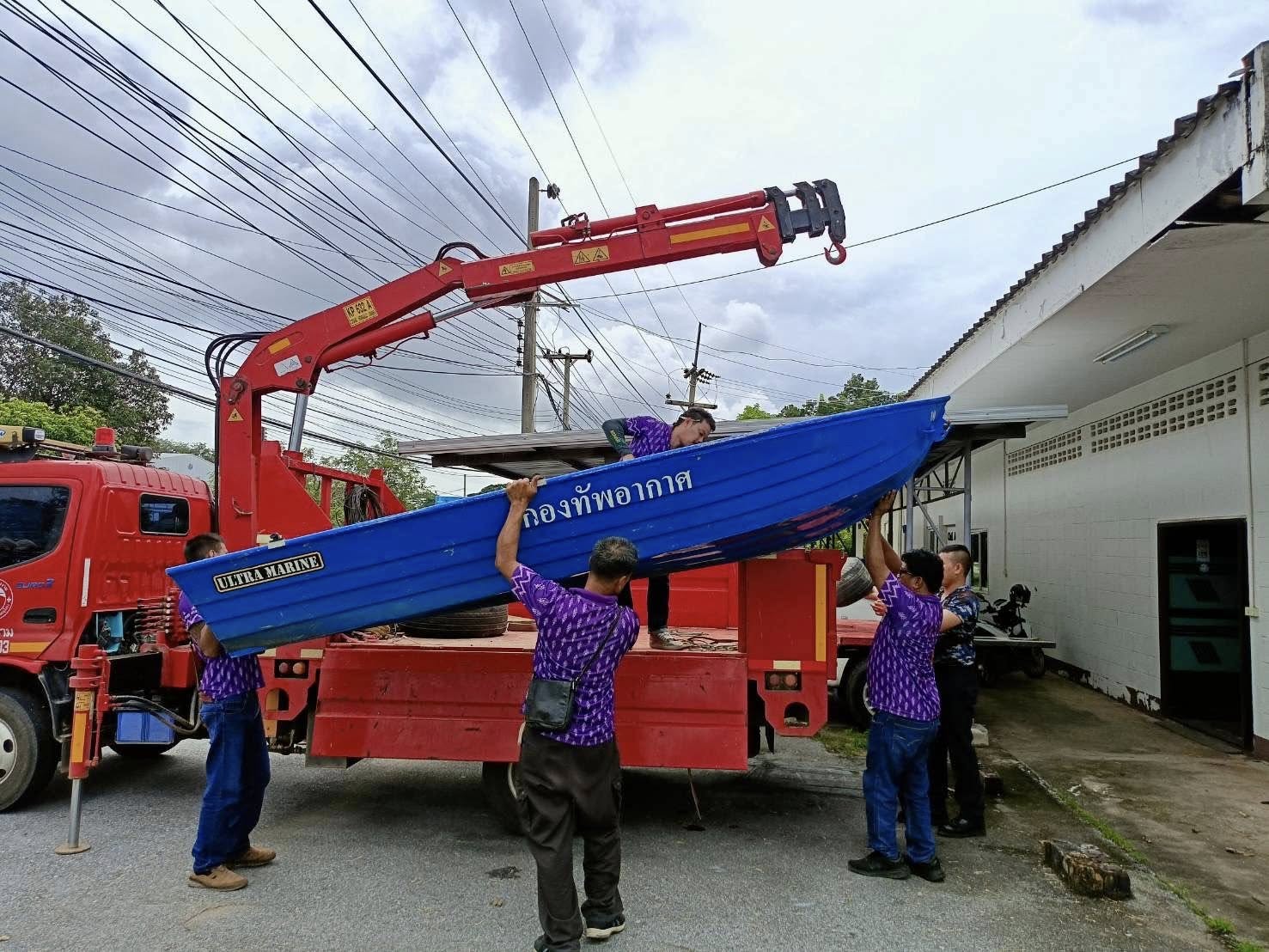 นาวาอากาศเอก เสรวรรถ คล้ายพุฒ ผู้บังคับการกองบิน 46 ในฐานะผู้อำนวยการศูนย์บรรเทาสาธารณภัย กองบิน 46 มอบหมายให้ นาวาอากาศโท ภาณุวัฒน์ ระวิงทอง หัวหน้าแผนกกิจการพลเรือน กองบังคับการ กองบิน 46 นำเรืออะลูมิเนียมท้องวีขนาด 12 ฟุต จำนวน 1 ลำ พร้อมติดตั้งเครื่องยนต์ ส่งมอบให้องค์การบริหารส่วนตำบลท่านางงาม ตำบลท่านางงาม อำเภอบางระกำ จังหวัดพิษณุโลก เพื่อบรรเทาความเดือดร้อนให้กับพี่น้องประชาชน ที่ไม่สามารถสัญจรเข้าออกบ้านเรือนได้ตามปกติเนื่องจากถนนถูกน้ำท่วมสูง เกินกว่า 2 เมตร ในพื้นที่ ตำบลท่านางงาม อำเภอบางระกำ จังหวัดพิษณุโลก เมื่อวันที่ 26 กันยายน พ.ศ.2568