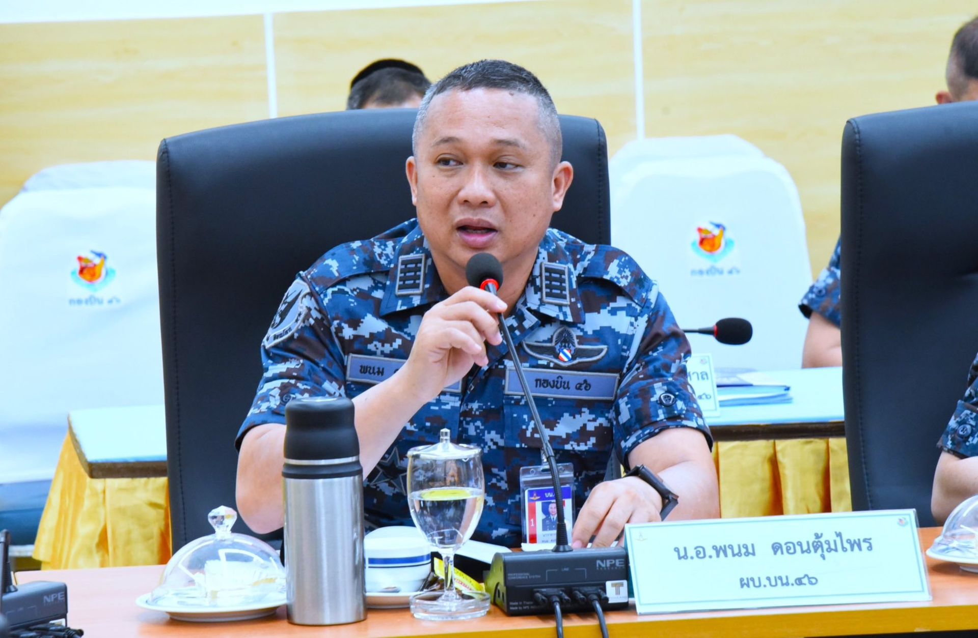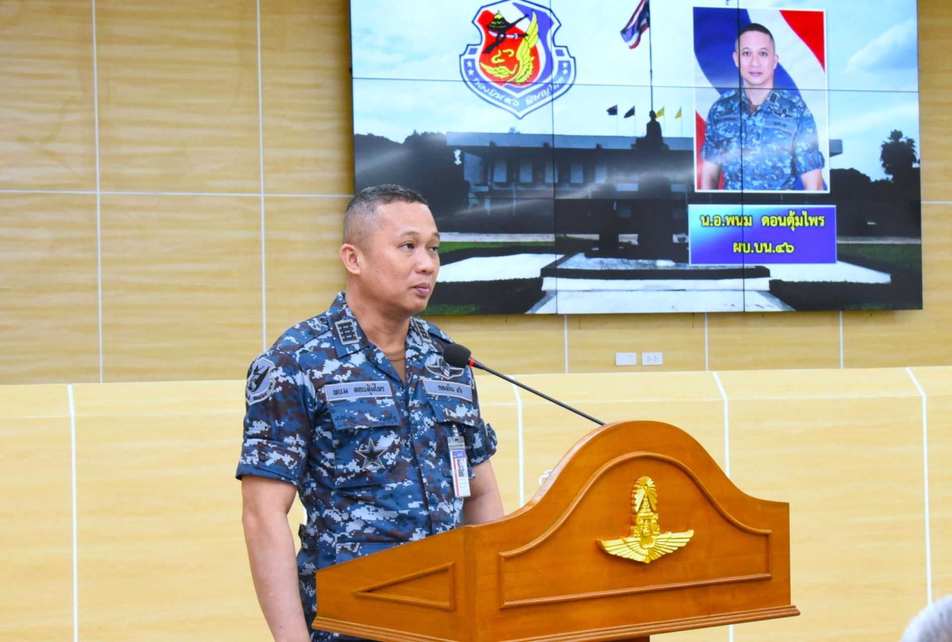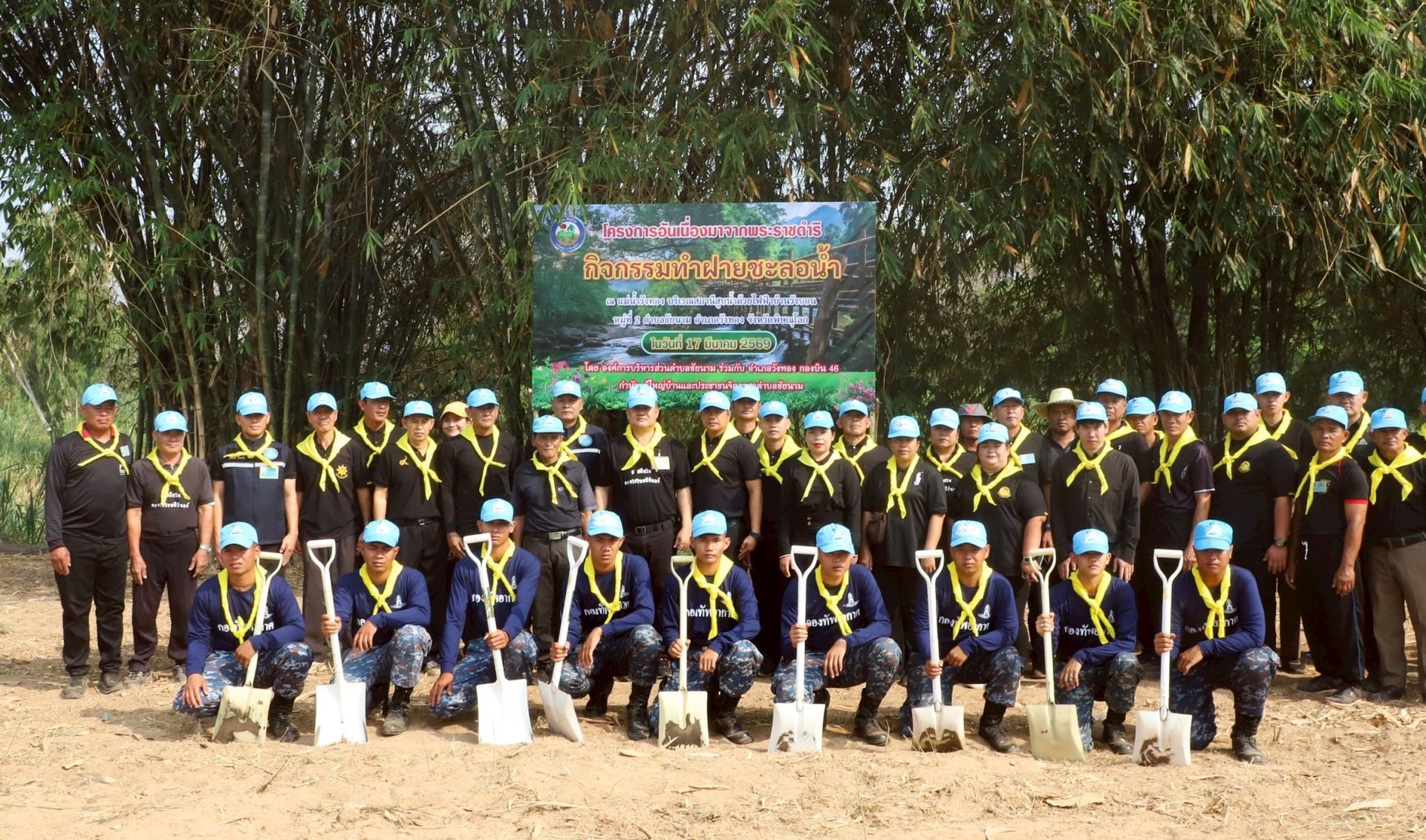 นาวาอากาศเอก พนม ดอนตุ้มไพร ผู้บังคับการกองบิน 46 มอบหมายให้ แผนกกิจการพลเรือน กองบังคับการ กองบิน 46 พร้อมด้วยเจ้าหน้าที่ศูนย์บรรเทาสาธารณภัย กองบิน 46 และทหารกองประจำการ กองพันทหารอากาศโยธิน กองบิน 46 บูรณาการความร่วมมือกับองค์การบริหารส่วนตำบลชัยนาม และพี่น้องประชาชน หมู่ที่ 2 ตำบลชัยนาม อำเภอวังทอง จังหวัดพิษณุโลก ร่วมดำเนินโครงการอันเนื่องมาจากพระราชดำริ จัดทำฝายชะลอน้ำ เพื่อเพิ่มประสิทธิภาพในการบริหารจัดการทรัพยากรน้ำในพื้นที่