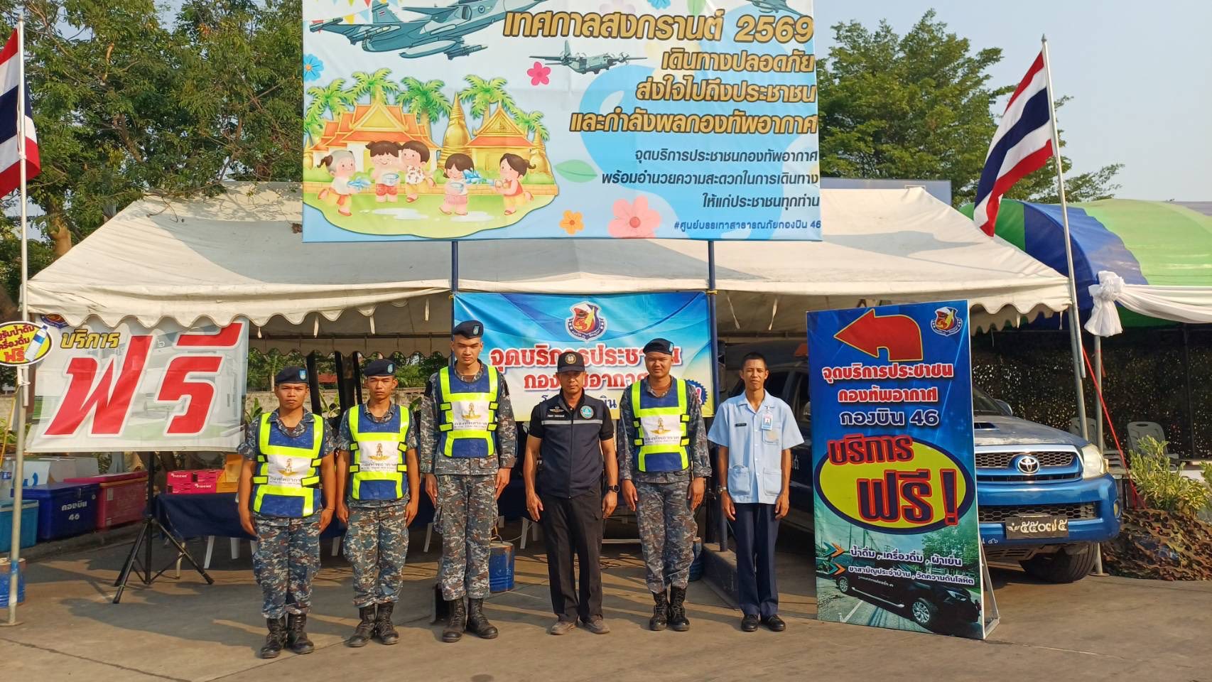 เมื่อวันพุธที่ 15 เมษายน พ.ศ.2569 นาวาอากาศเอก พนม ดอนตุ้มไพร ผู้บังคับการกองบิน 46 มอบหมายให้ ศูนย์บรรเทาสาธารณภัย กองบิน 46 จัดกำลังเจ้าหน้าที่ตั้งจุดบริการประชาชนในช่วงเทศกาลสงกรานต์ ประจำปี 2569 เพื่ออำนวยความสะดวกและดูแลความปลอดภัยให้แก่ผู้ใช้รถใช้ถนน ตามนโยบายของรัฐบาล และผู้บัญชาการทหารอากาศ ในการลดอุบัติเหตุทางถนนช่วงเทศกาลสำคัญ เพื่อประชาสัมพันธ์และรณรงค์ให้ประชาชนตระหนักถึงการขับขี่อย่างปลอดภัย มีวินัยจราจร และปฏิบัติตามกฎหมายอย่างเคร่งครัด พร้อมทั้งช่วยป้องกันและลดการเกิดอุบัติเหตุบนท้องถนนในช่วงที่มีการเดินทางหนาแน่น