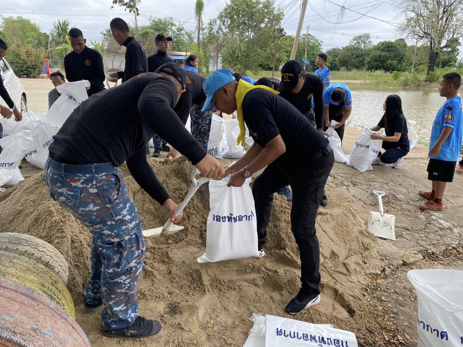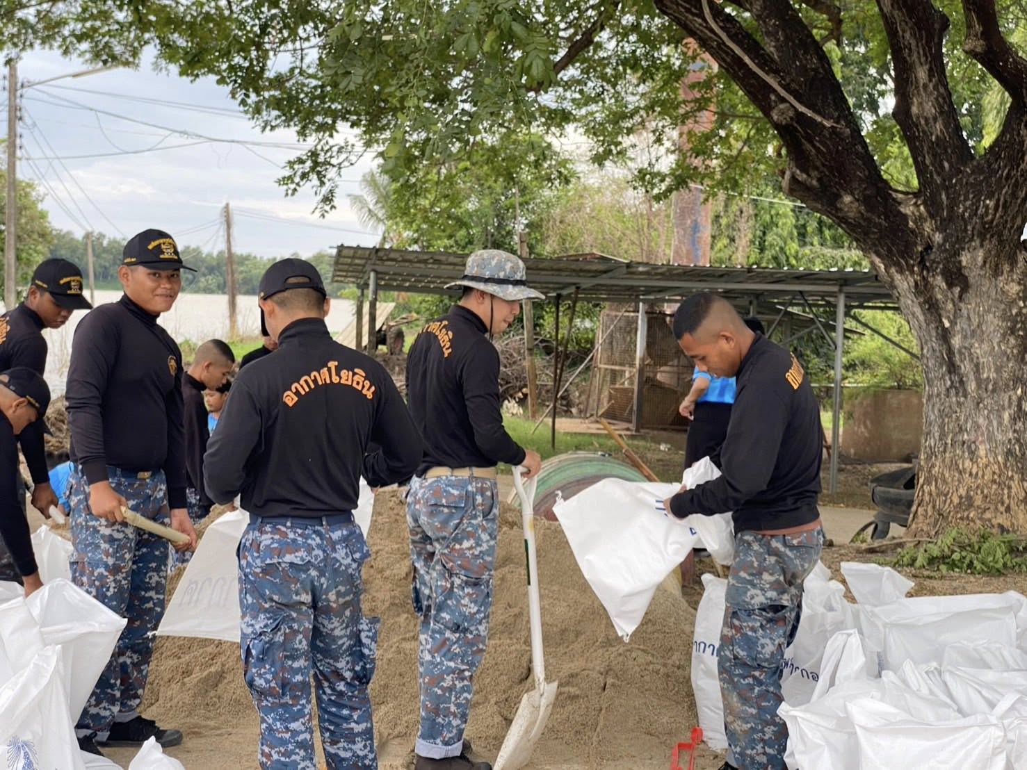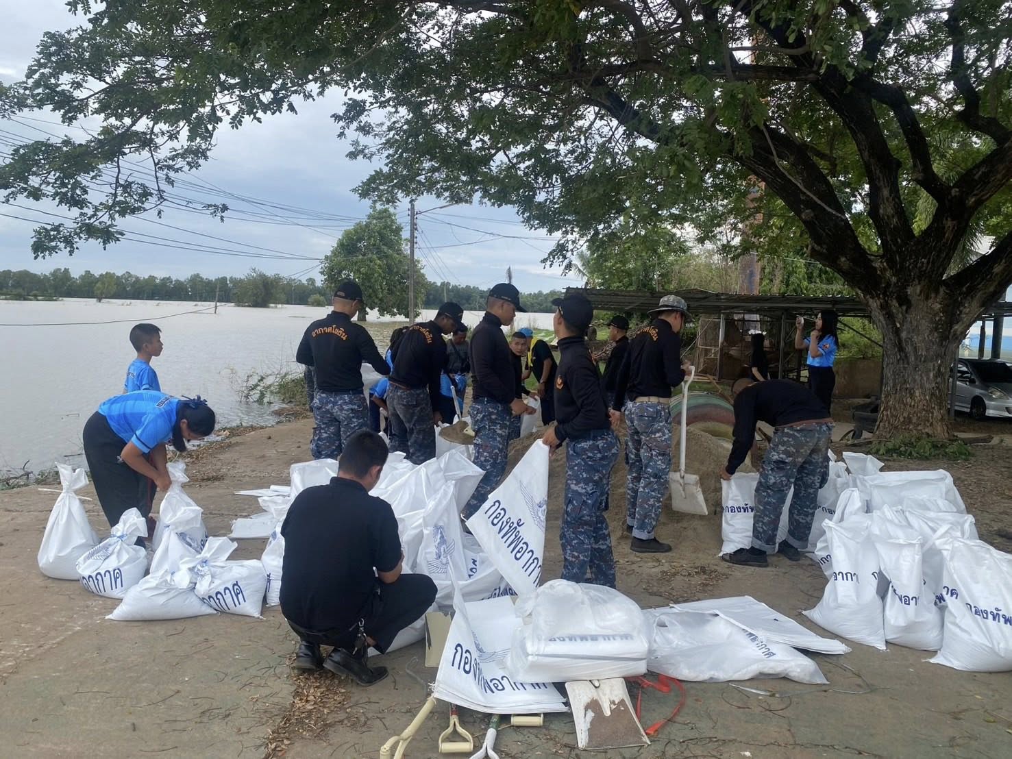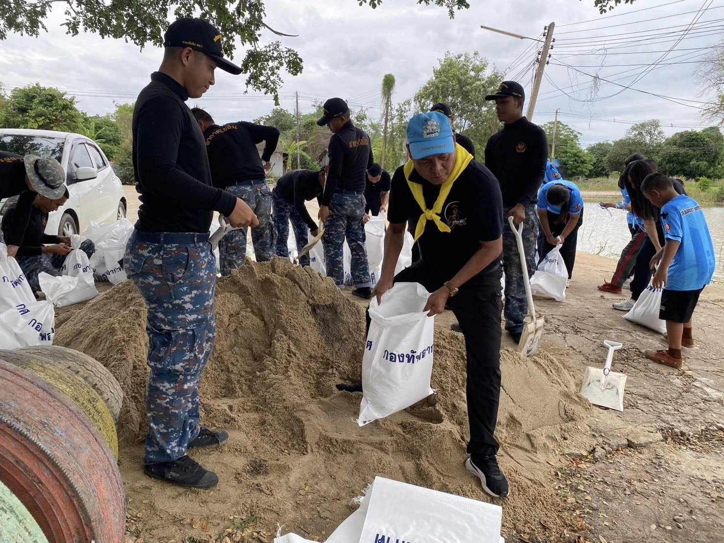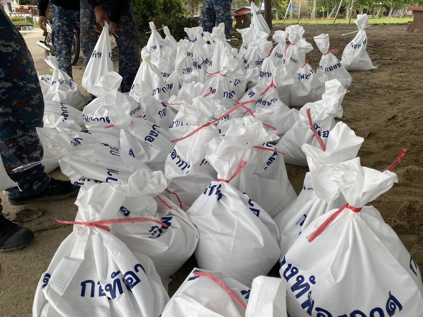 ศูนย์บรรเทาสาธารณภัย กองบิน 46 เร่งกรอกกระสอบทราย เพื่อสร้างแนวคันกันน้ำป้องกันน้ำท่วม ในพื้นที่ อำเภอบางระกำ จังหวัดพิษณุโลก