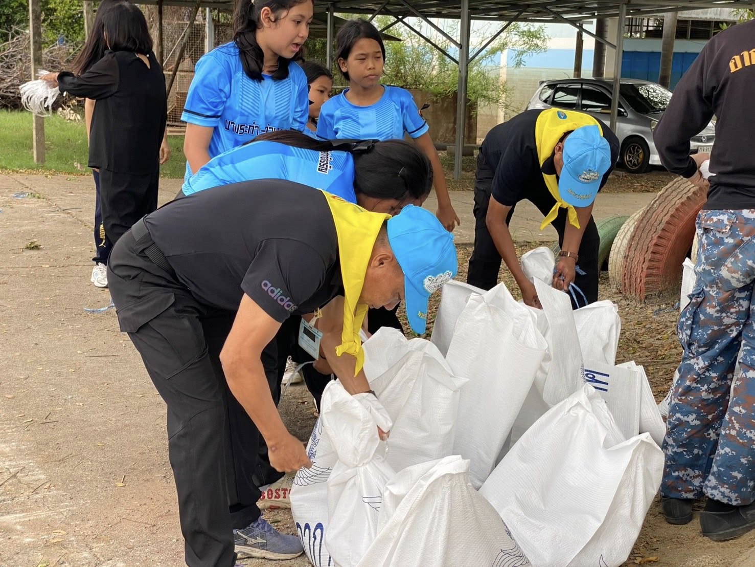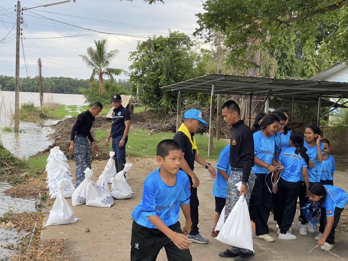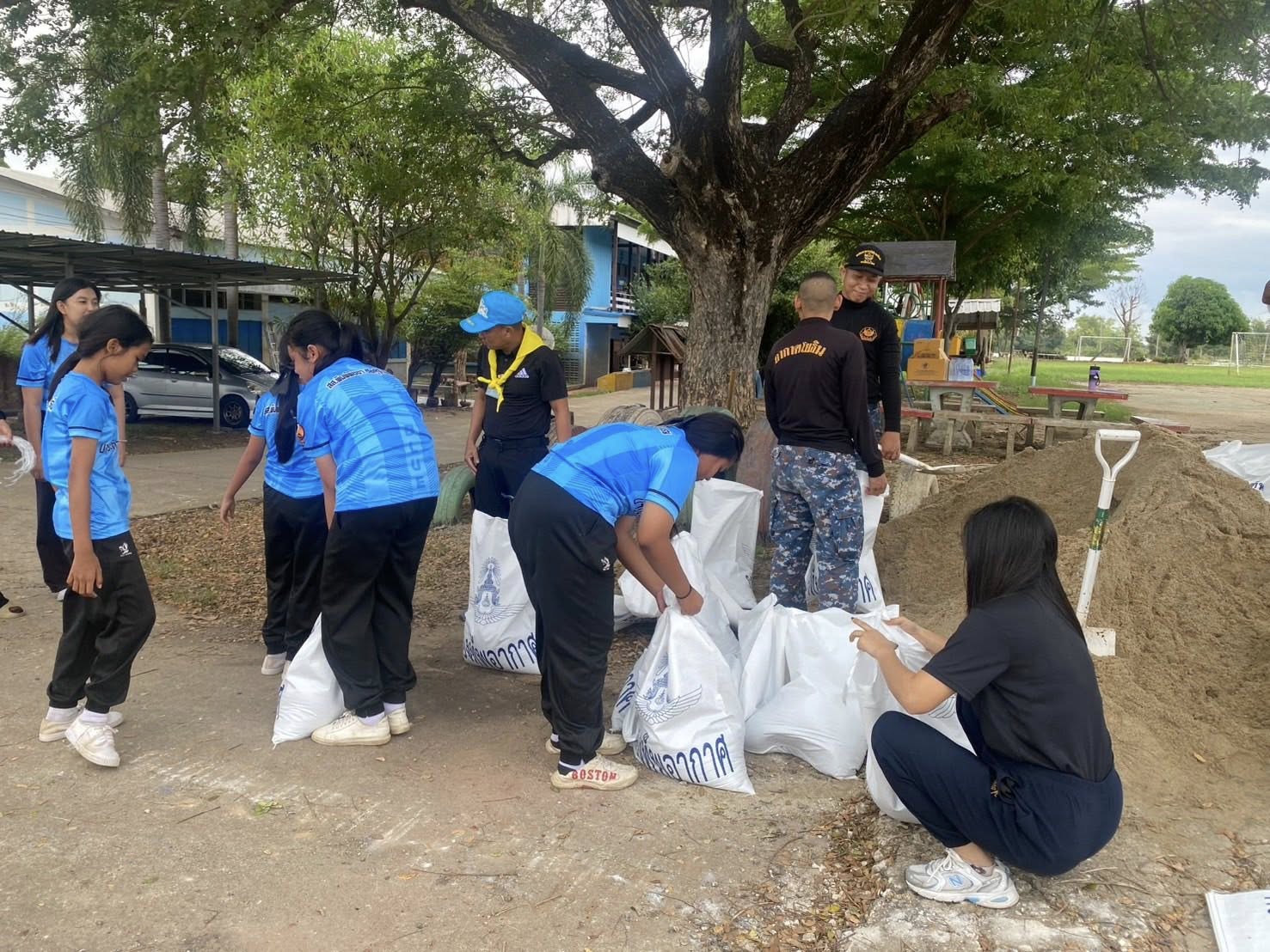 นาวาอากาศเอก พนม ดอนตุ้มไพร ผู้บังคับการกองบิน 46 ในฐานะ ผู้อำนวยการศูนย์บรรเทาสาธารณภัย กองบิน 46 มอบหมายให้ เจ้าหน้าที่ศูนย์บรรเทาสาธารณภัย กองบิน 46 เร่งบรรจุกระสอบทราย จำนวน 200 ใบ ร่วมกับพี่น้องประชาชนในพื้นที่ และน้อง ๆ นักเรียนโรงเรียนบ้านท่านางงาม ตำบลท่านางงาม อำเภอบางระกำ จังหวัดพิษณุโลก เพื่อสร้างแนวคันกันน้ำ ป้องกันน้ำท่วม เป็นการเตรียมรับมวลน้ำที่กำลังเพิ่มสูงขึ้น และได้นำชุดยาสามัญประจำบ้าน ผงโรยเท้าป้องกันเชื้อรา น้ำกัดเท้า มอบให้พี่น้องประชาชน ณ โรงเรียนบ้านท่านางงาม ตำบลท่านางงาม อำเภอบางระกำ จังหวัดพิษณุโลก เมื่อวันที่ 18 พฤศจิกายน พ.ศ.2568