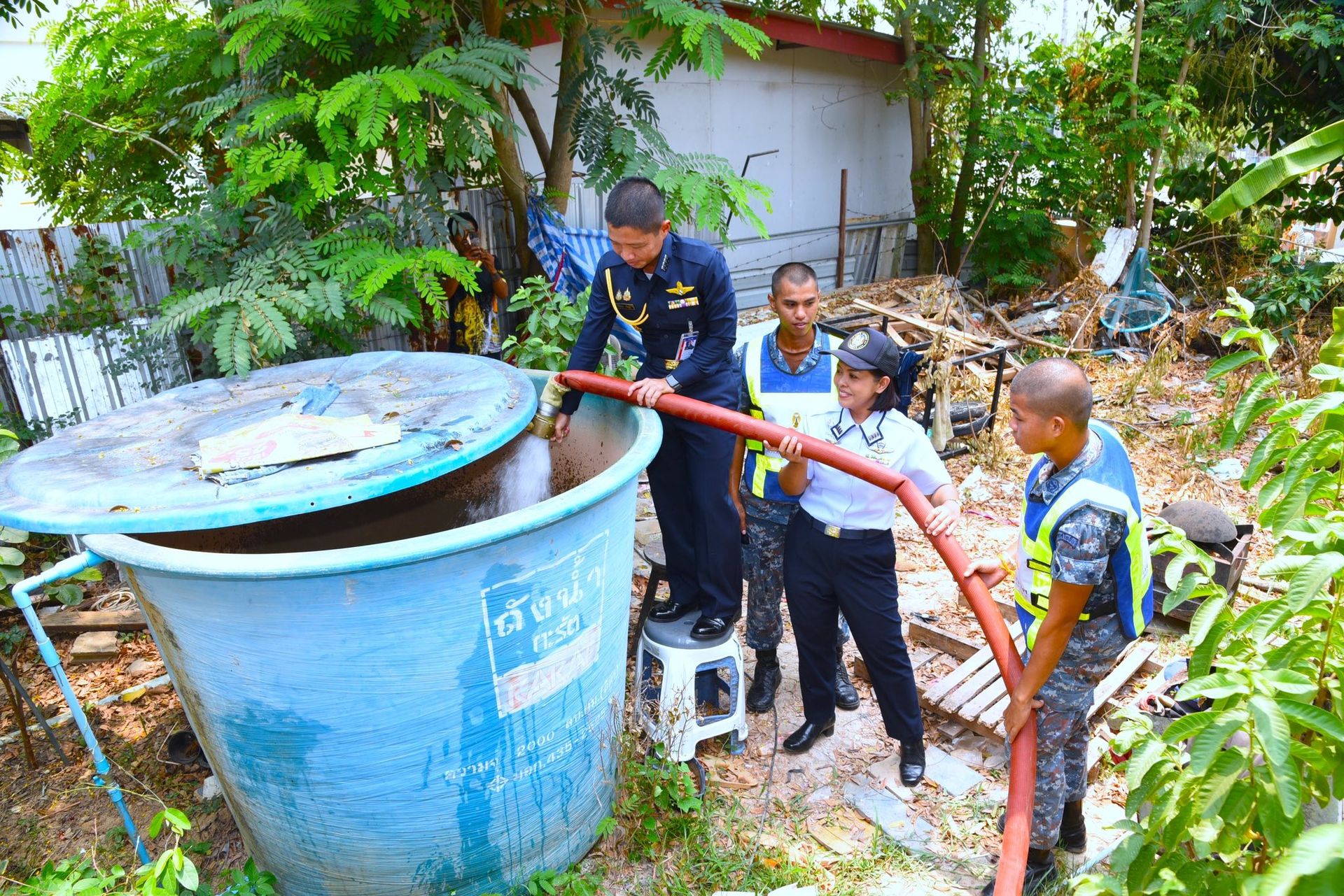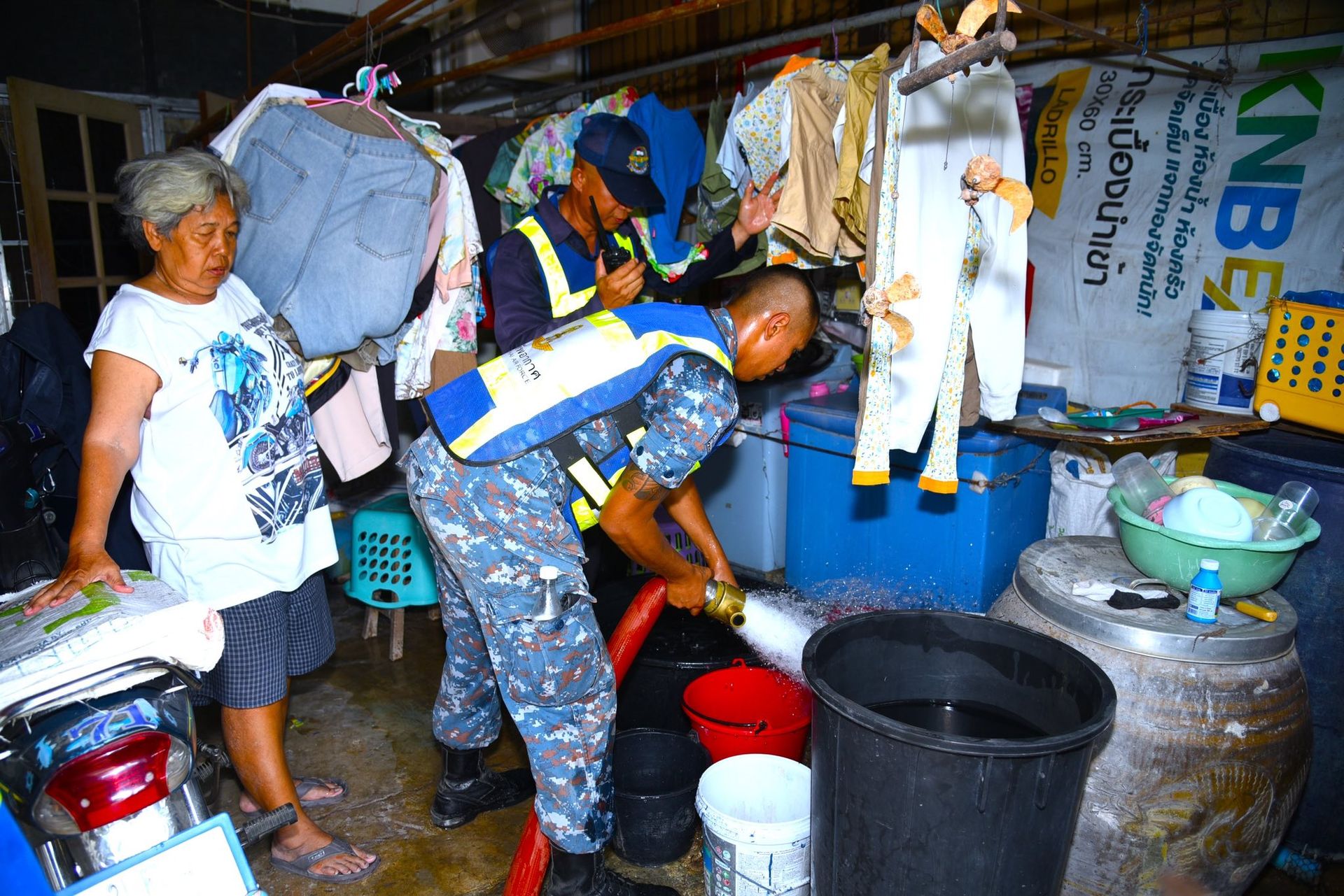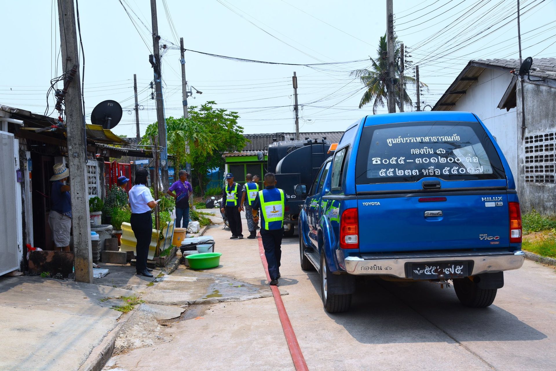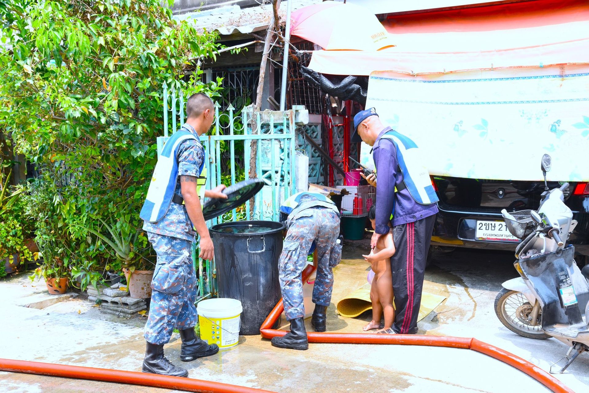 นาวาอากาศเอก ธีรพงษ์ เจริญยิ่ง เสนาธิการกองบิน 46 ในฐานะรองผู้อำนวยการศูนย์บรรเทาสาธารณภัย กองบิน 46 พร้อมด้วยกำลังพลและเจ้าหน้าที่ศูนย์บรรเทาสาธารณภัย กองบิน 46 นำรถบรรทุกน้ำสะอาด จำนวน 6,000 ลิตร ลงพื้นที่แจกจ่ายน้ำให้แก่พี่น้องประชาชน เพื่อใช้ในการอุปโภคบริโภค และบรรเทาความเดือดร้อนในเบื้องต้น