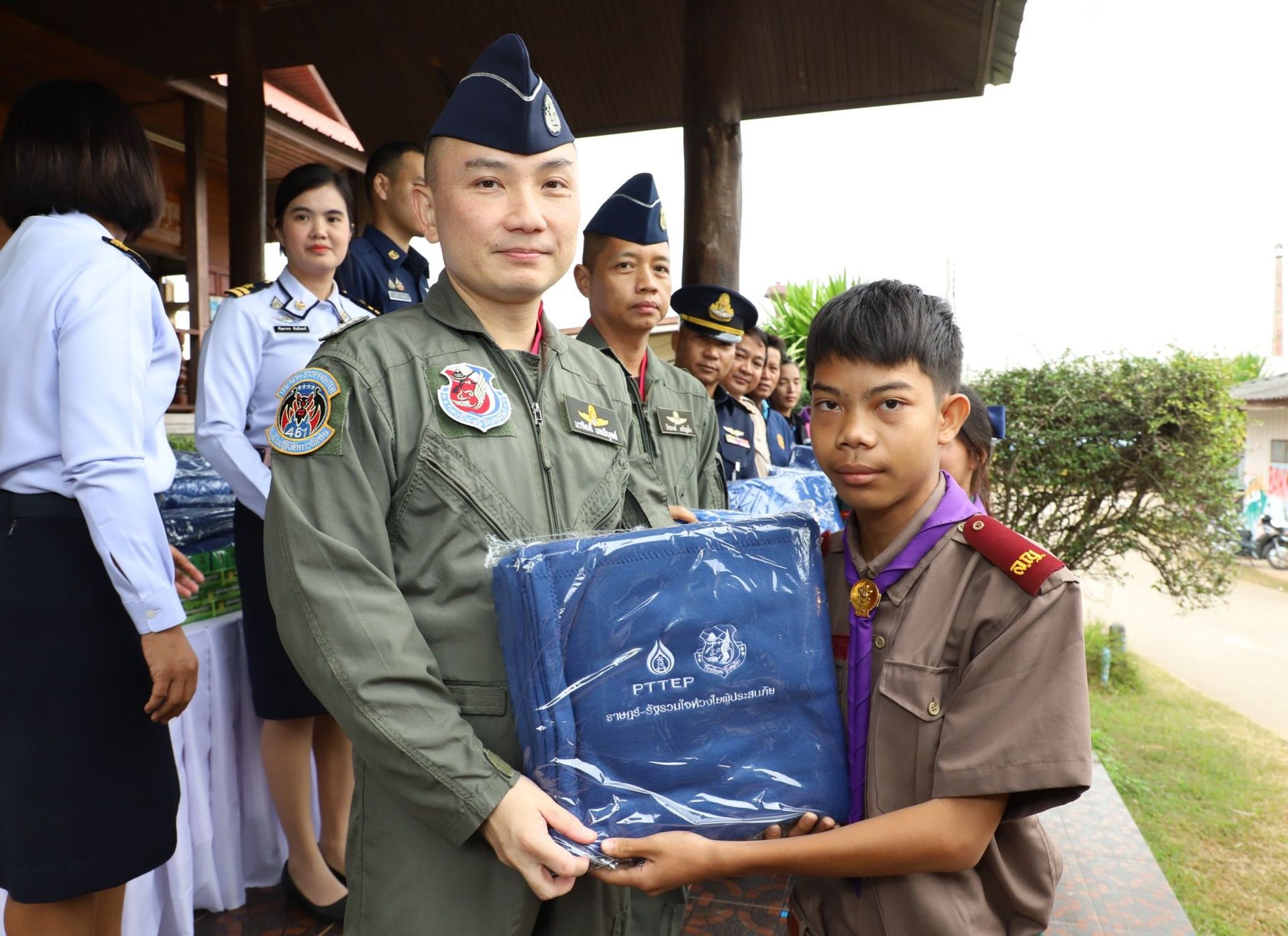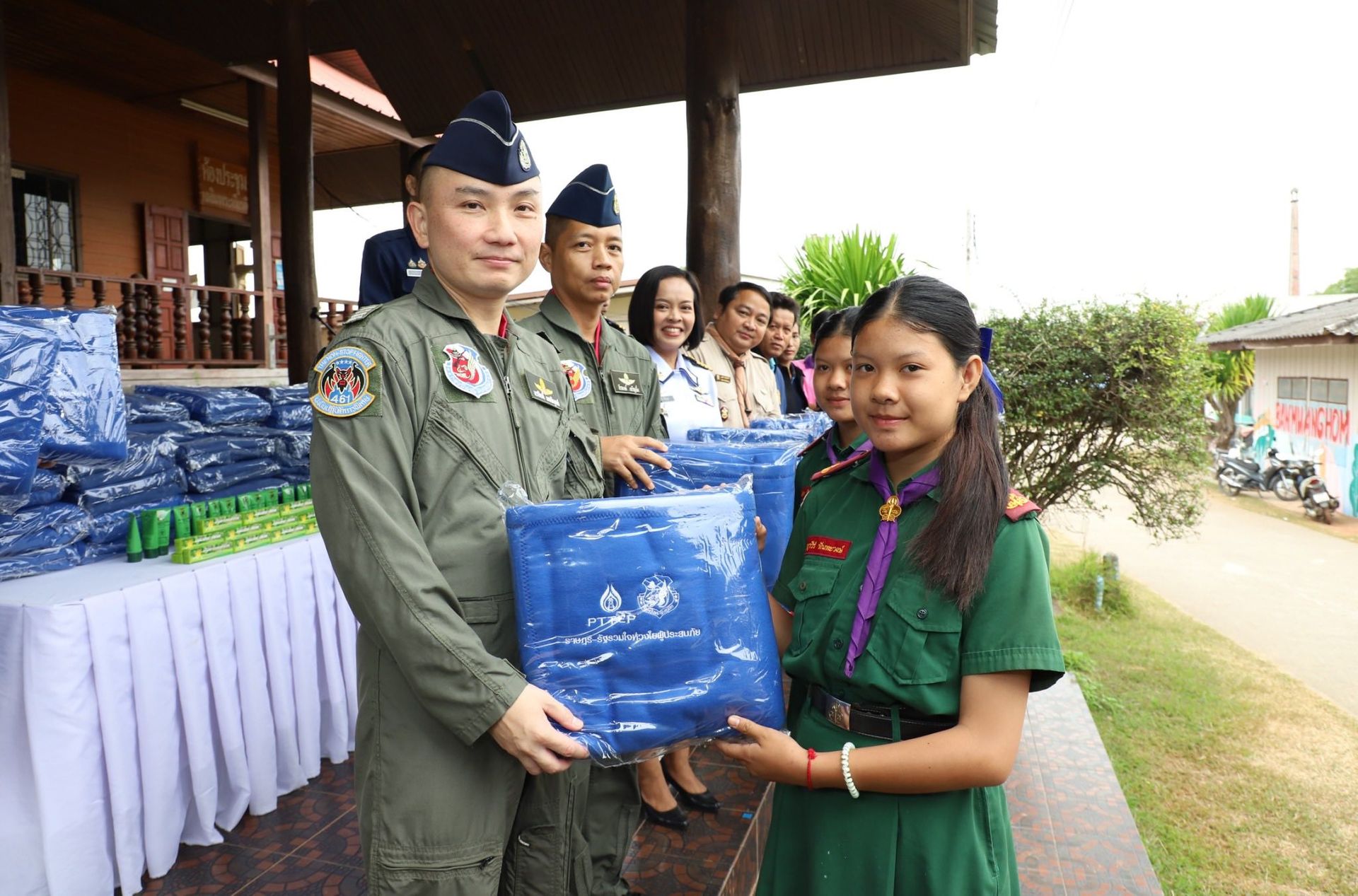 นาวาอากาศเอก นรกิตติ์ ผลพิบูลย์ รองผู้บังคับการกองบิน 46 พร้อมด้วย นาวาอากาศเอก ธีรพงษ์ เจริญยิ่ง เสนาธิการกองบิน 46 และเจ้าหน้าที่ศูนย์บรรเทาสาธารณภัย กองบิน 46 เดินทางไปมอบผ้าห่มกันหนาว ณ โรงเรียนในพื้นที่อำเภอวังทอง จังหวัดพิษณุโลก ที่ได้รับผลกระทบจากภัยหนาว สนับสนุนโดย บริษัท ปตท.สำรวจและผลิตปิโตรเลียม จำกัด (มหาชน) ร่วมกับ กองบิน 46