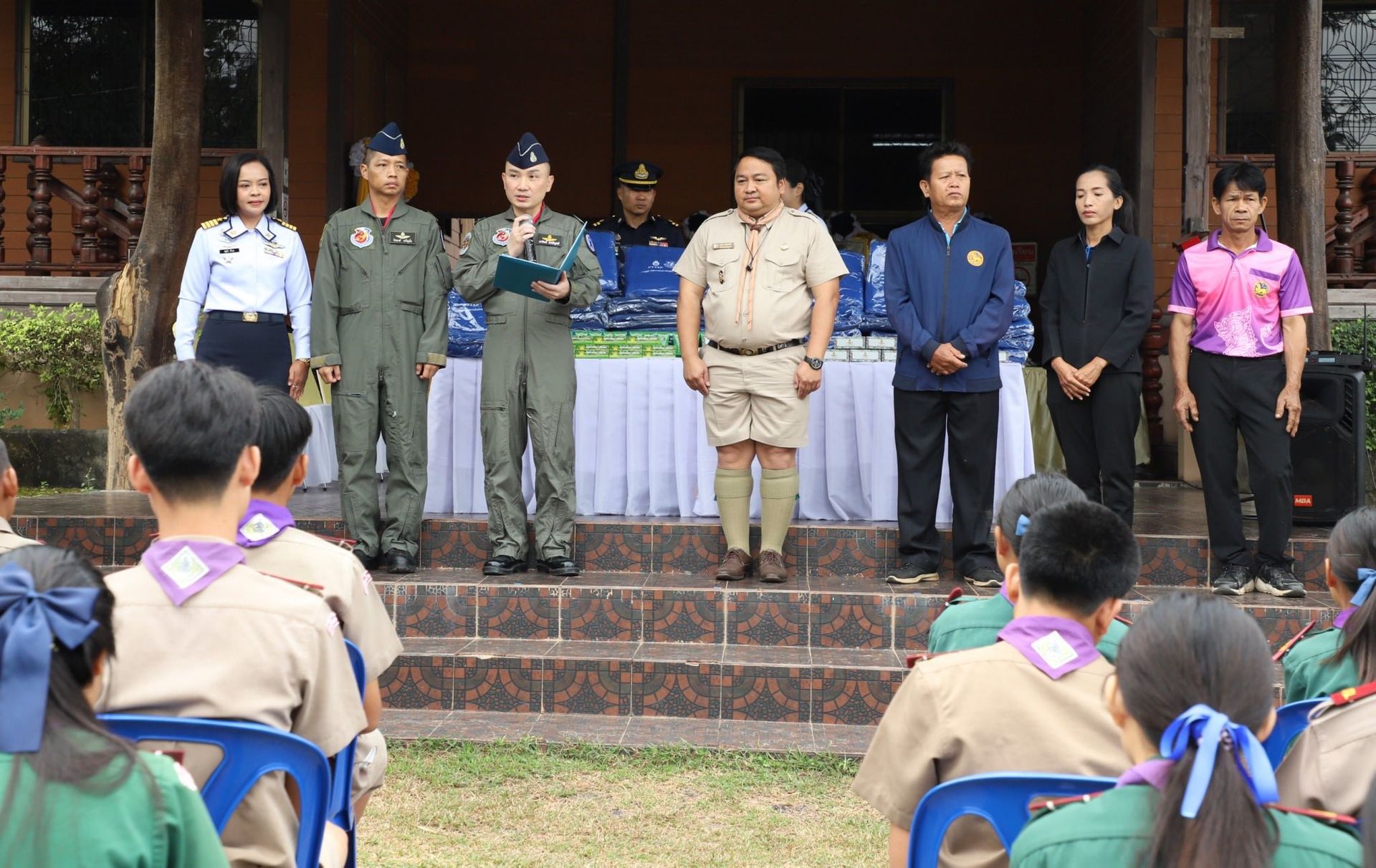 นำส่งมอบผ้าห่มกันหนาวและชุดยาสามัญให้แก่นักเรียนโรงเรียนบ้านม่วงหอม (สำนักงานสลากกินแบ่งสงเคราะห์ 43) ตำบลแก่งโสภา อำเภอวังทอง จังหวัดพิษณุโลก เพื่อช่วยเหลือและบรรเทาความเดือดร้อนจากภัยหนาวให้แก่น้อง ๆ นักเรียน โดยเฉพาะในช่วงนี้ซึ่งมีสภาพอากาศหนาวเย็นและอุณหภูมิลดลงต่อเนื่อง ณ โรงเรียนบ้านม่วงหอม (สำนักงานสลากกินแบ่งสงเคราะห์ 43) ตำบลแก่งโสภา อำเภอวังทอง จังหวัดพิษณุโลก เมื่อวันที่ 11 ธันวาคม พ.ศ.2568