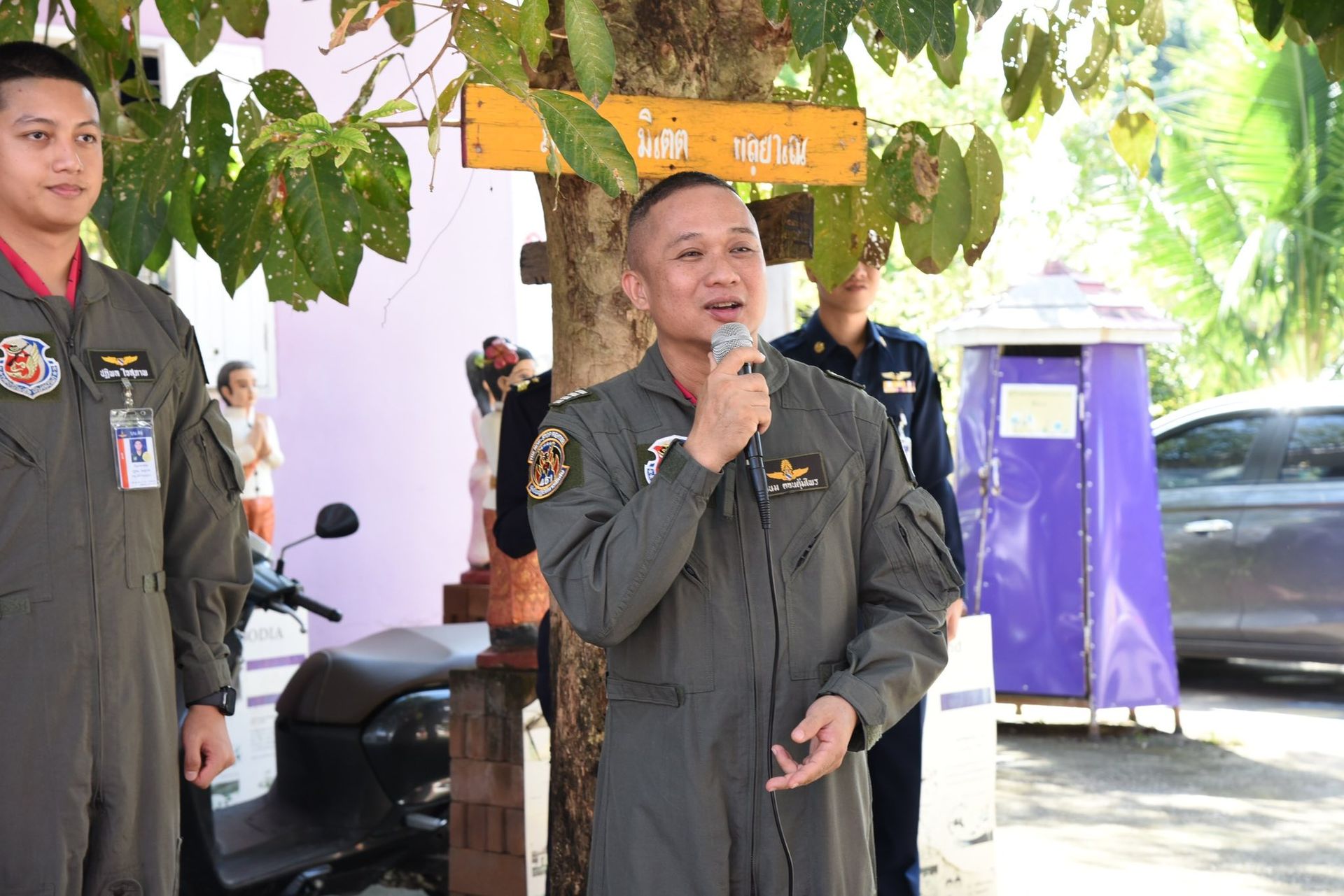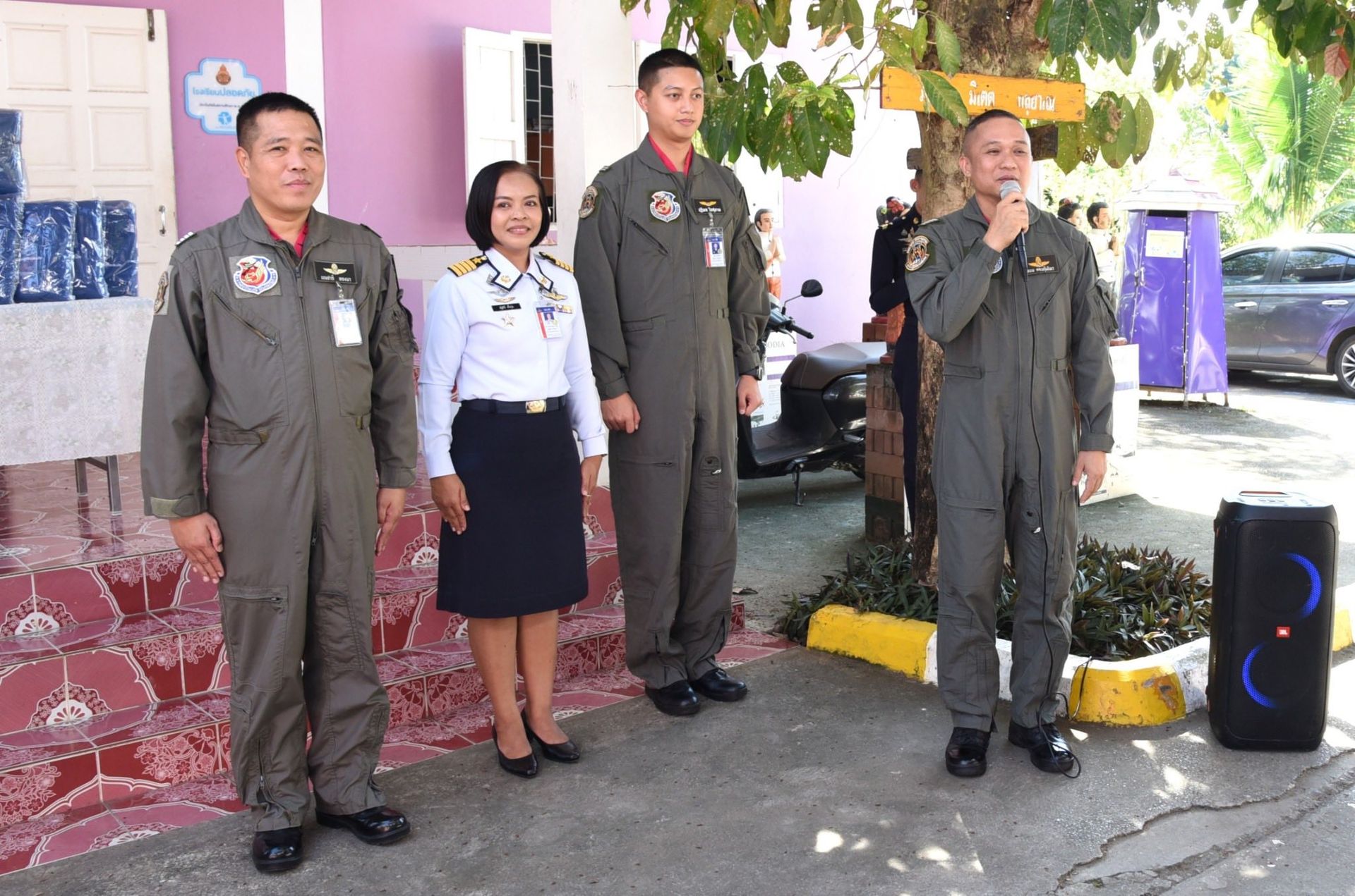 นาวาอากาศเอก พนม ดอนตุ้มไพร ผู้บังคับการกองบิน 46 พร้อมด้วย นาวาอากาศเอก เขมชาติ ทองมา รองผู้บังคับการกองบิน 46 และเจ้าหน้าที่ศูนย์บรรเทาสาธารณภัย กองบิน 46 เดินทางไปมอบผ้าห่ม